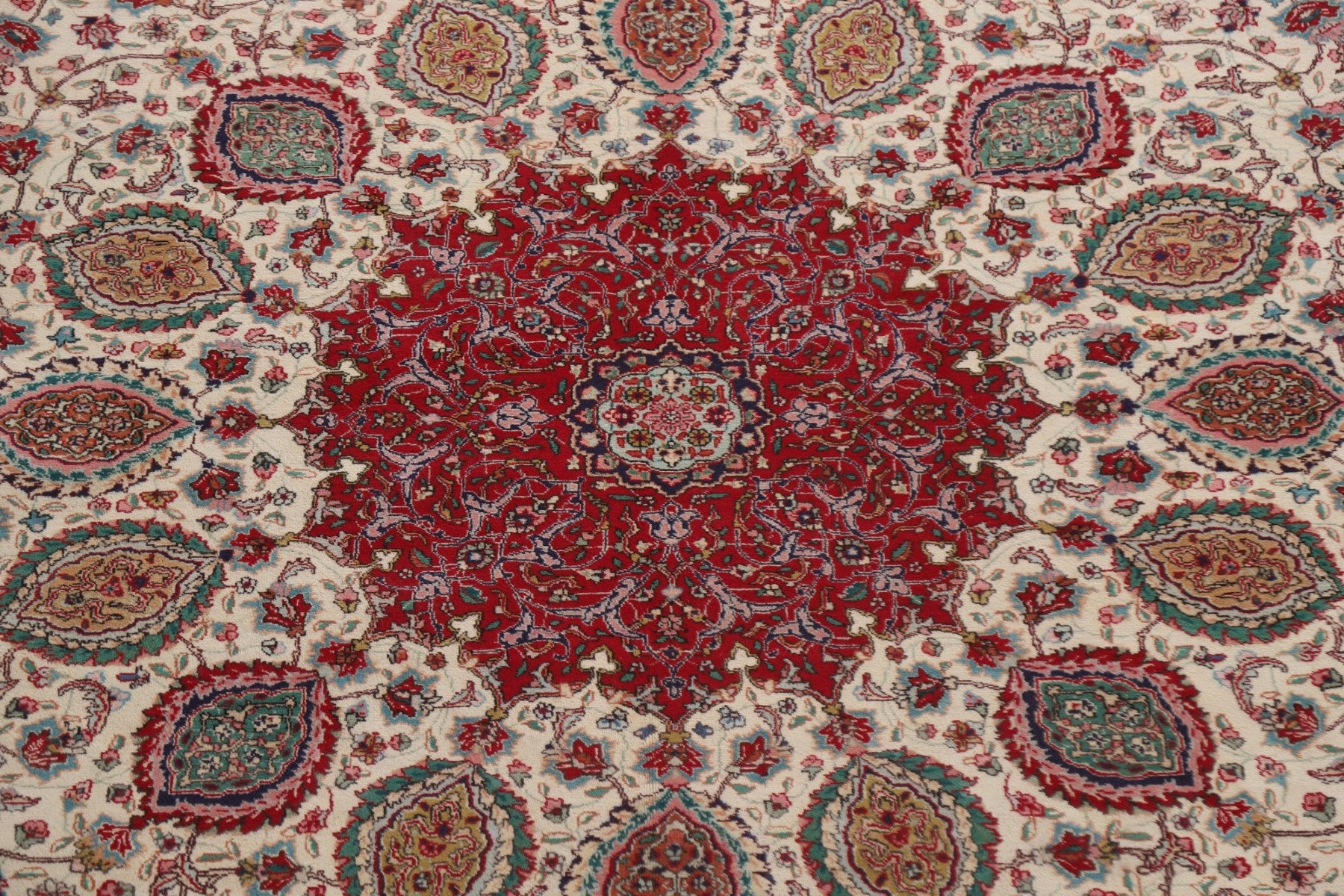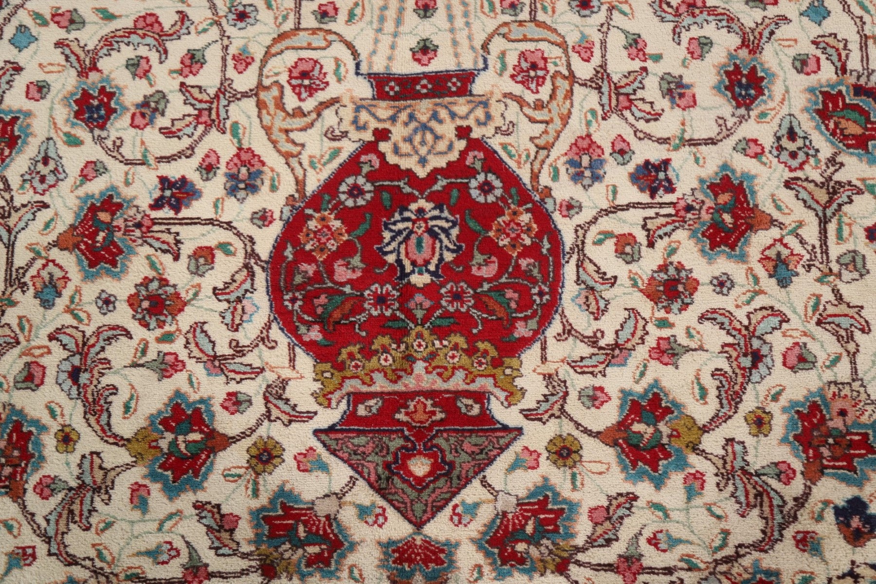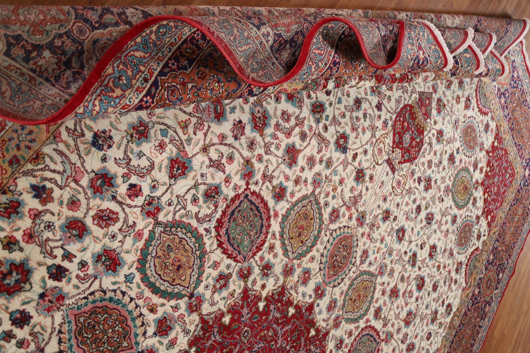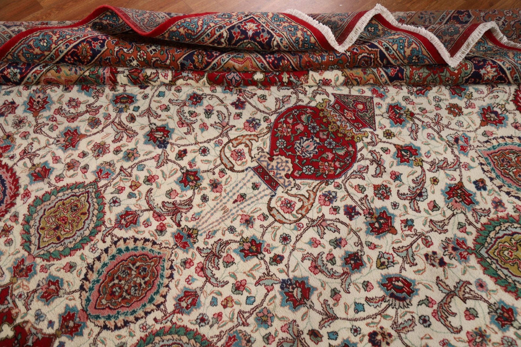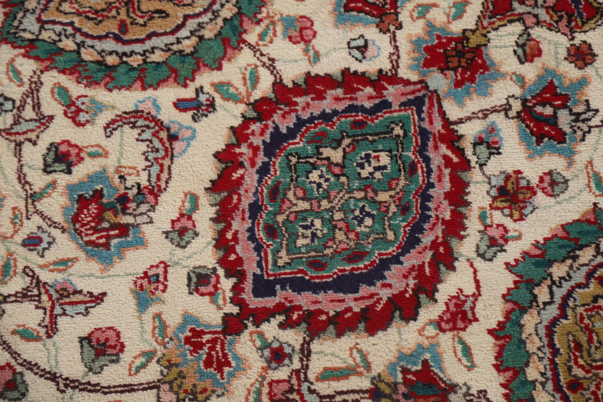 A Beautiful Genuine Persia ( Persia ) Tabriz rug is Hand Knotted by skillful weavers in Persia ( Persia ) with 100% Wool Material. This rug is in Very Good condition. dimensions are 17' 9'' X 11' 6'' in foot and 541 X 351 in centimeter. the primary color is Beige & Ivories.