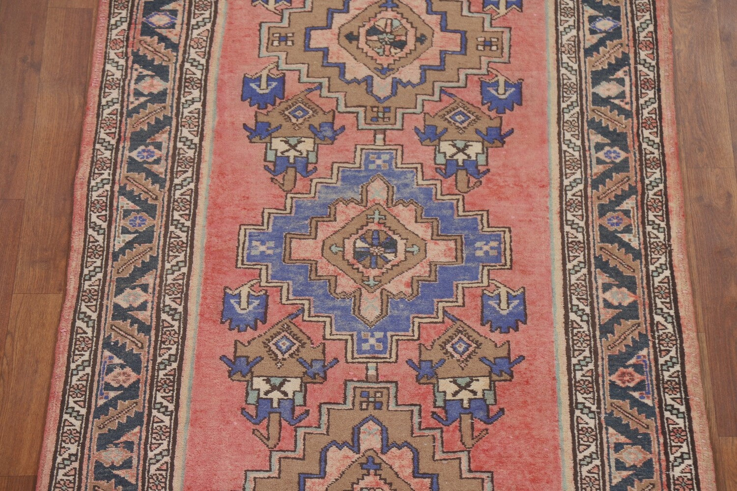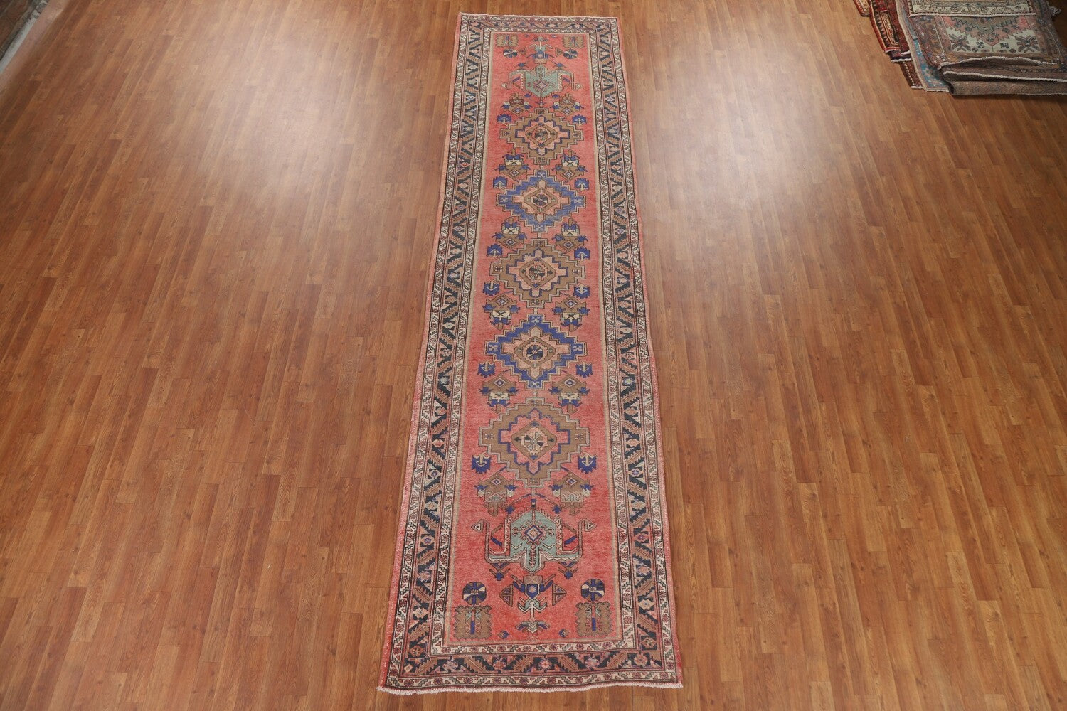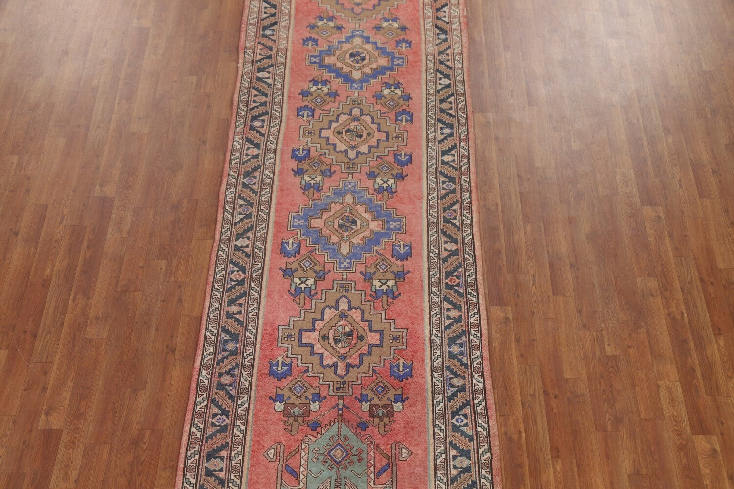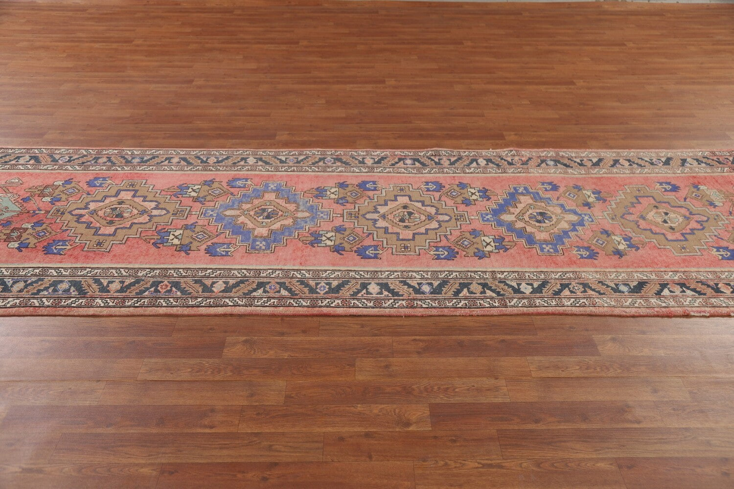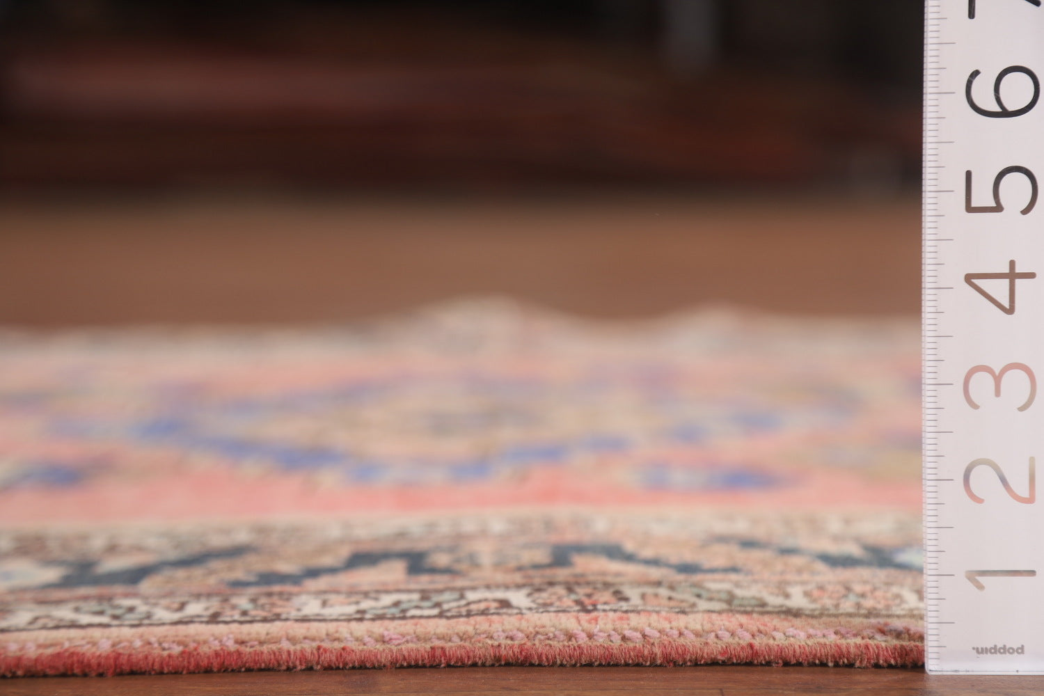 A Beautiful Genuine Persia ( Persia ) Tabriz rug is Hand Knotted by skillful weavers in Persia ( Persia ) with 100% Wool Material. This rug is in Very Good (Low Pile-Repair) condition. dimensions are 13' 5'' X 3' 6'' in foot and 409 X 107 in centimeter. the primary color is Pink.