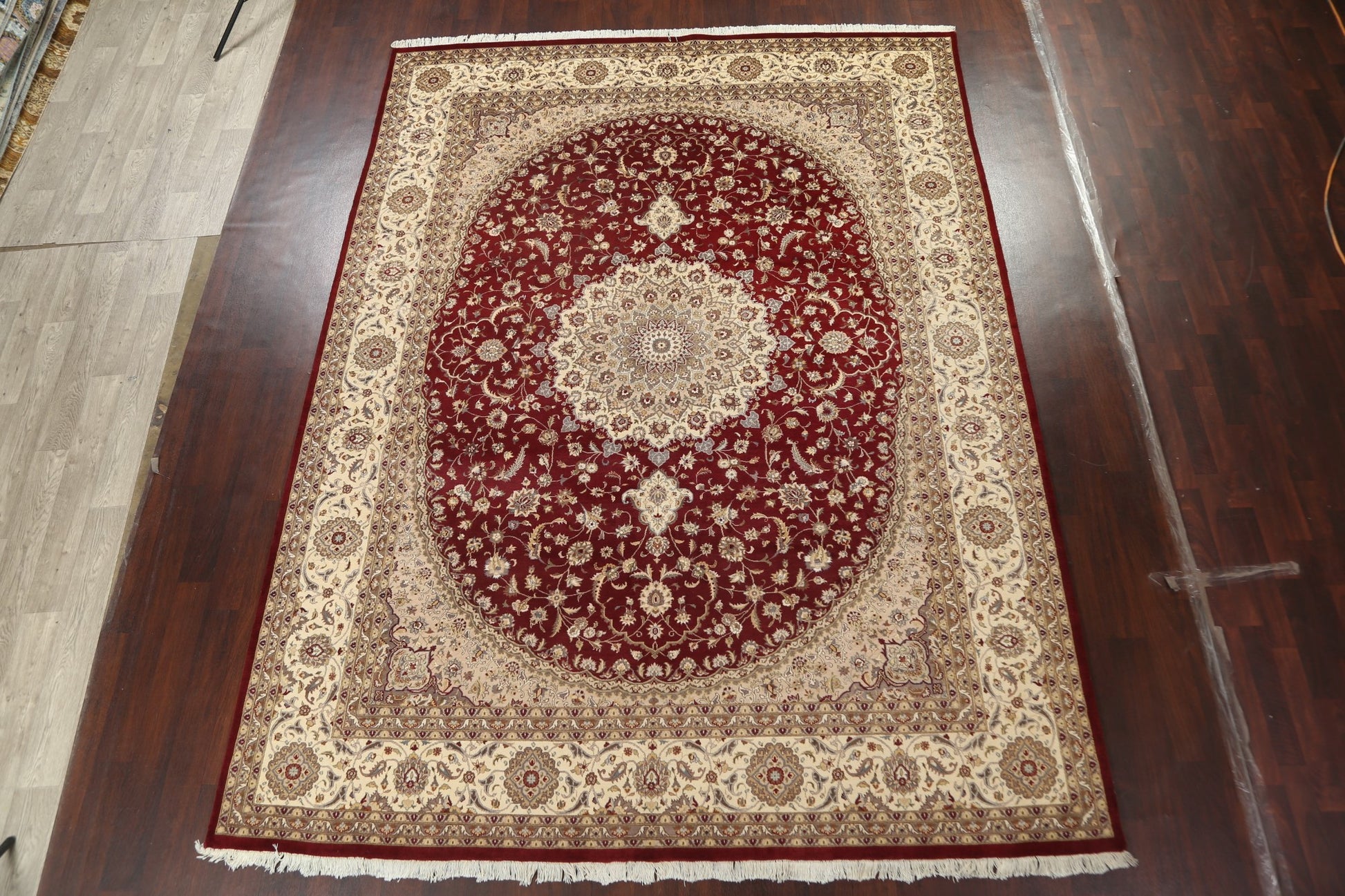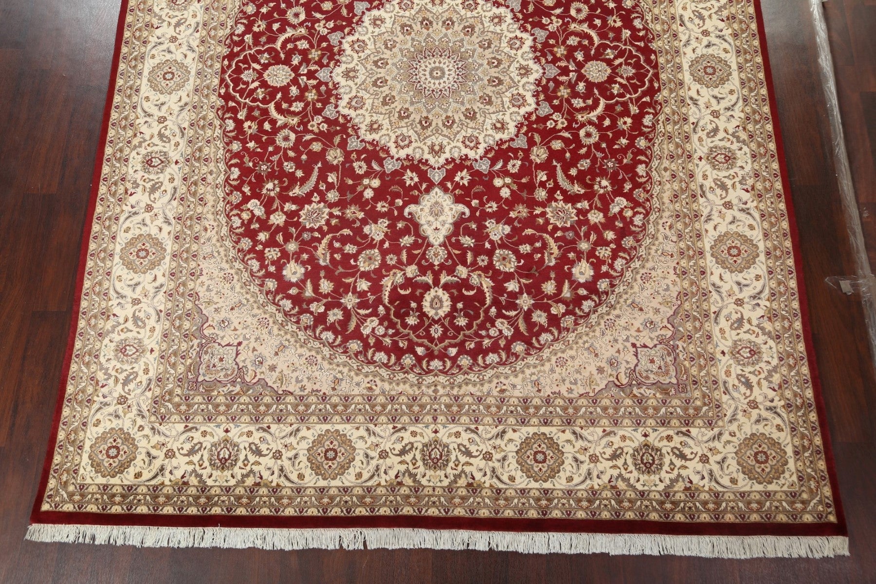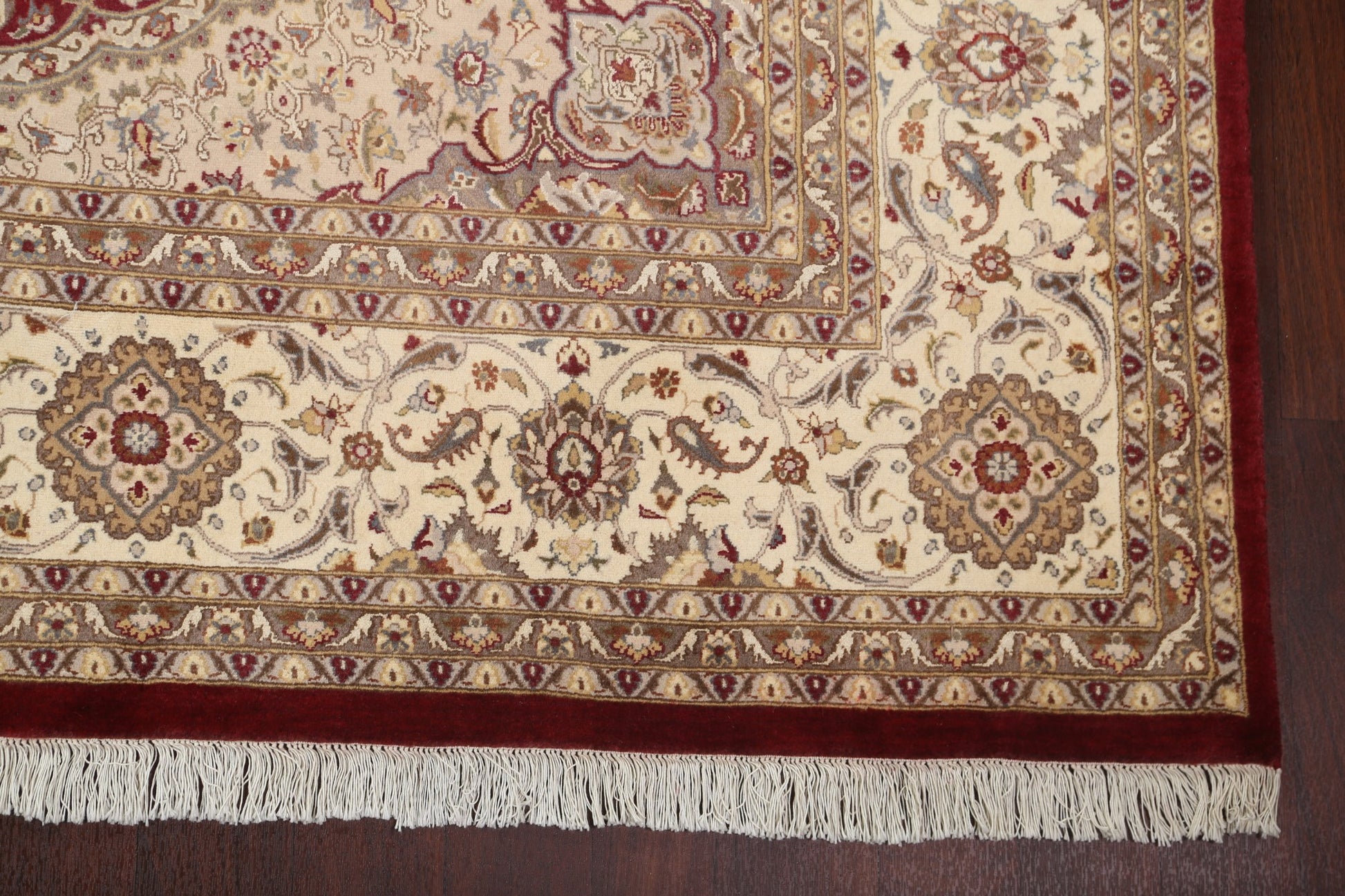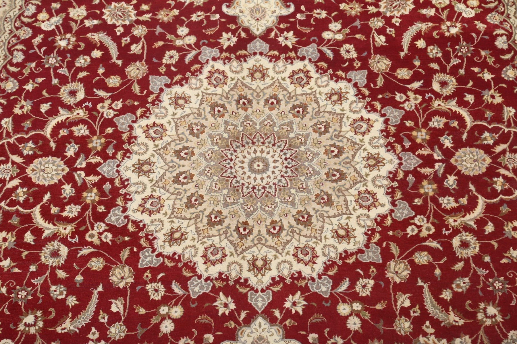 A Beautiful Genuine Pakistan Tabriz rug is Hand Knotted by skillful weavers in Pakistan with 100% Wool Material. This rug is in New, First Quality condition. dimensions are 12' 1'' X 8' 10'' in foot and 368 X 269 in centimeter. the primary color is Red.