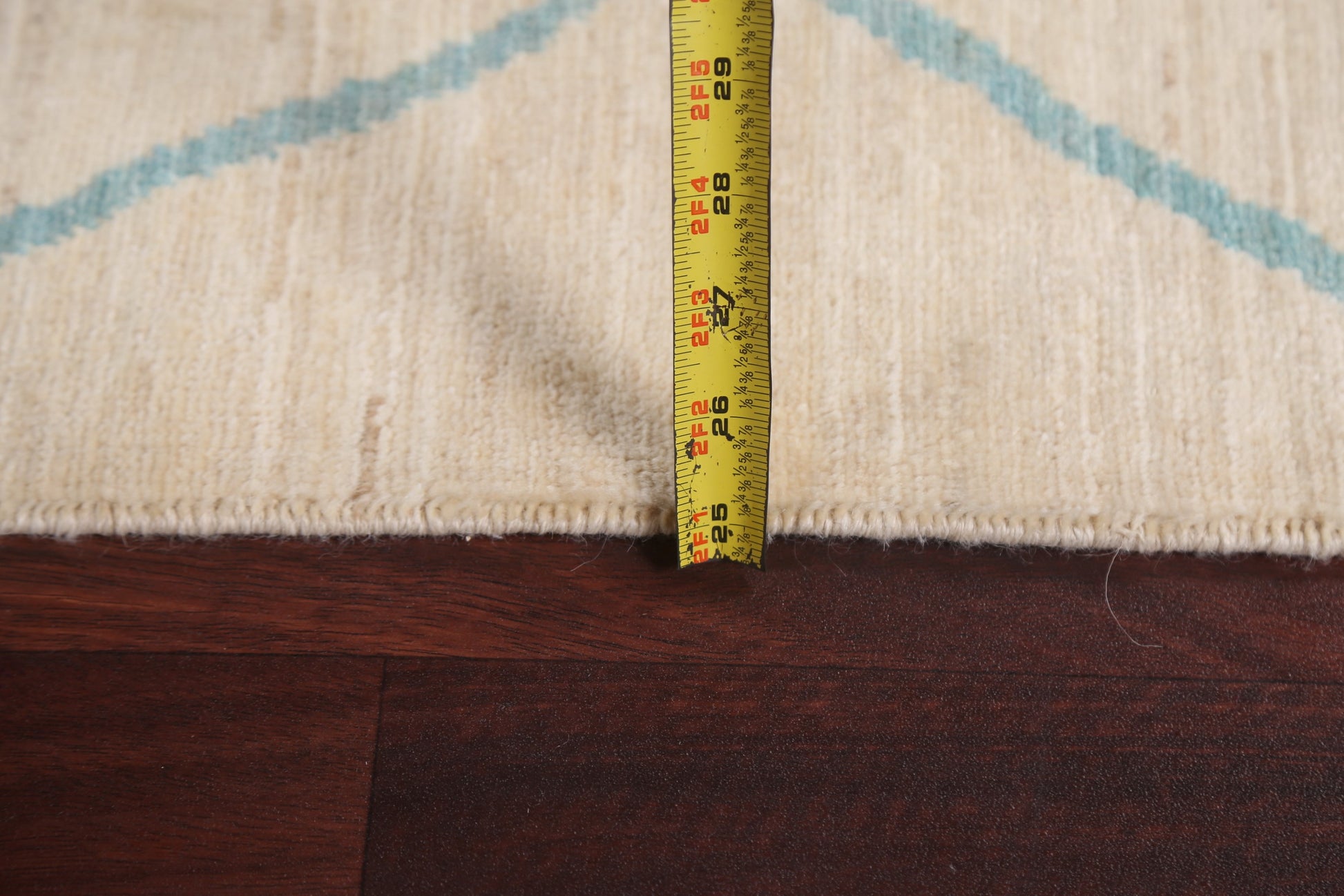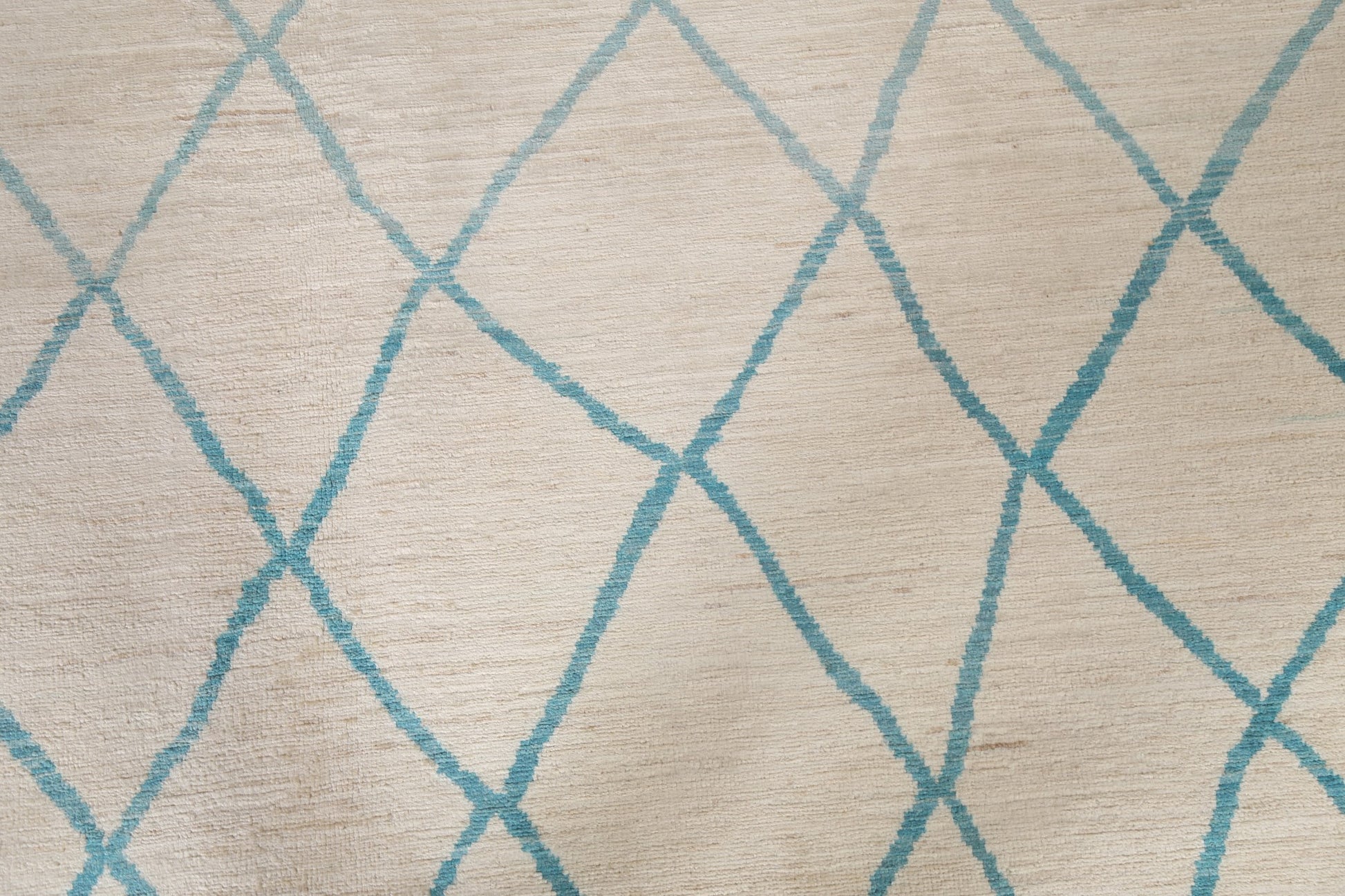 A Beautiful Genuine Pakistan Moroccan rug is Hand Knotted by skillful weavers in Pakistan with 100% Wool Material. This rug is in New, First Quality condition. dimensions are 7' 8'' X 5' 8'' in foot and 234 X 173 in centimeter. the primary color is Beige & Ivories.