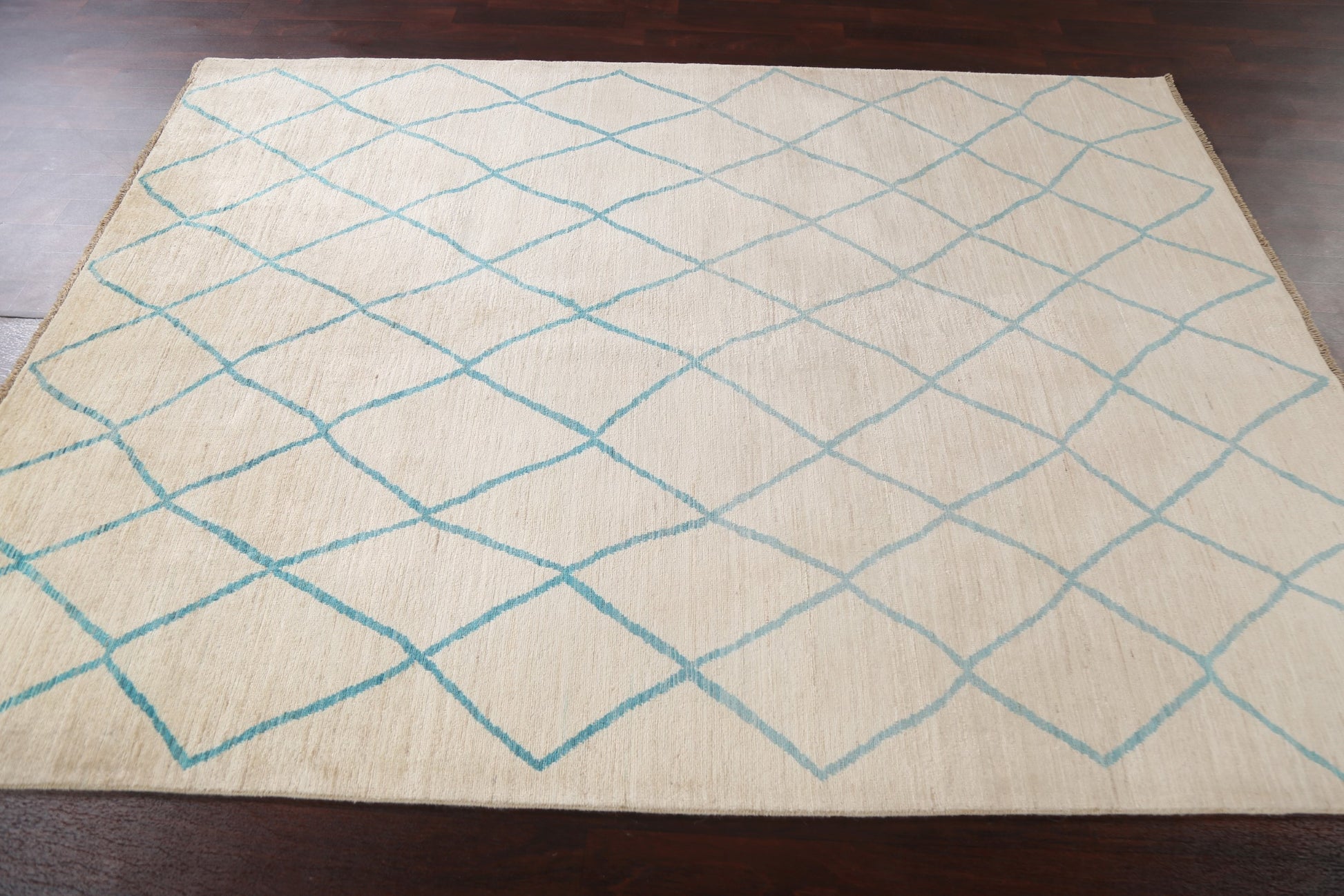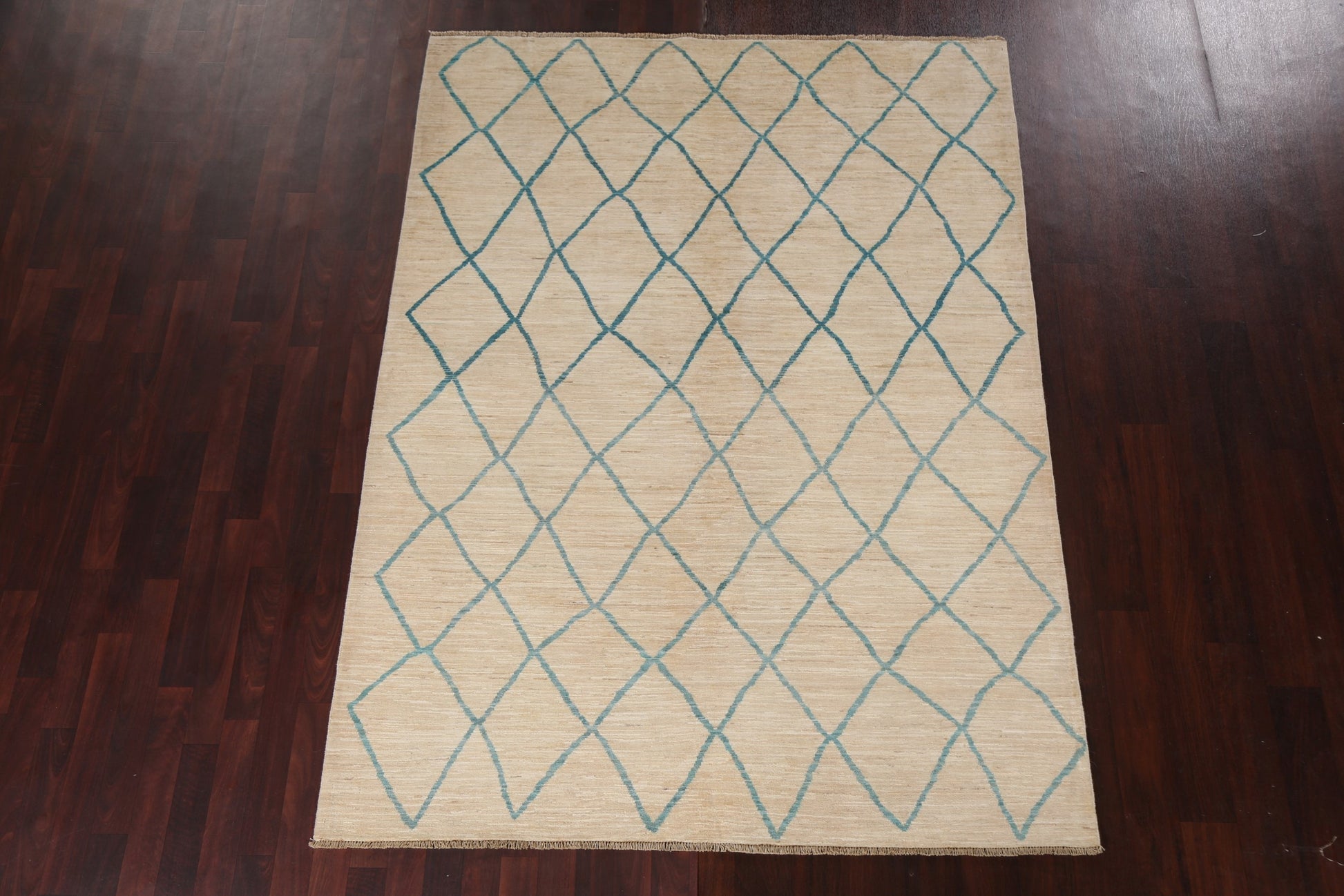 Vegetable Dye Trellis Moroccan Wool Area Rug 6x8