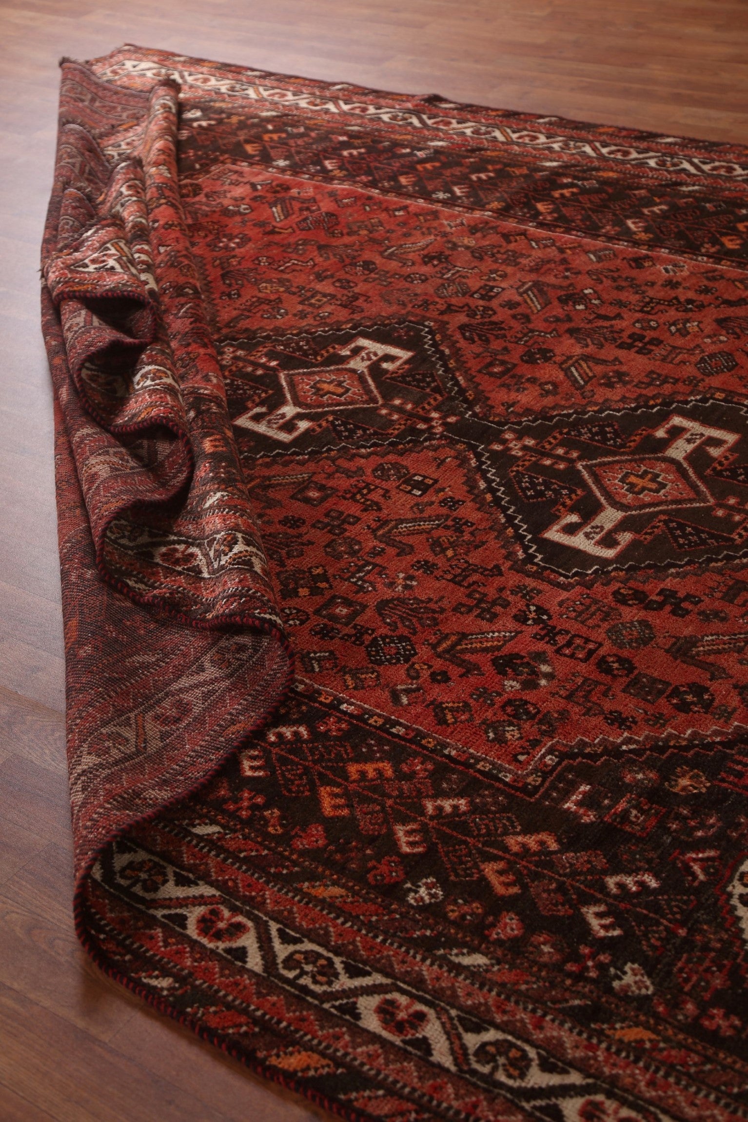 A Beautiful Genuine Persia ( Persia ) Qashqai rug is Hand Knotted by skillful weavers in Persia ( Persia ) with 100% Wool Material. This rug is in Very Good condition. dimensions are 9' 11'' X 7' 3'' in foot and 302 X 221 in centimeter. the primary color is Red.