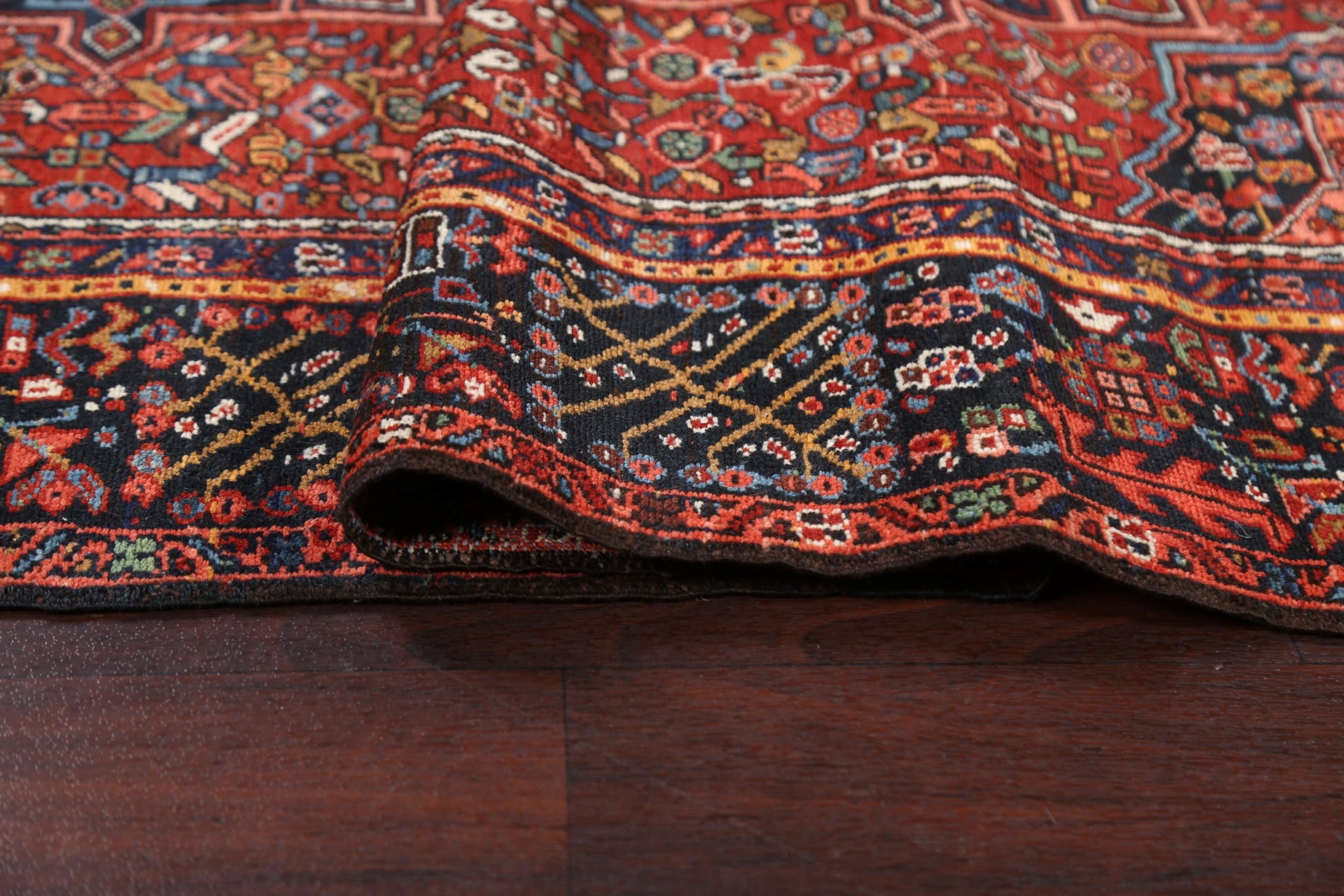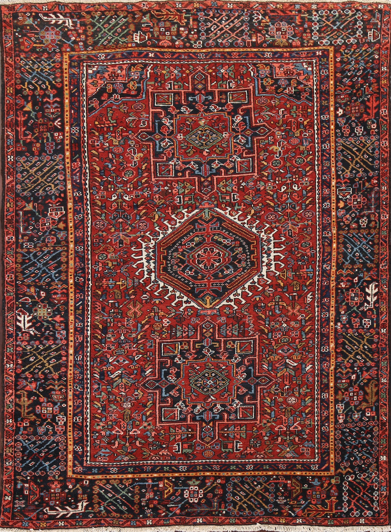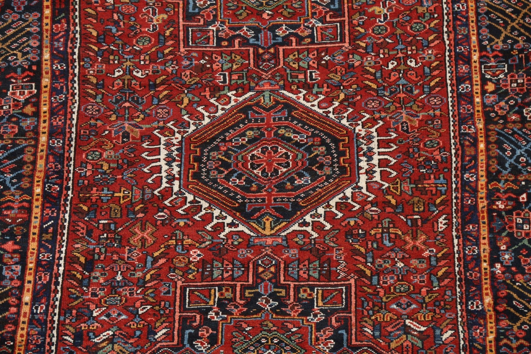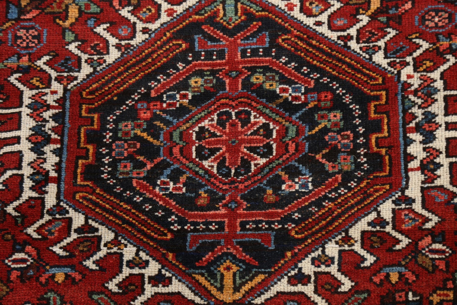 A Beautiful Genuine Persia ( Persia ) Gharajeh rug is Hand Knotted by skillful weavers in Persia ( Persia ) with 100% Wool Material. This rug is in Very Good condition. dimensions are 6' 4'' X 4' 9'' in foot and 193 X 145 in centimeter. the primary color is Red.