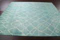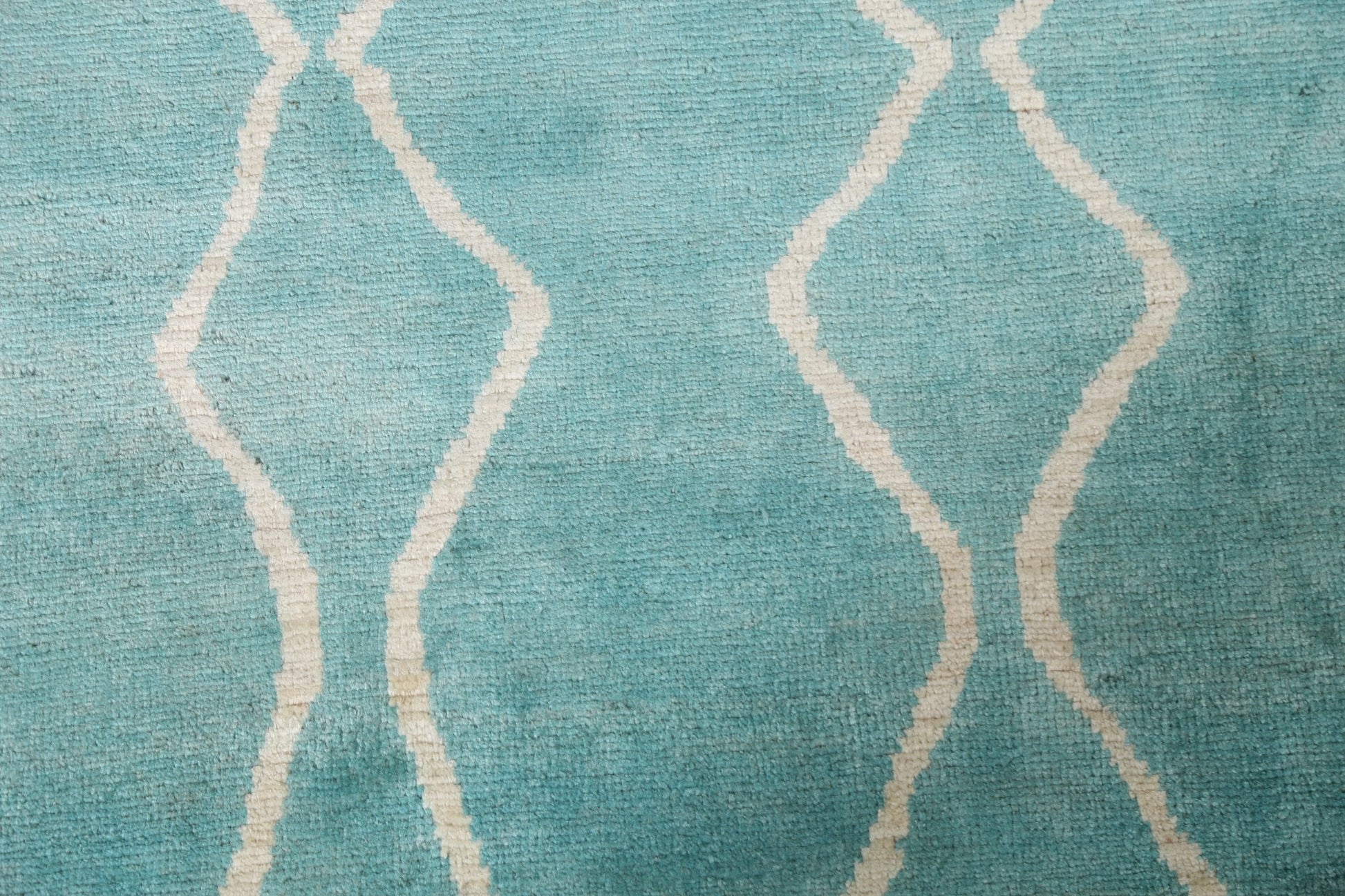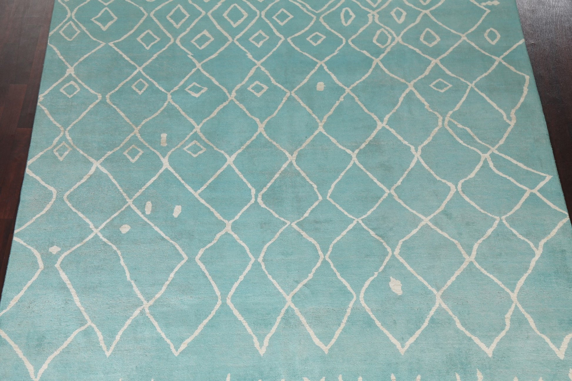 A Beautiful Genuine Pakistan Moroccan rug is Hand Knotted by skillful weavers in Pakistan with 100% Wool Material. This rug is in New, First Quality condition. dimensions are 9' 8'' X 7' 11'' in foot and 295 X 241 in centimeter. the primary color is Green.