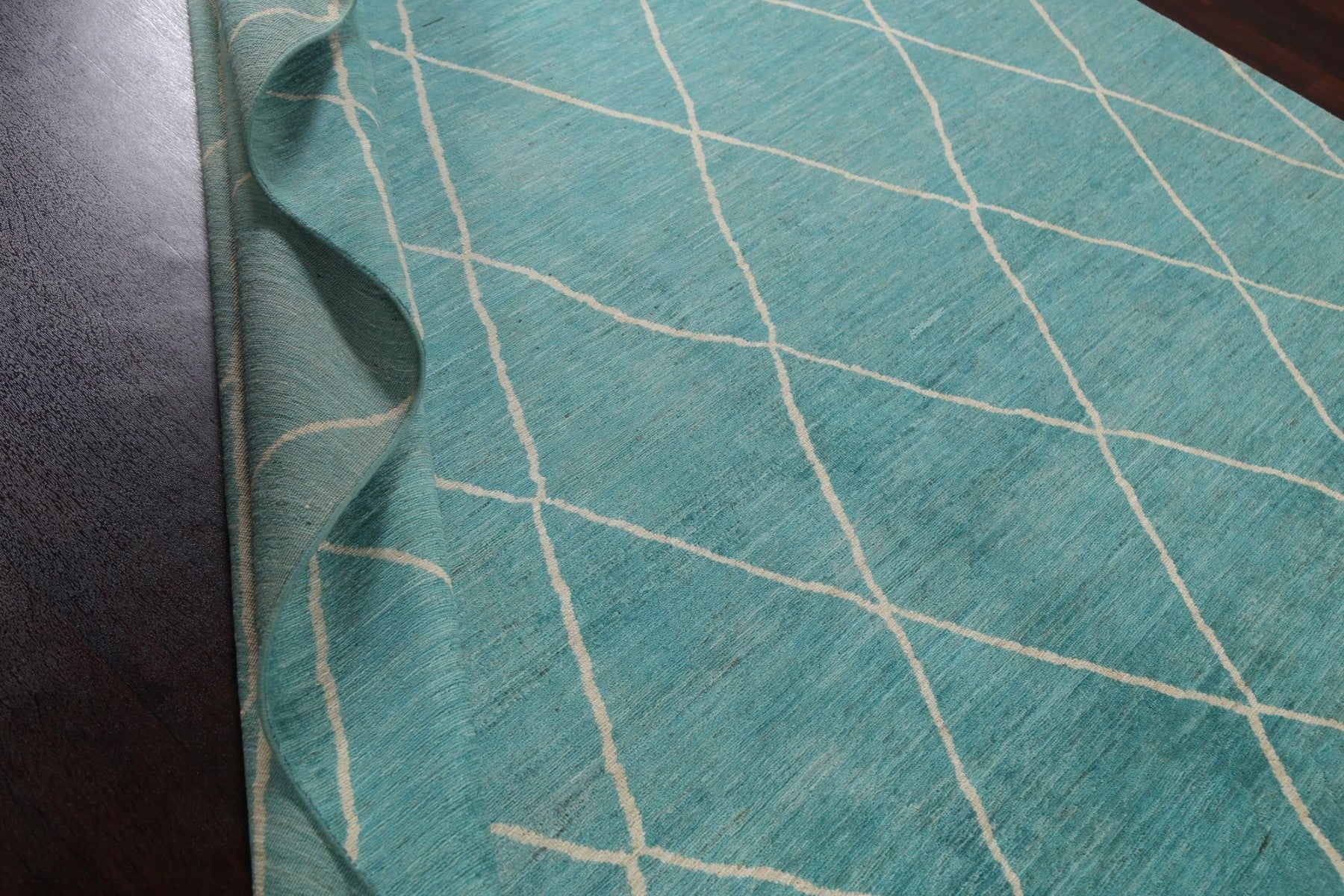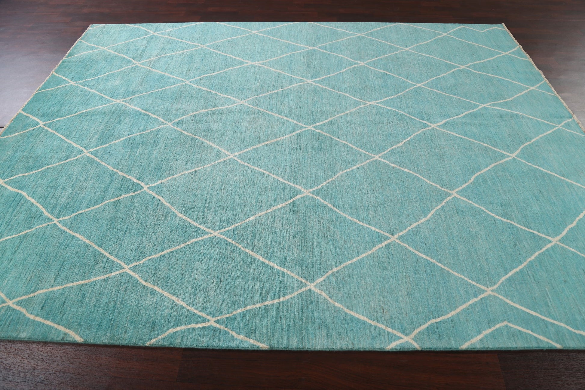 Vegetable Dye Turquoise Moroccan Trellis Wool Rug 8x10
