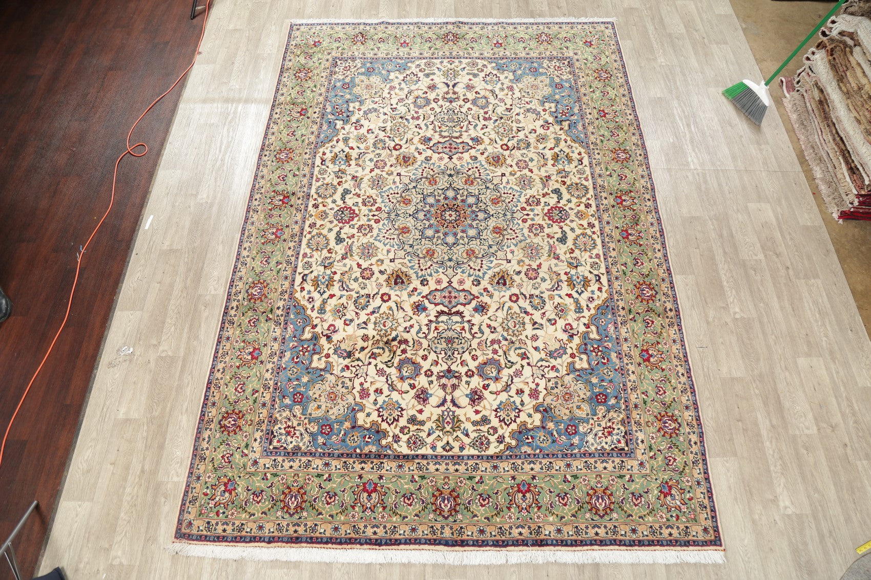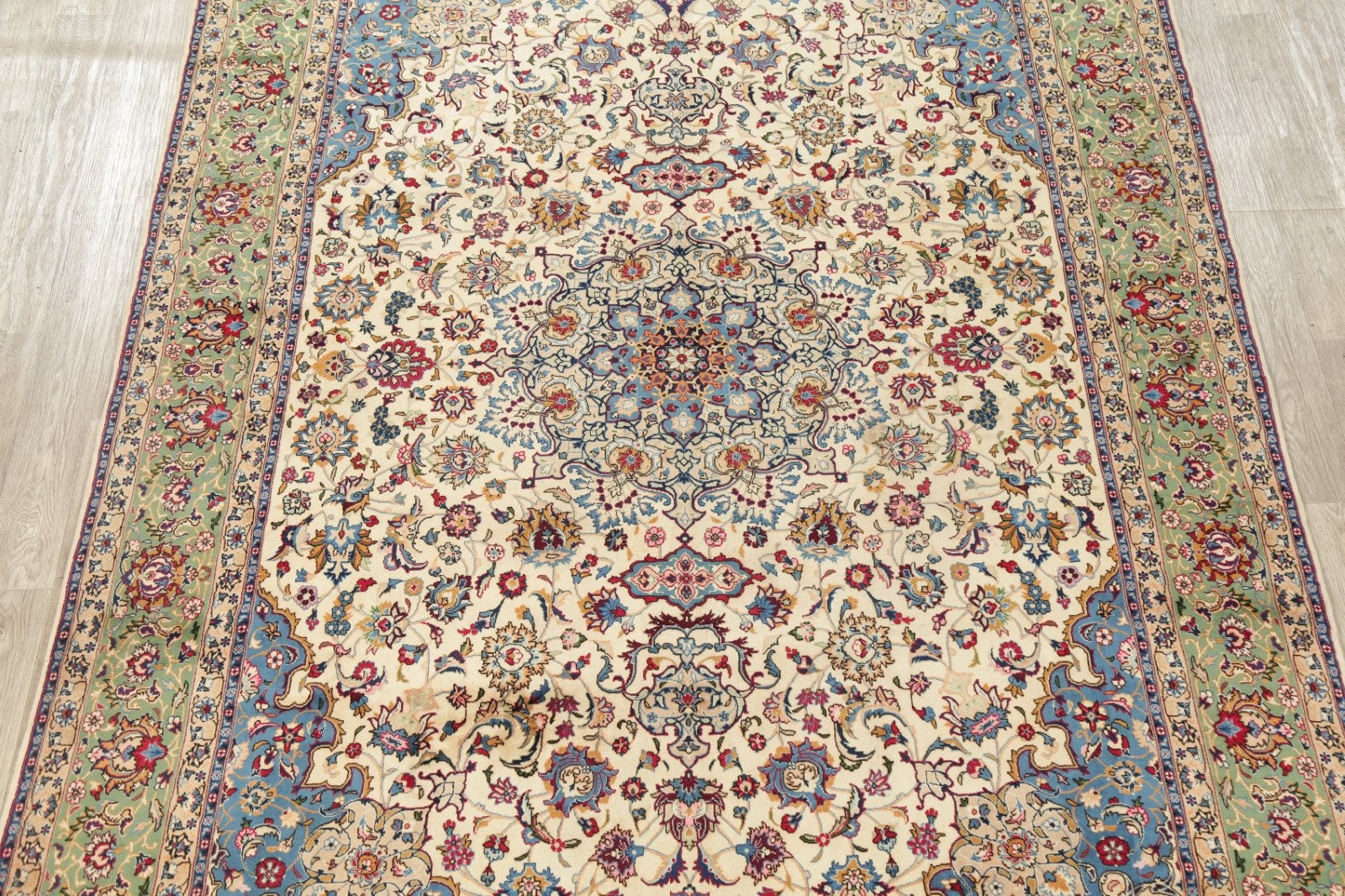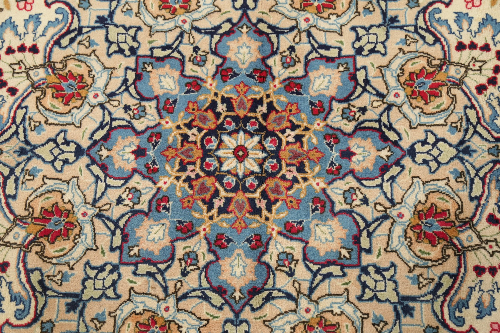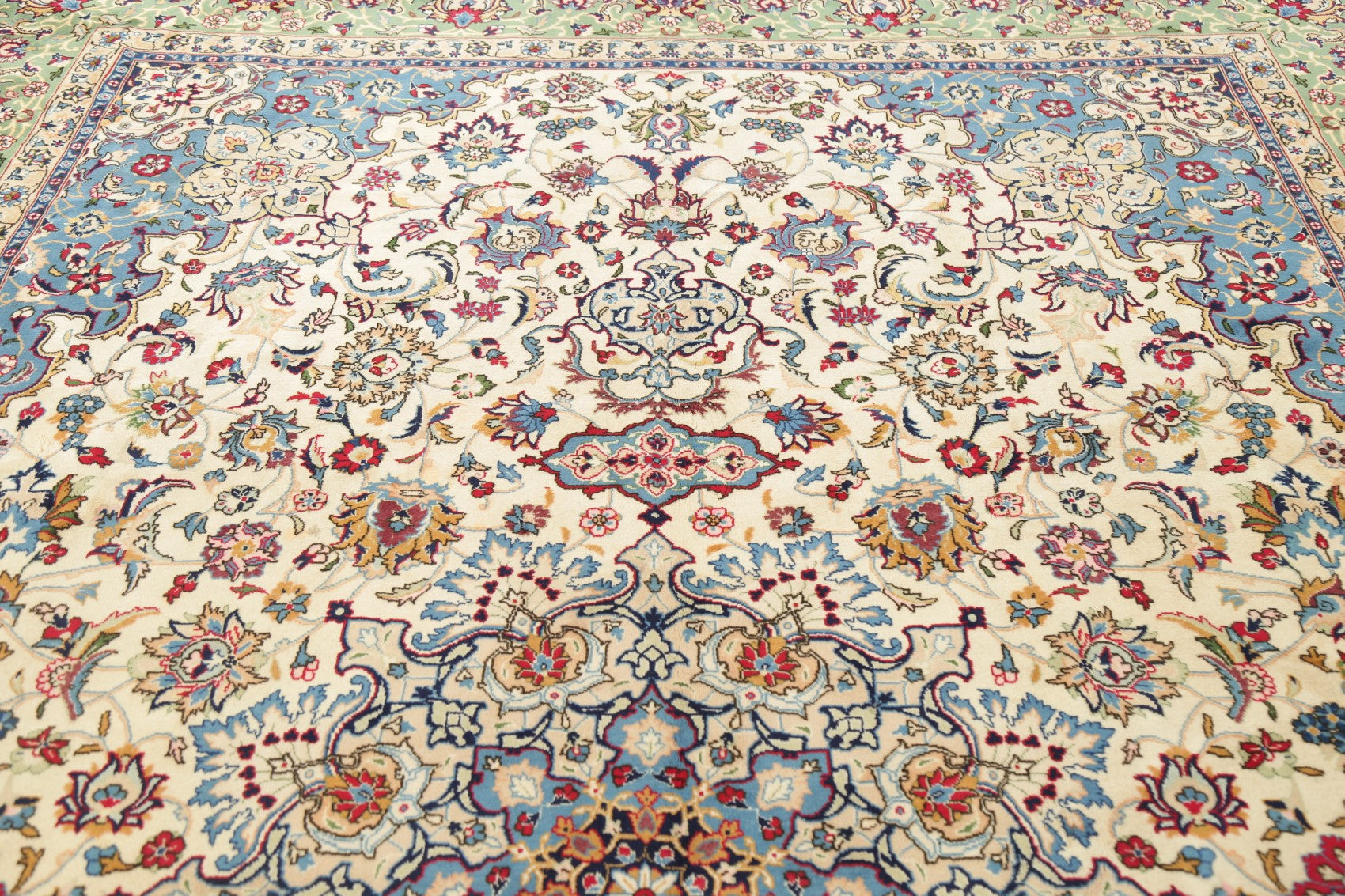 A Beautiful Genuine Persia ( Persia ) Kashan rug is Hand Knotted by skillful weavers in Persia ( Persia ) with 100% Kork Wool Material. This rug is in Excellent condition. dimensions are 11' 9'' X 8' 0'' in foot and 358 X 244 in centimeter. the primary color is Beige & Ivories.