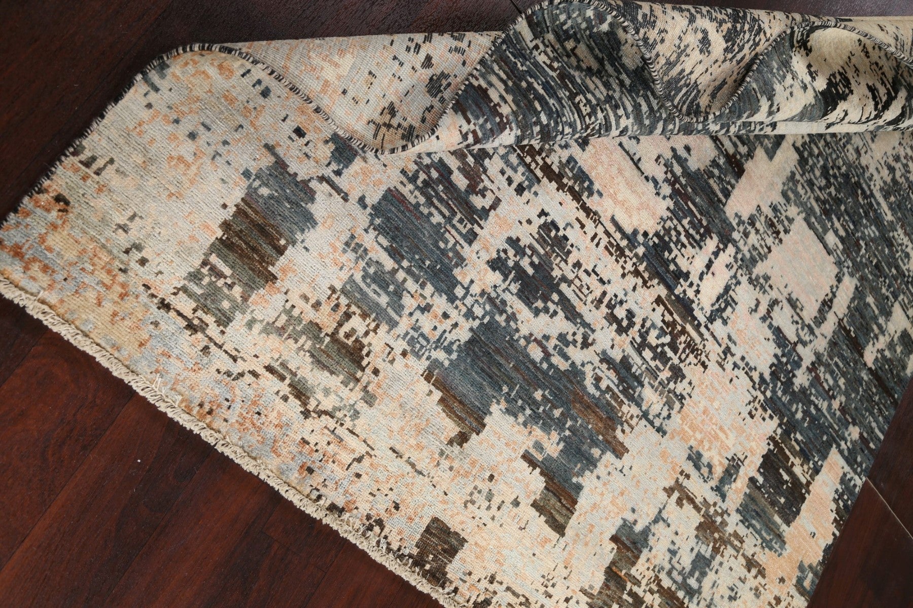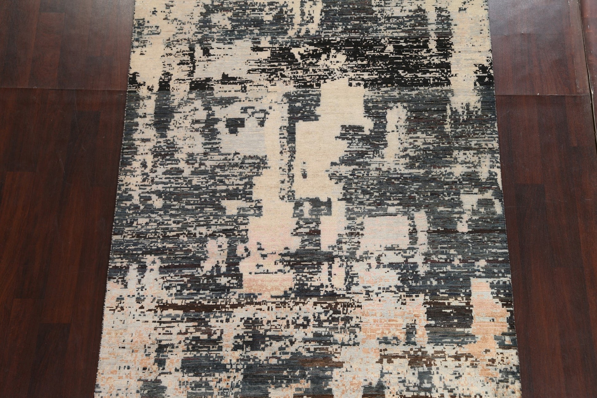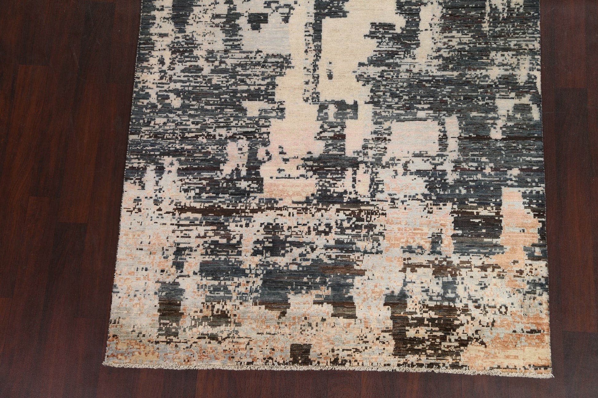 A Beautiful Genuine Pakistan Abstract rug is Hand Knotted by skillful weavers in Pakistan with 100% Wool Material. This rug is in New, First Quality condition. dimensions are 7' 10'' X 5' 7'' in foot and  239 X 170 in centimeter. the primary color is Multi-Colored.
