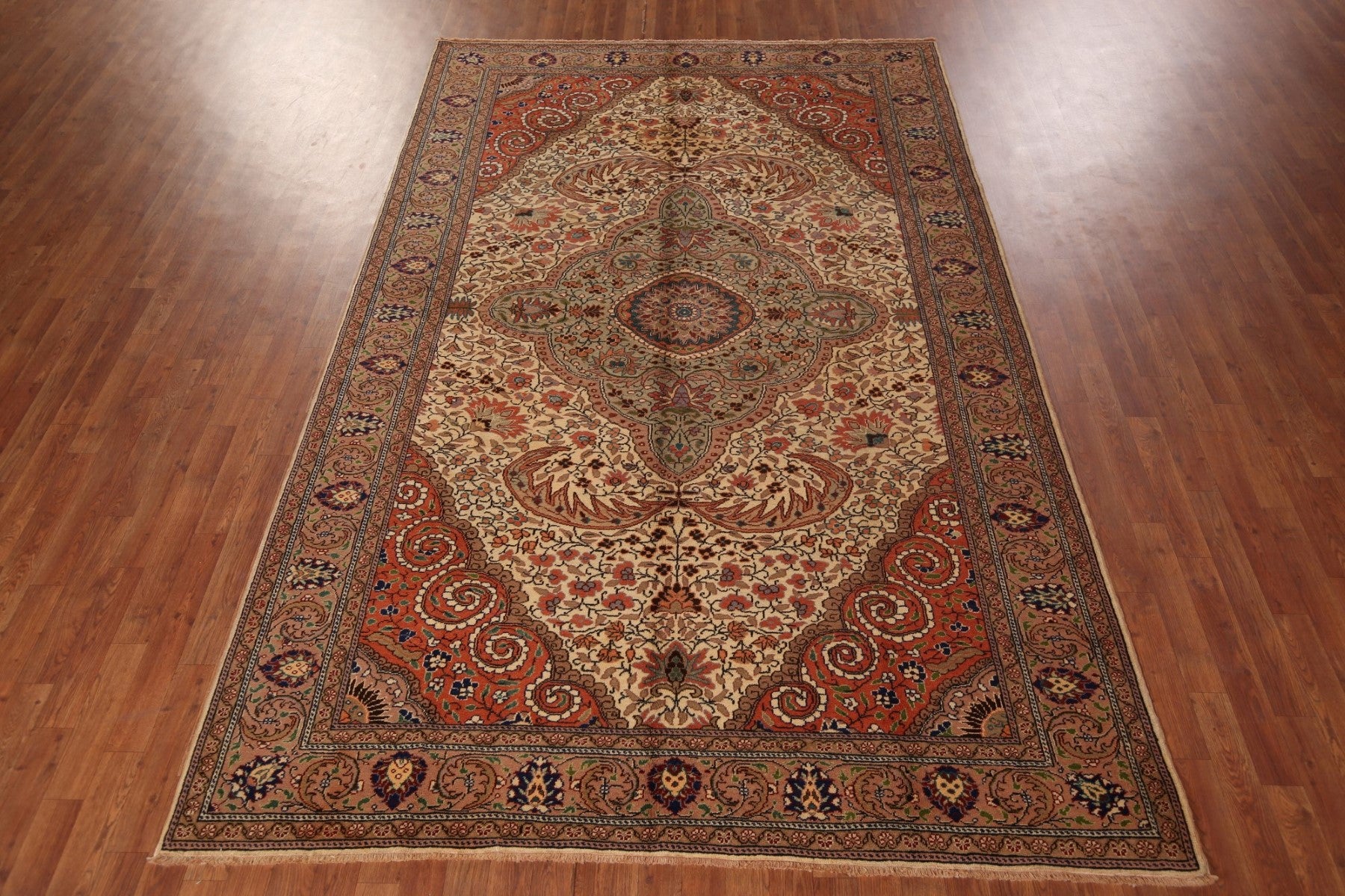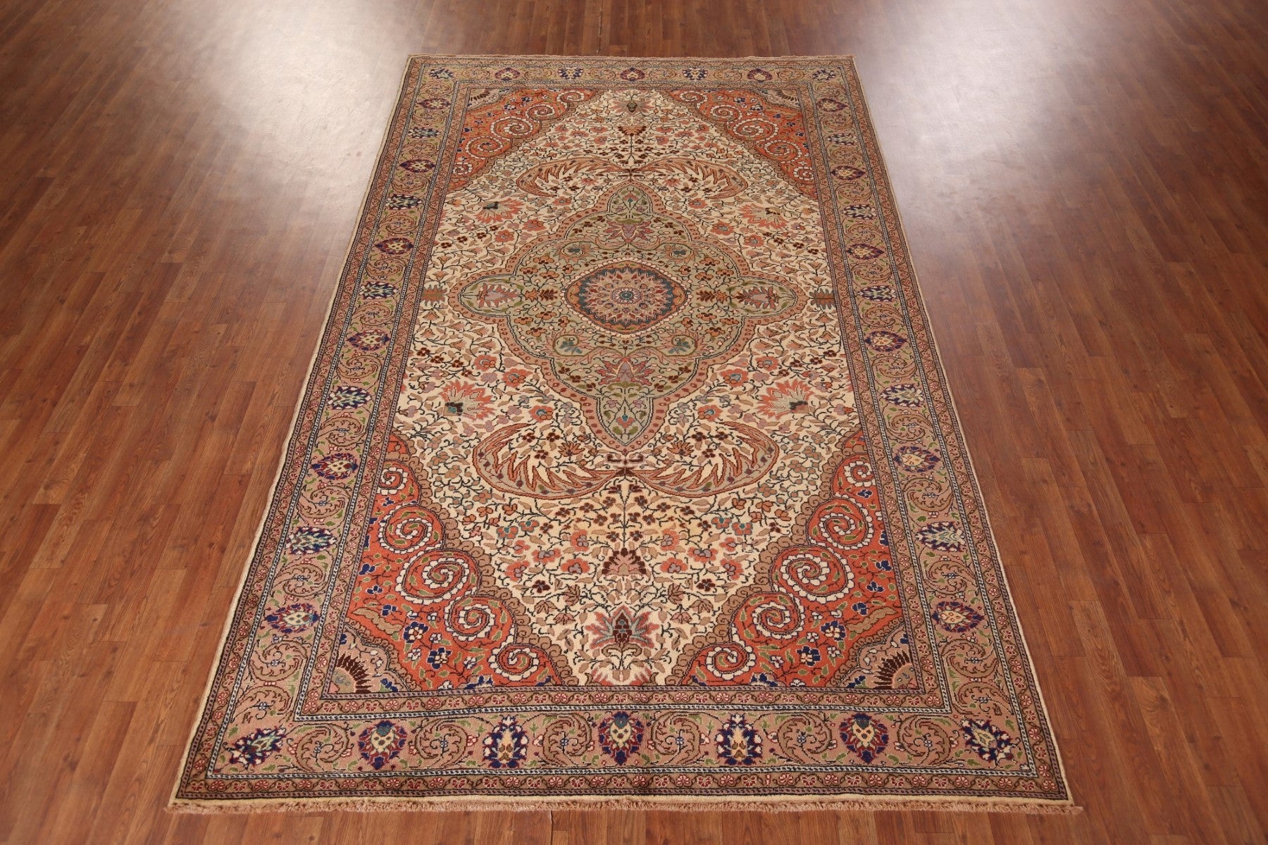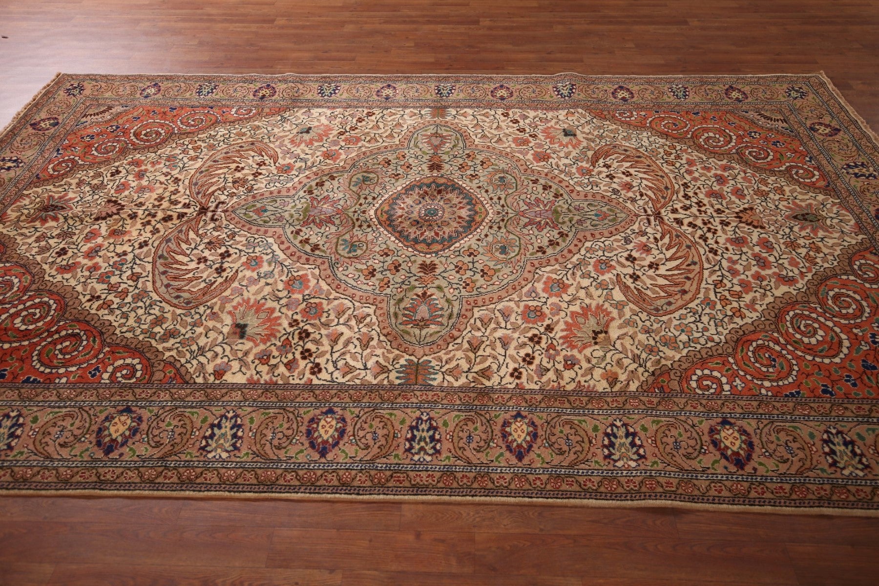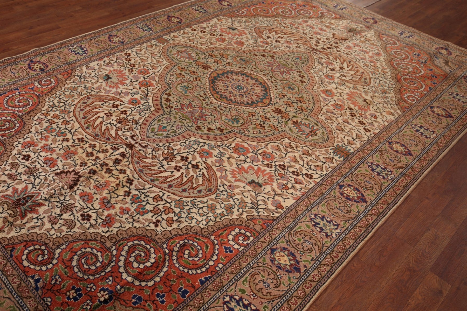 A Beautiful Genuine Turkey Anatolian rug is Hand Knotted by skillful weavers in Turkey with 100% Wool Material. This rug is in Excellent condition. dimensions are 10' 5'' X 6' 8'' in foot and 318 X 203 in centimeter. the primary color is Beige & Ivories.