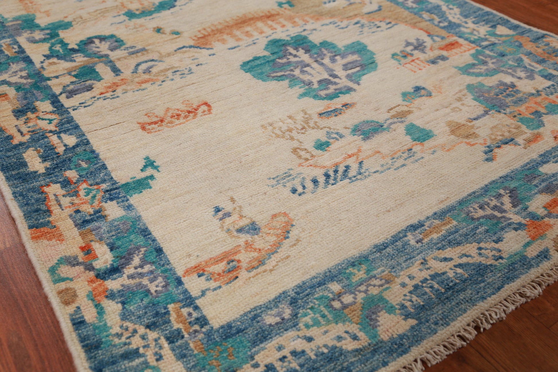 Vegetable Dye Wool Art Deco Turkish Rug 3x5