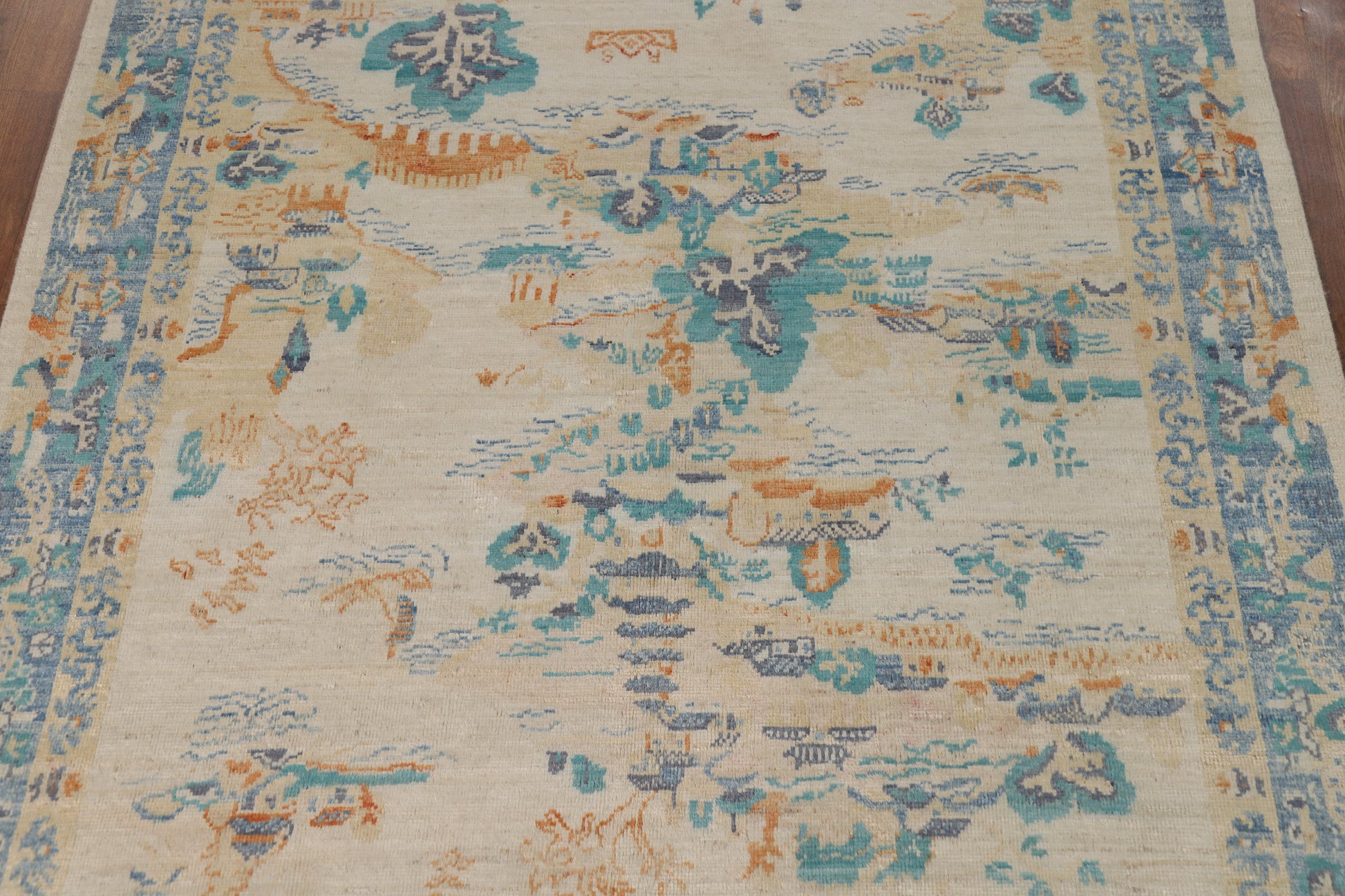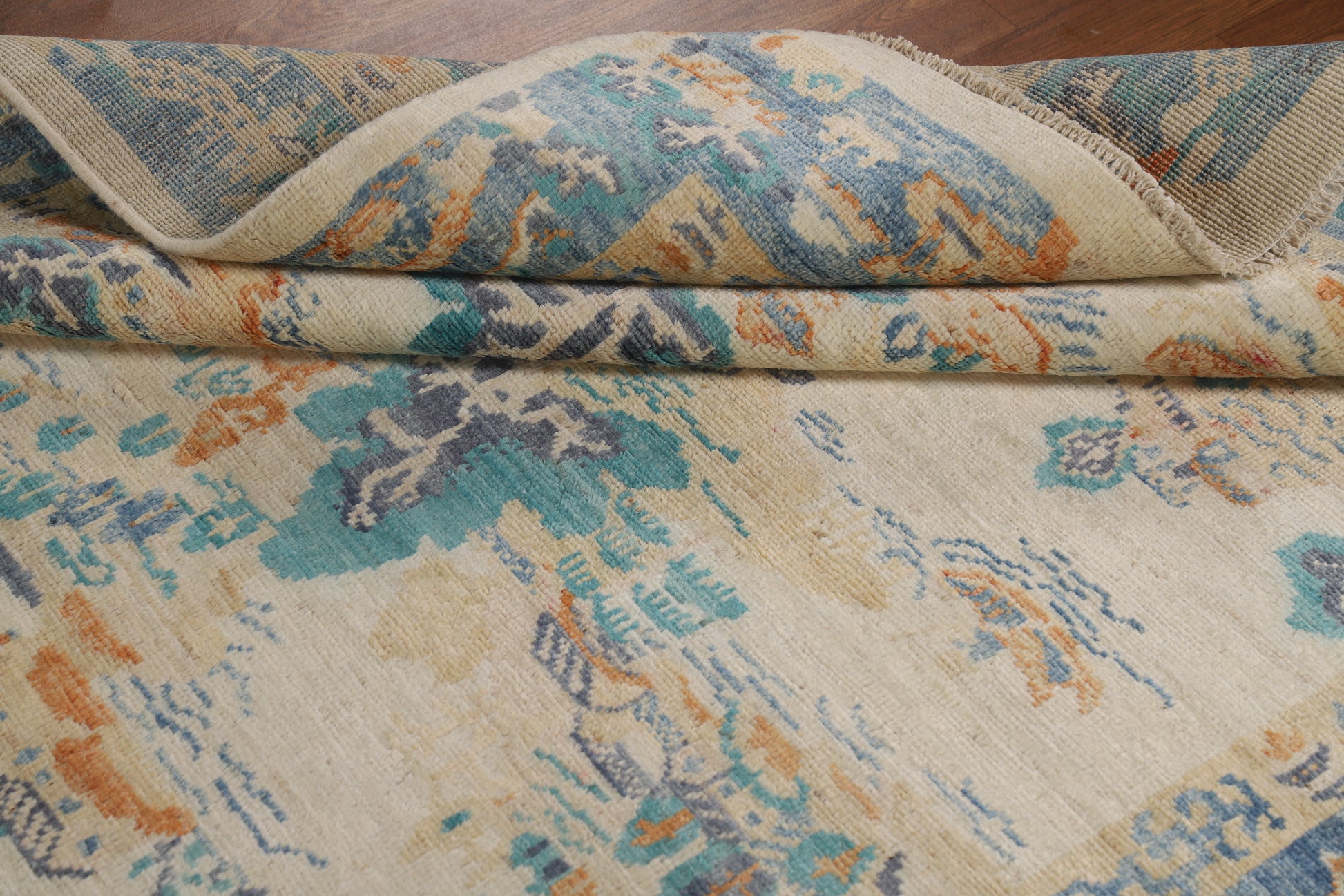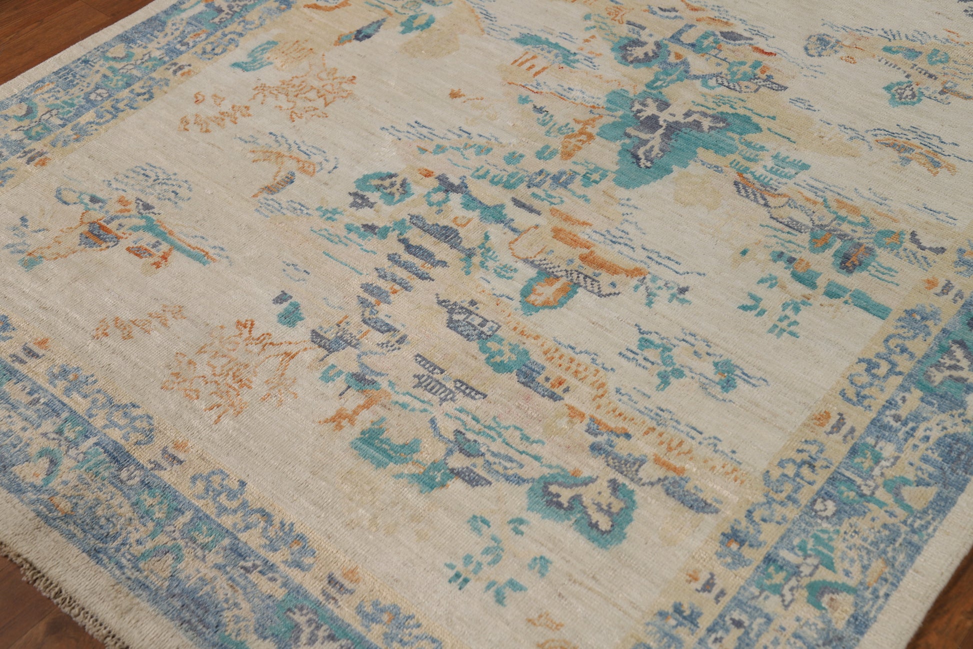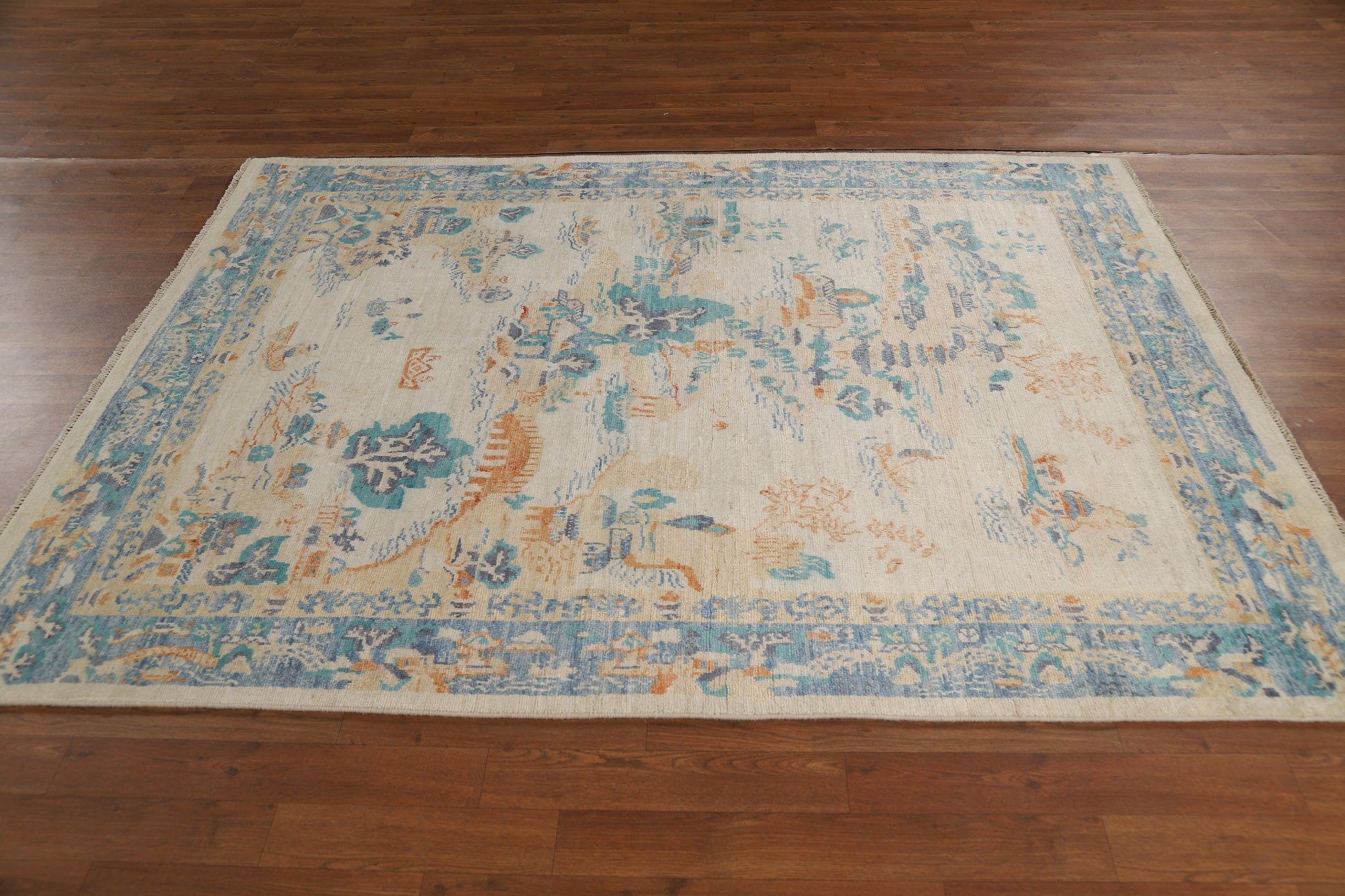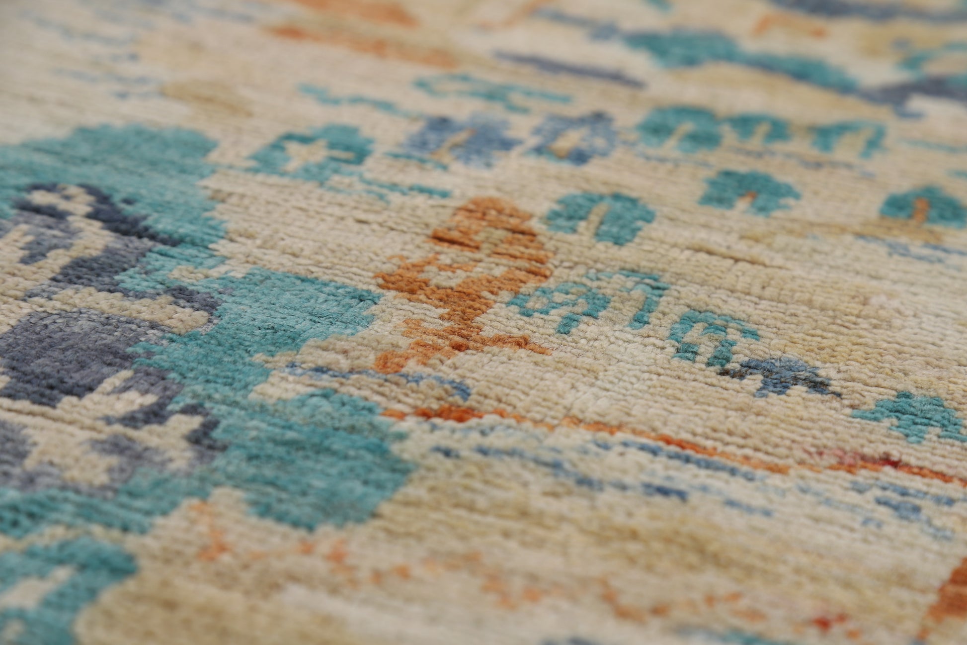 A Beautiful Genuine Turkey Art Deco rug is Hand Knotted by skillful weavers in Turkey with 100% Wool Material. This rug is in New, First Quality condition. dimensions are 6' 9'' X 5' 0'' in foot and 206 X 152 in centimeter. the primary color is Beige & Ivories.
