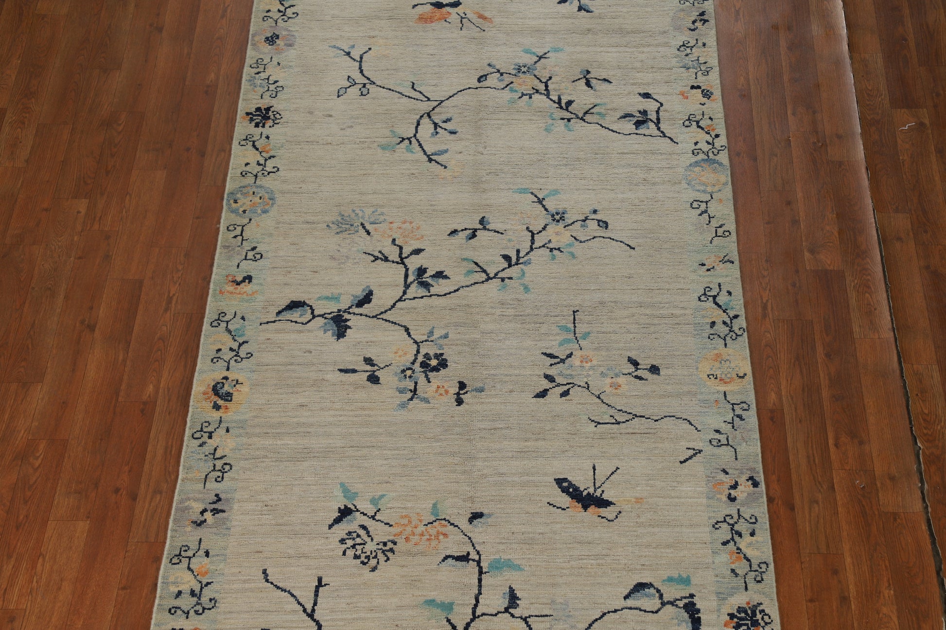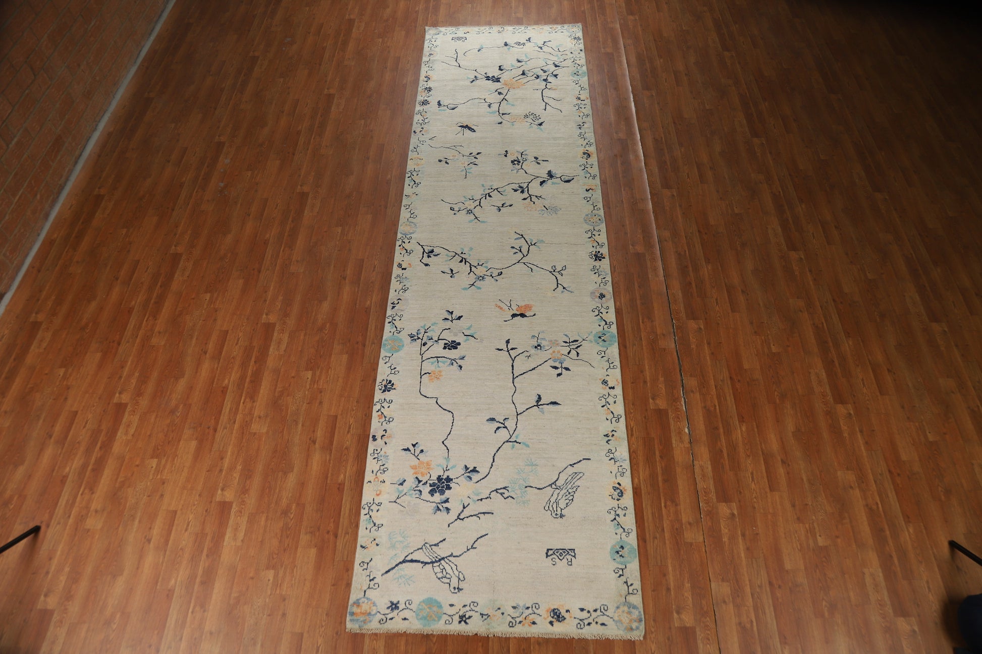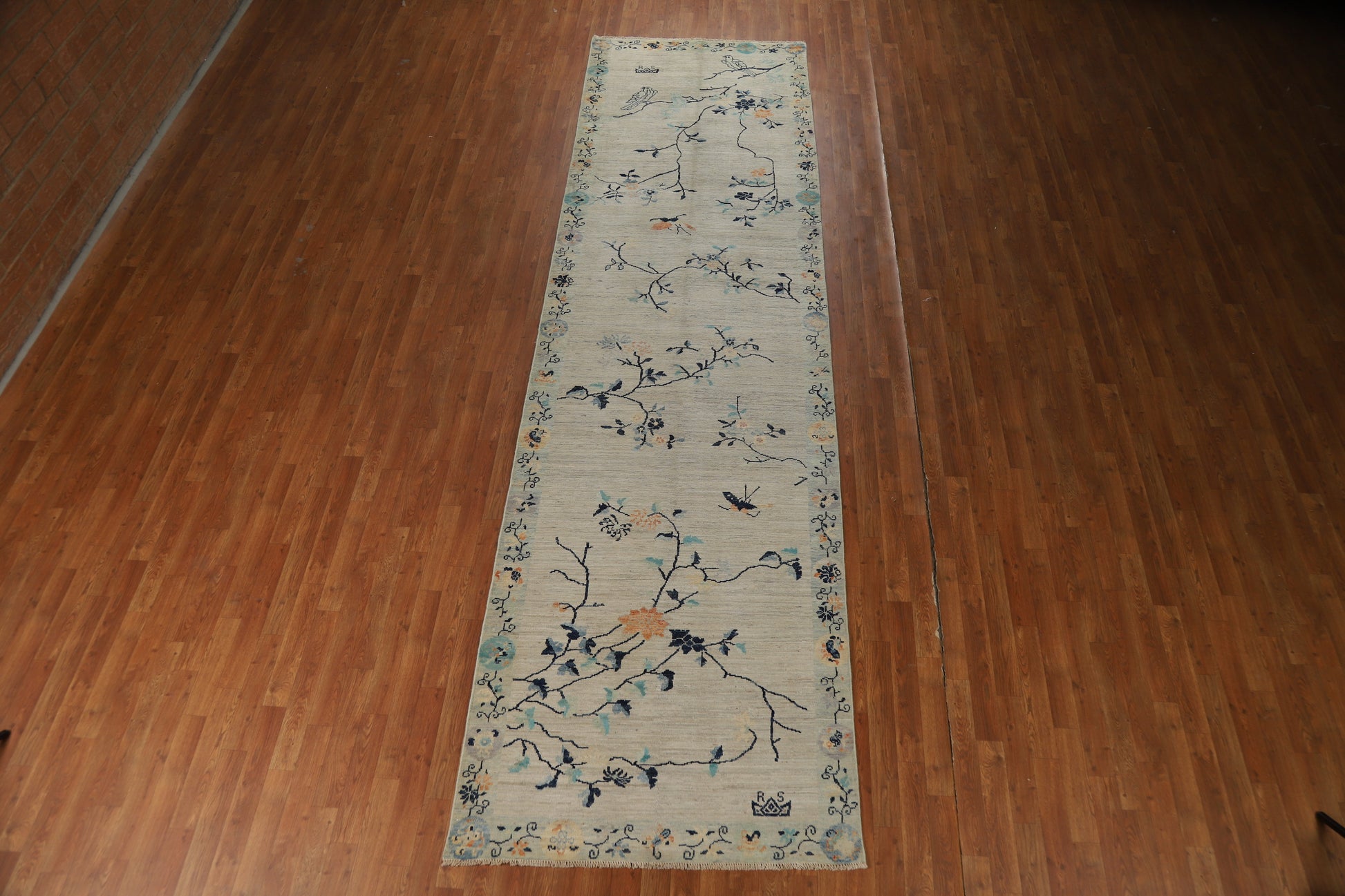 Vegetable Dye Wool Art Deco Turkish Runner Rug 4x14