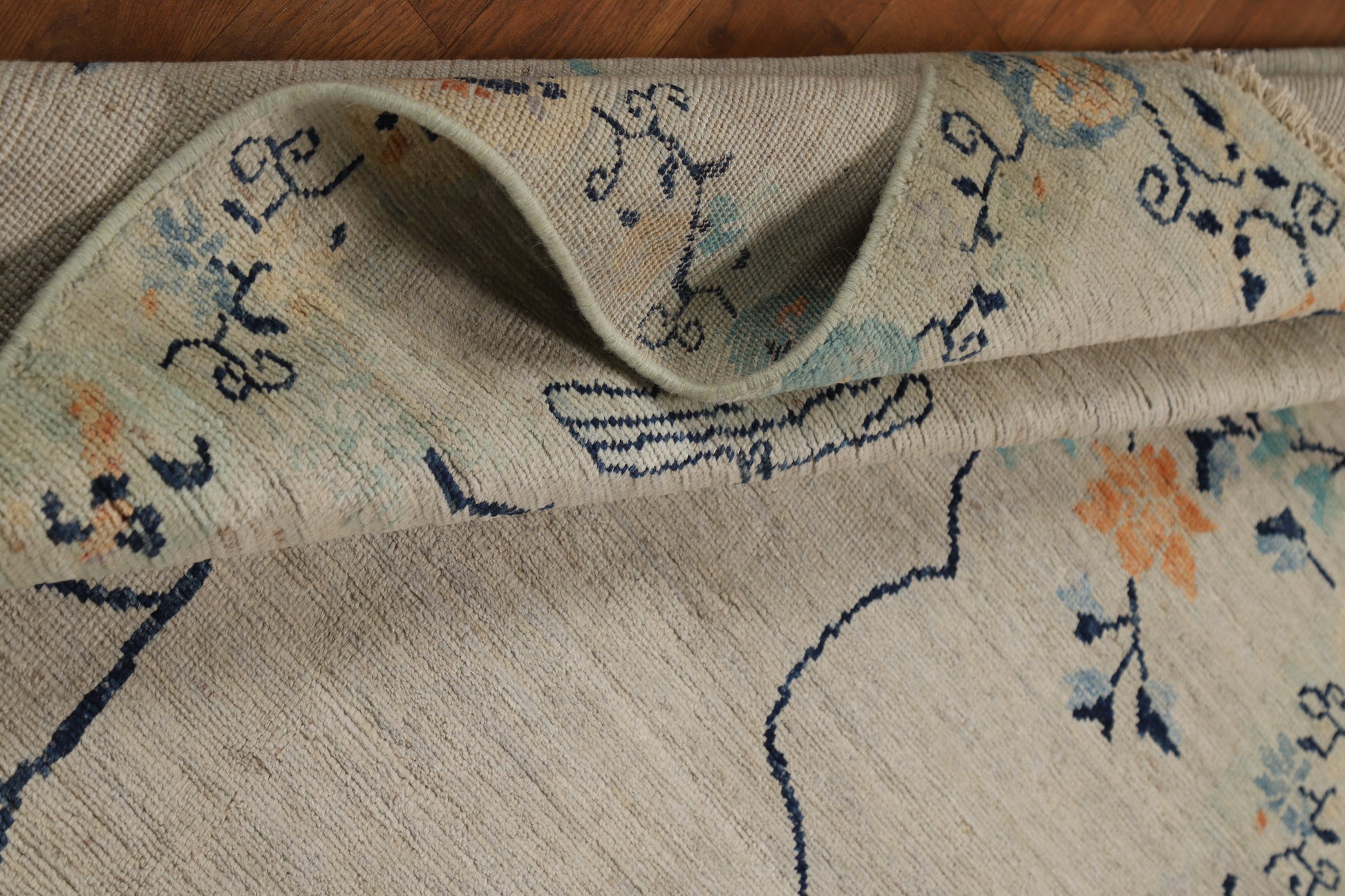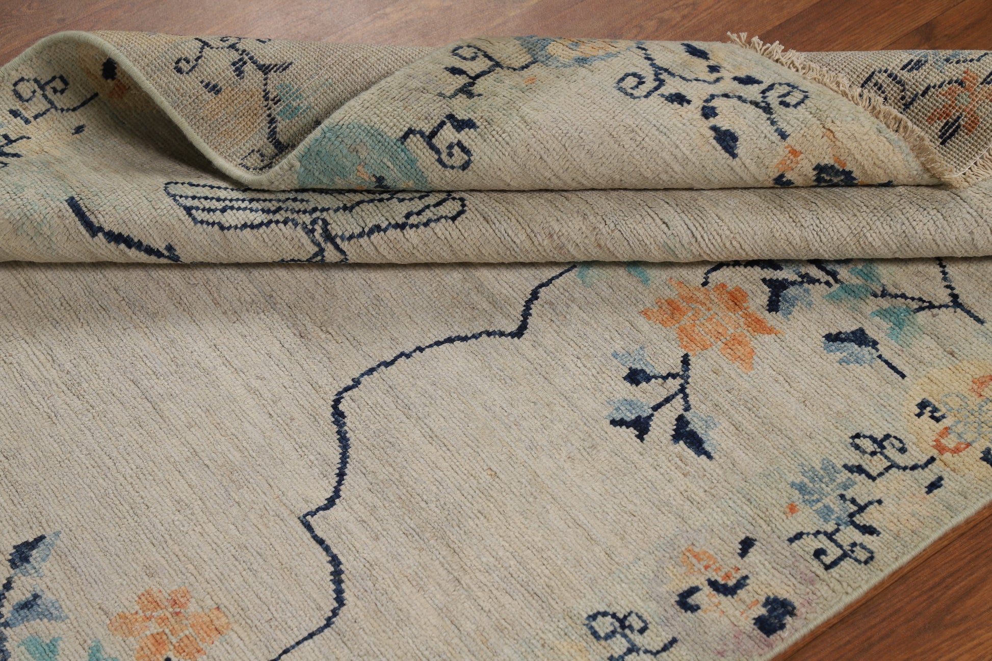 A Beautiful Genuine Turkey Art Deco rug is Hand Knotted by skillful weavers in Turkey with 100% Wool Material. This rug is in New, First Quality condition. dimensions are 14' 4'' X 4' 0'' in foot and 437 X 122 in centimeter. the primary color is Beige & Ivories.