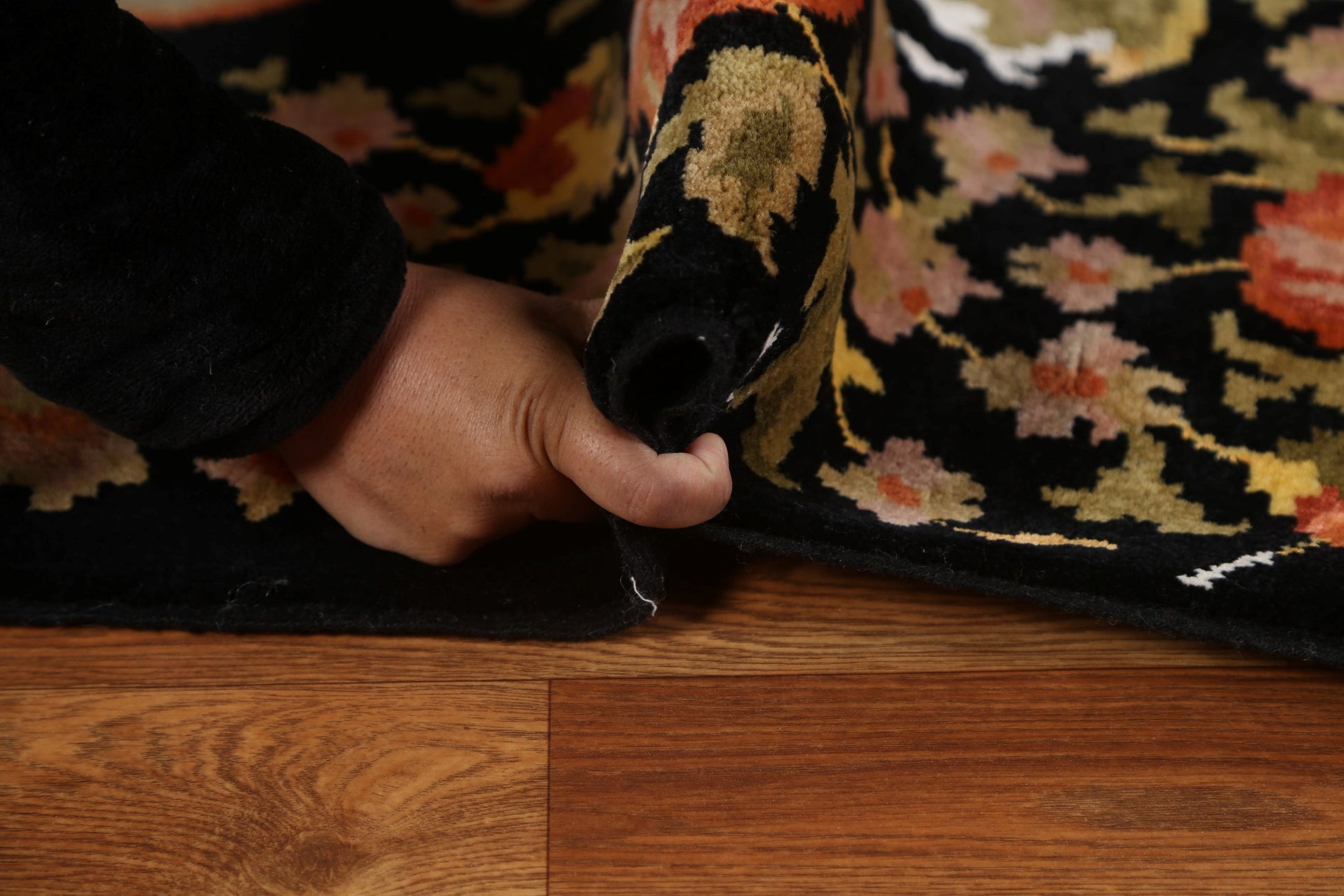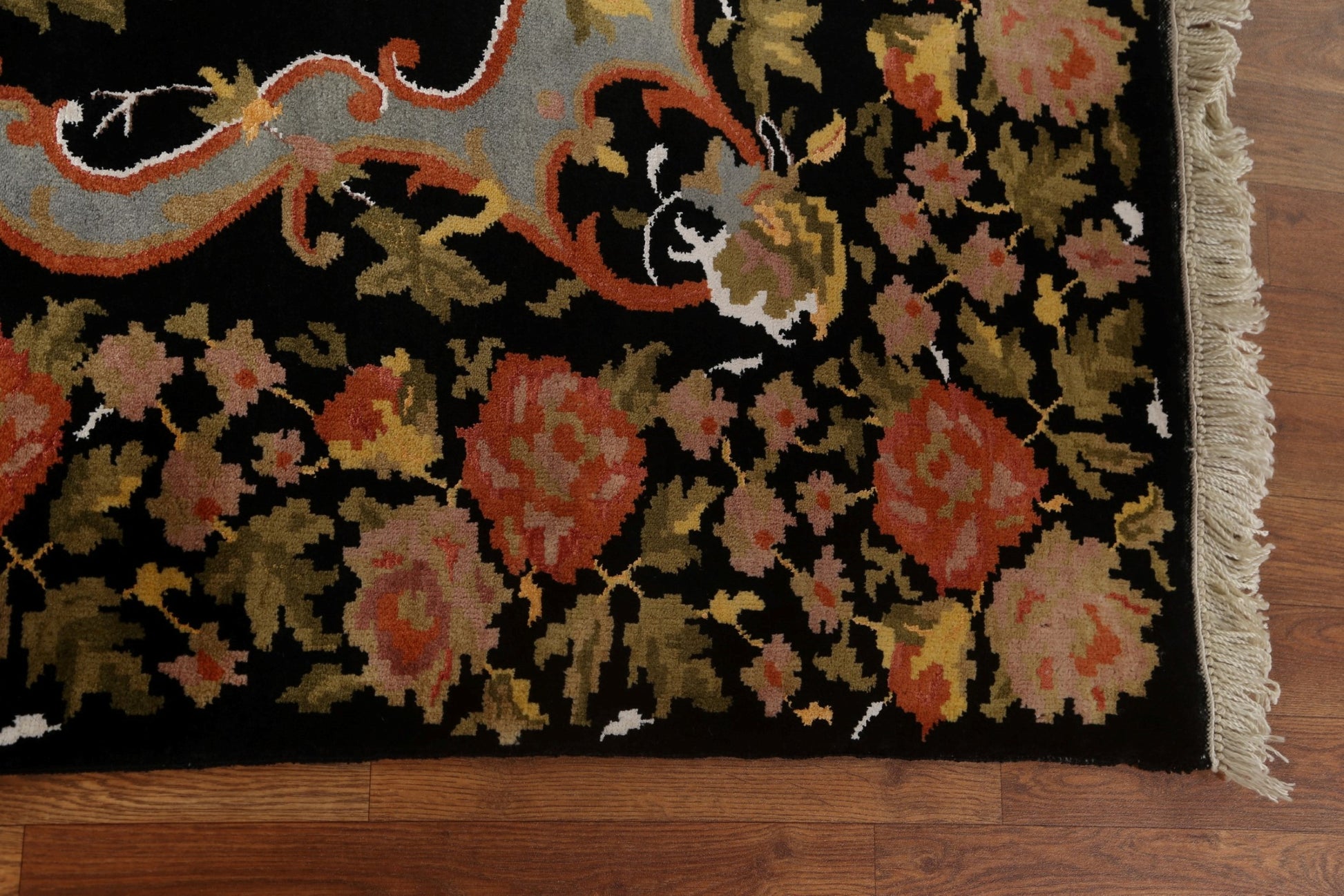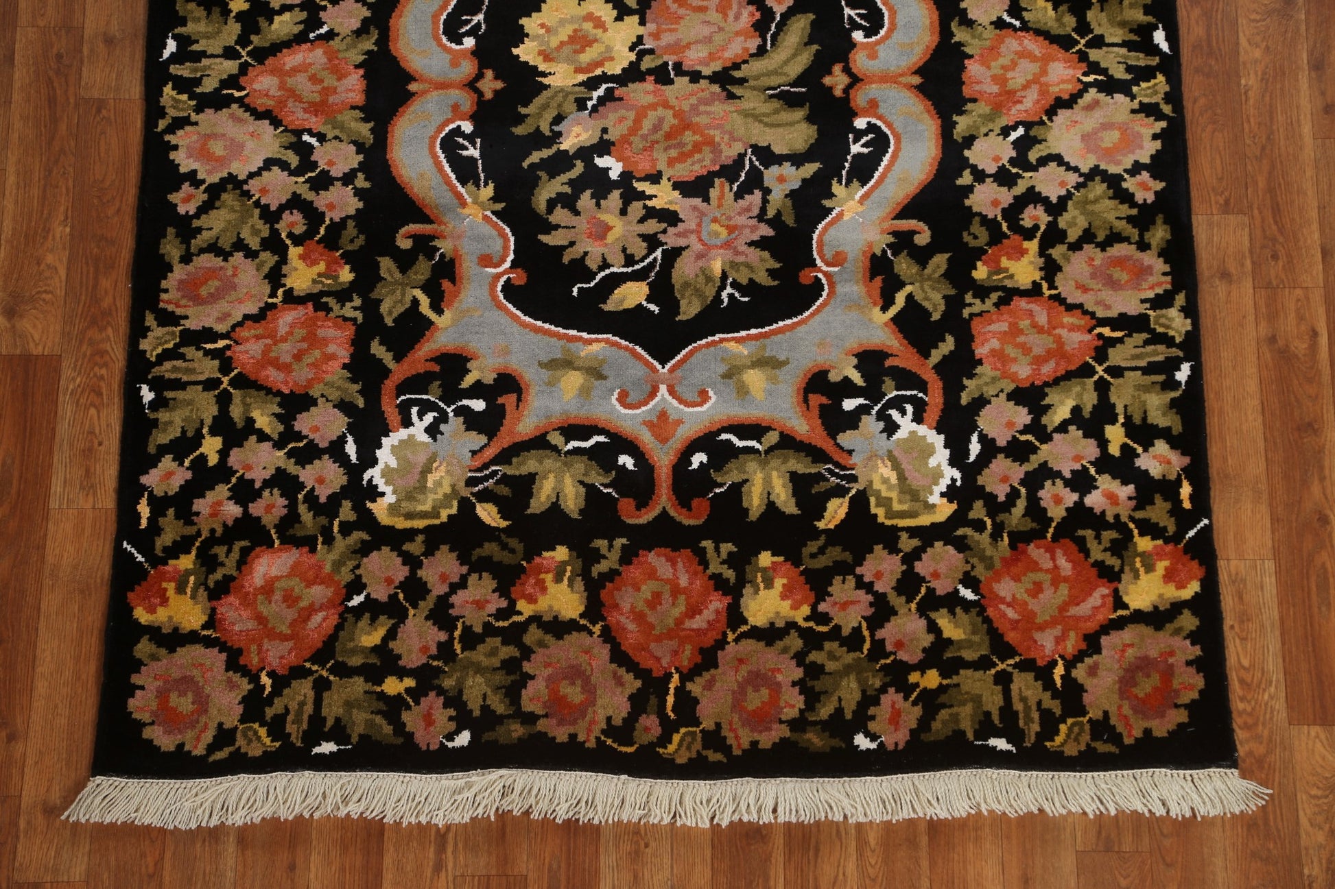 A Beautiful Genuine India Aubusson rug is Hand Knotted by skillful weavers in India with 100% Wool Material. This rug is in New, First Quality condition. dimensions are 6' 2'' X 4' 4'' in foot and 188 X 132 in centimeter. the primary color is Black.