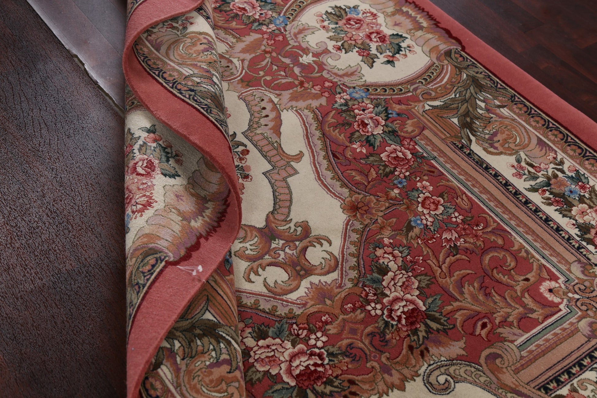 A Beautiful Genuine China Aubusson rug is Hand Knotted by skillful weavers in China with 100% Wool Material. This rug is in New, First Quality condition. dimensions are 8' 9'' X 5' 9'' in foot and 267 X 175 in centimeter. the primary color is Red.
