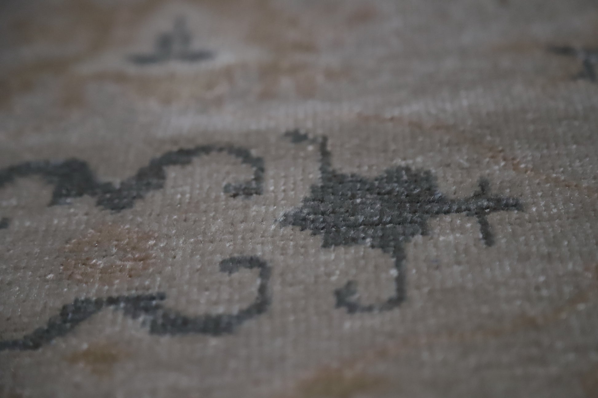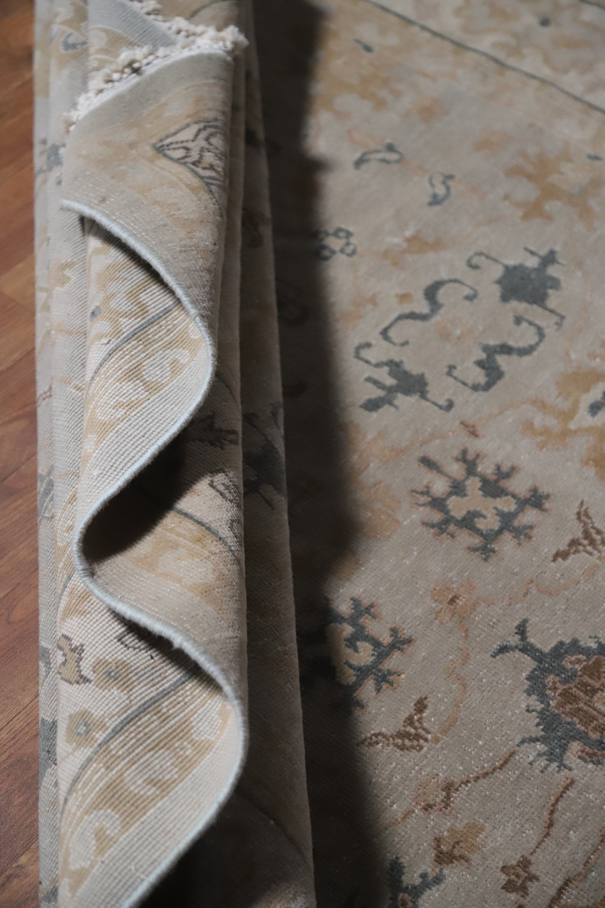 A Beautiful Genuine Egypt Oushak rug is Hand Knotted by skillful weavers in Egypt with 100% Wool Material. This rug is in New, First Quality condition. dimensions are 6' 0'' X 5' 1'' in foot and 183 X 155 in centimeter. the primary color is Greys & Charcoal.