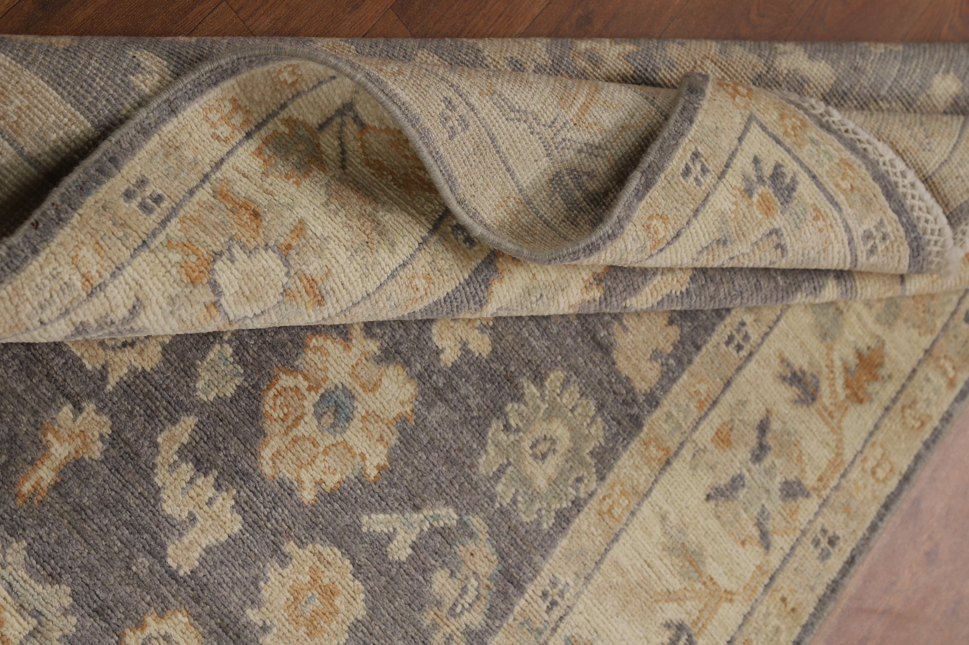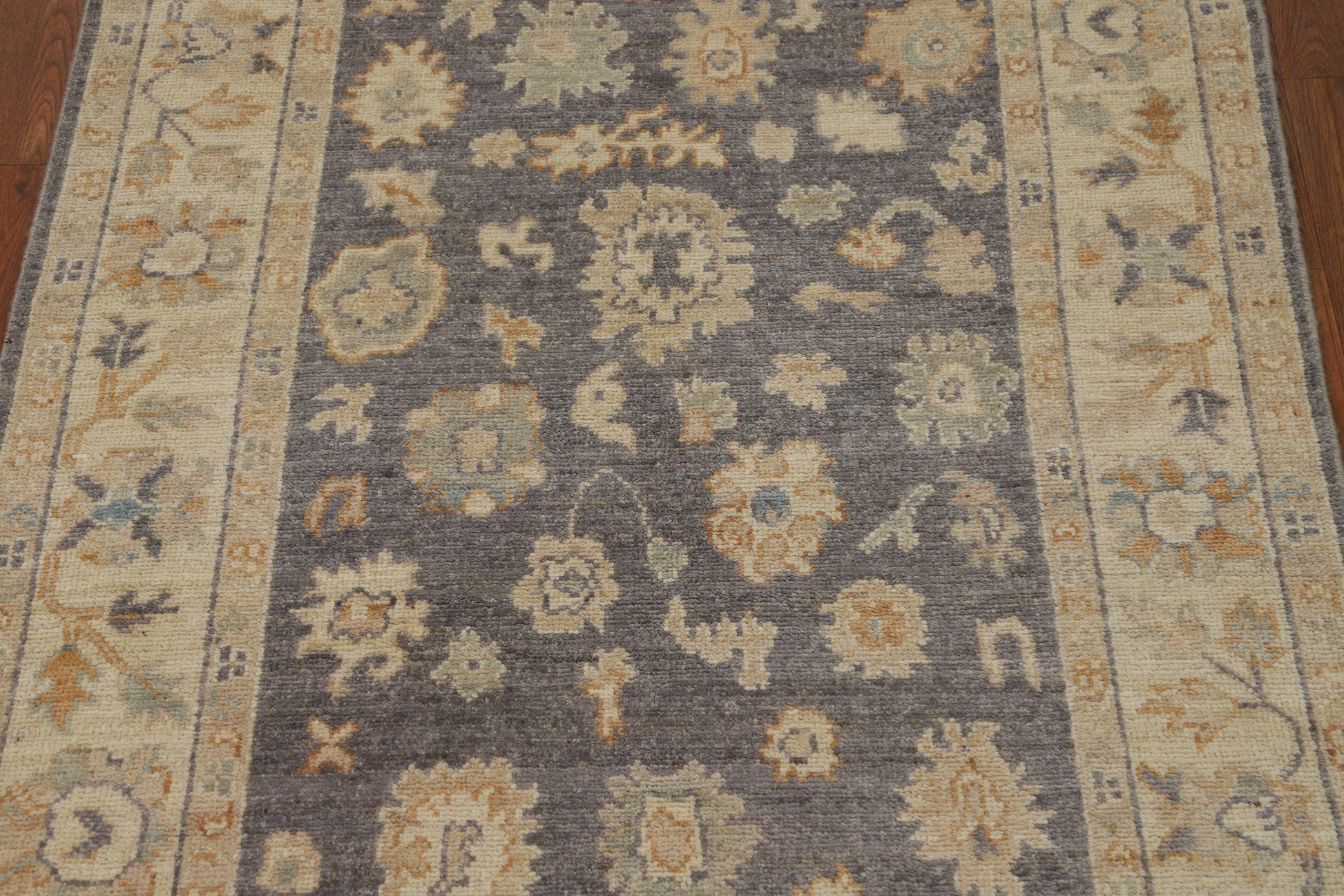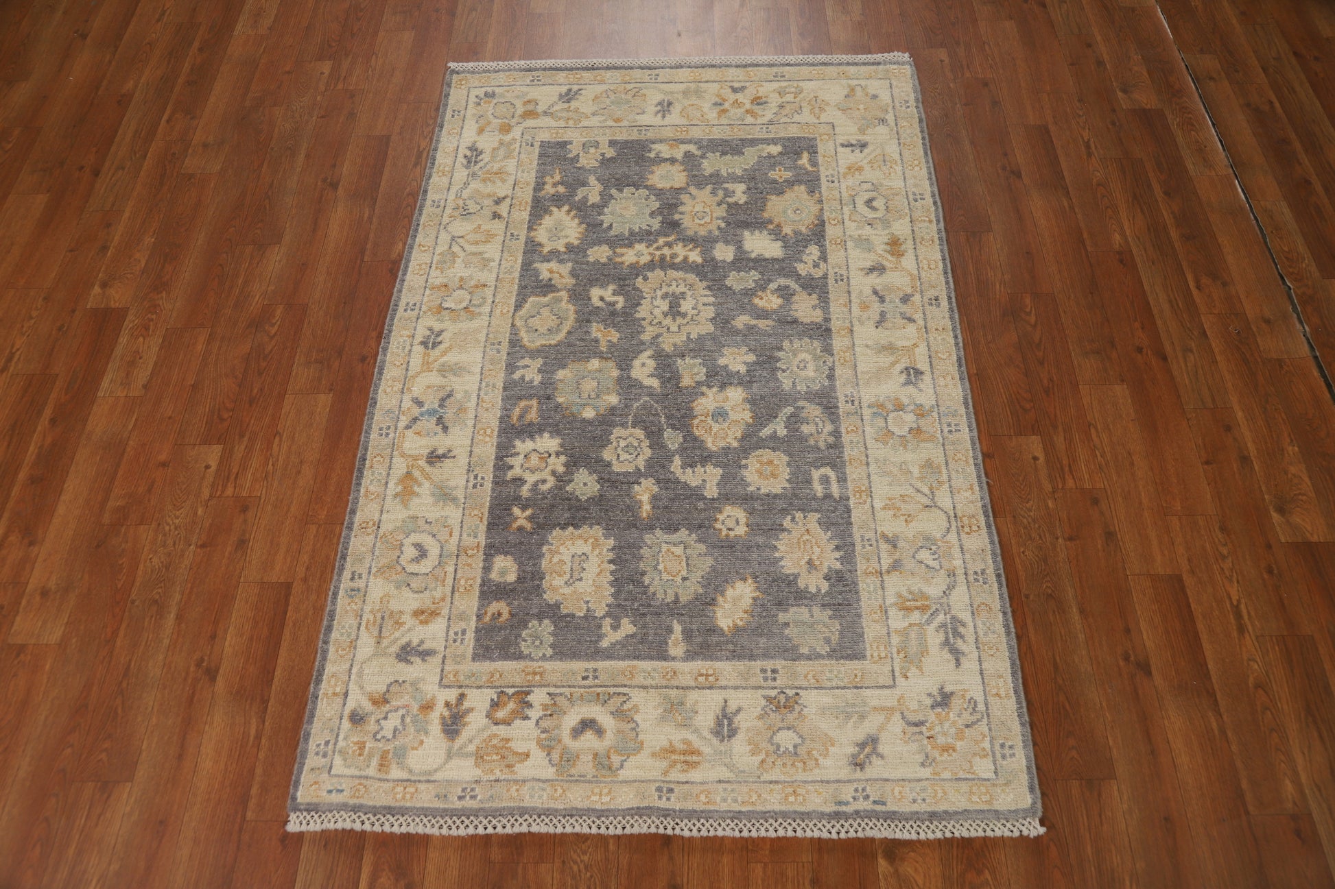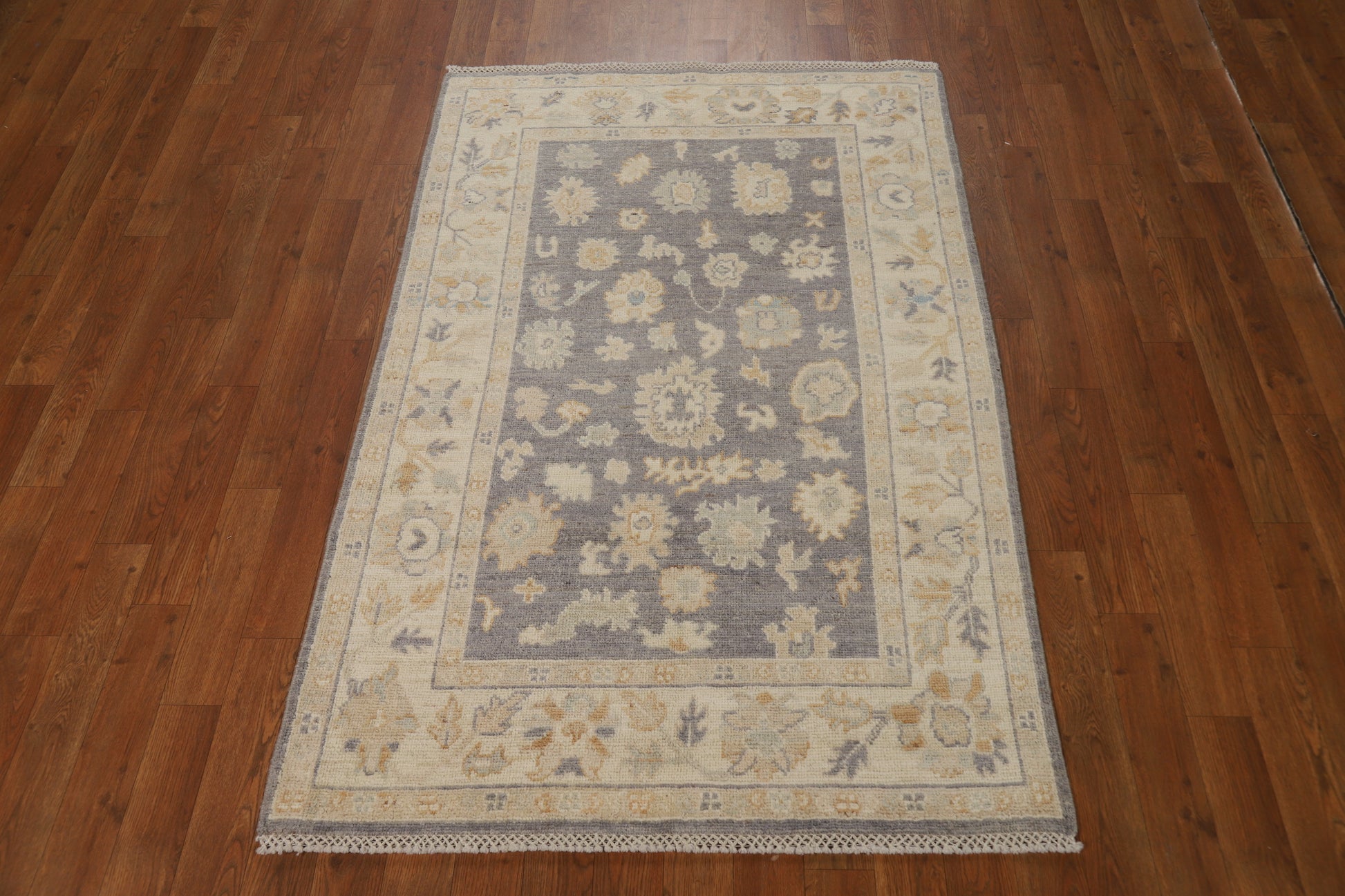 Vegetable Dye Wool Gray Oushak Turkish Rug 3x5
