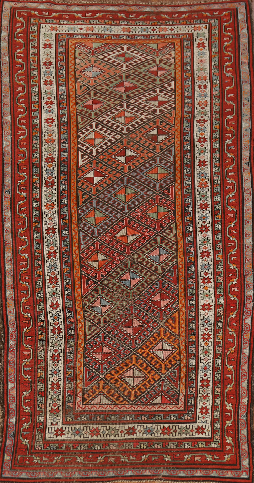 Vegetable Dye Wool Kazak Oriental Runner Rug 3x8