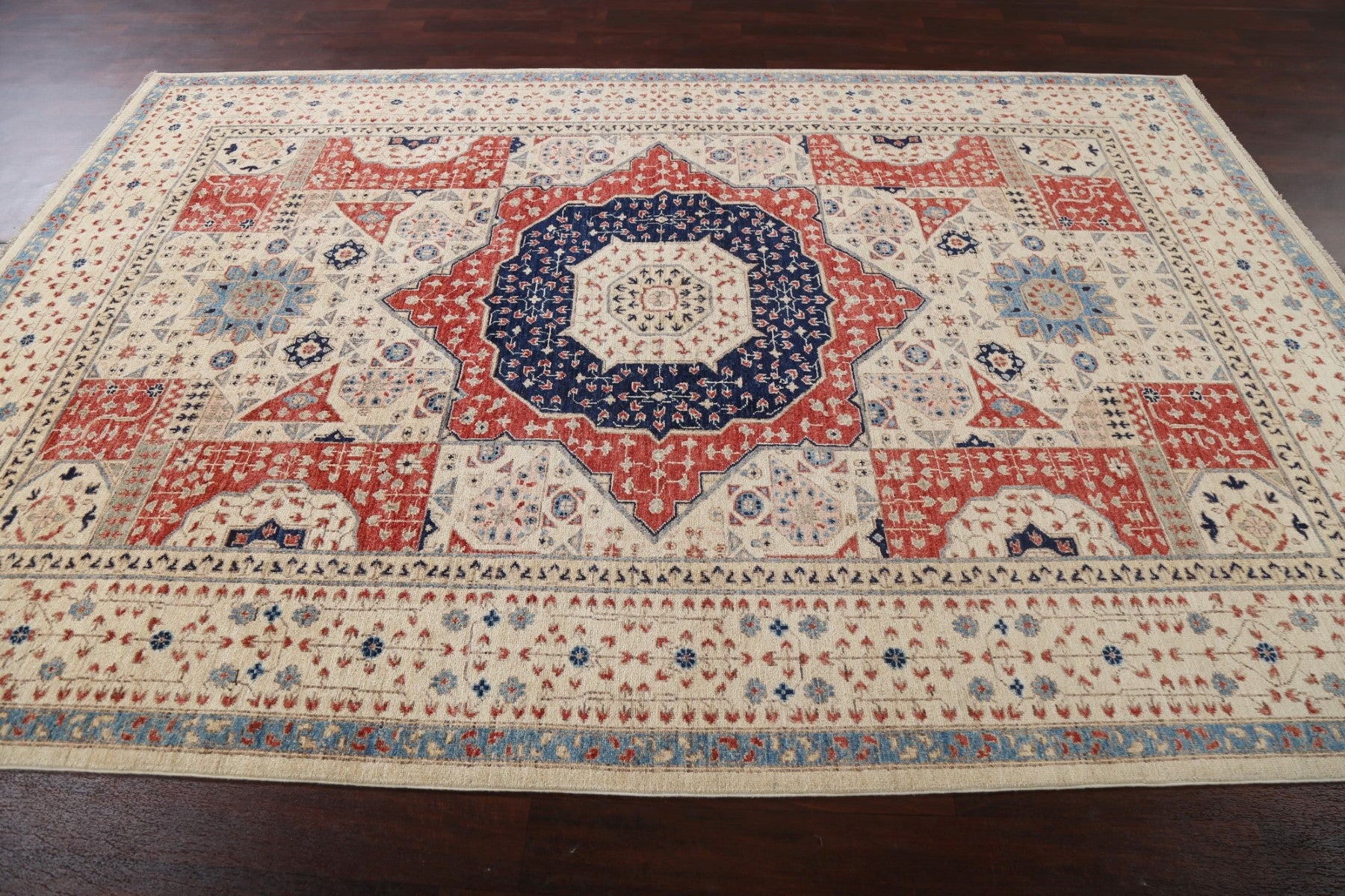A Beautiful Genuine Pakistan Khotan rug is Hand Knotted by skillful weavers in Pakistan with 100% Wool Material. This rug is in New, First Quality condition. dimensions are 10' 0'' X 6' 9'' in foot and 305 X 206 in centimeter. the primary color is Beige & Ivories.