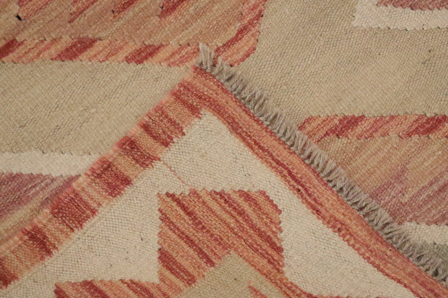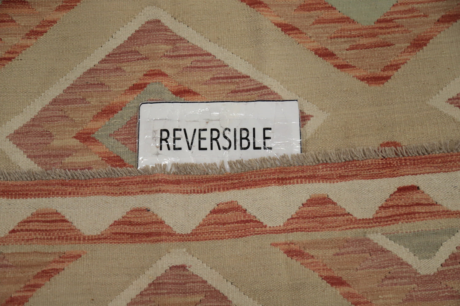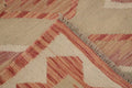 A Beautiful Genuine Pakistan Kilim rug is Hand Woven by skillful weavers in Pakistan with 100% Wool Material. This rug is in New, First Quality condition. dimensions are 6' 7'' X 4' 11'' in foot and 201 X 150 in centimeter. the primary color is Beige & Ivories.