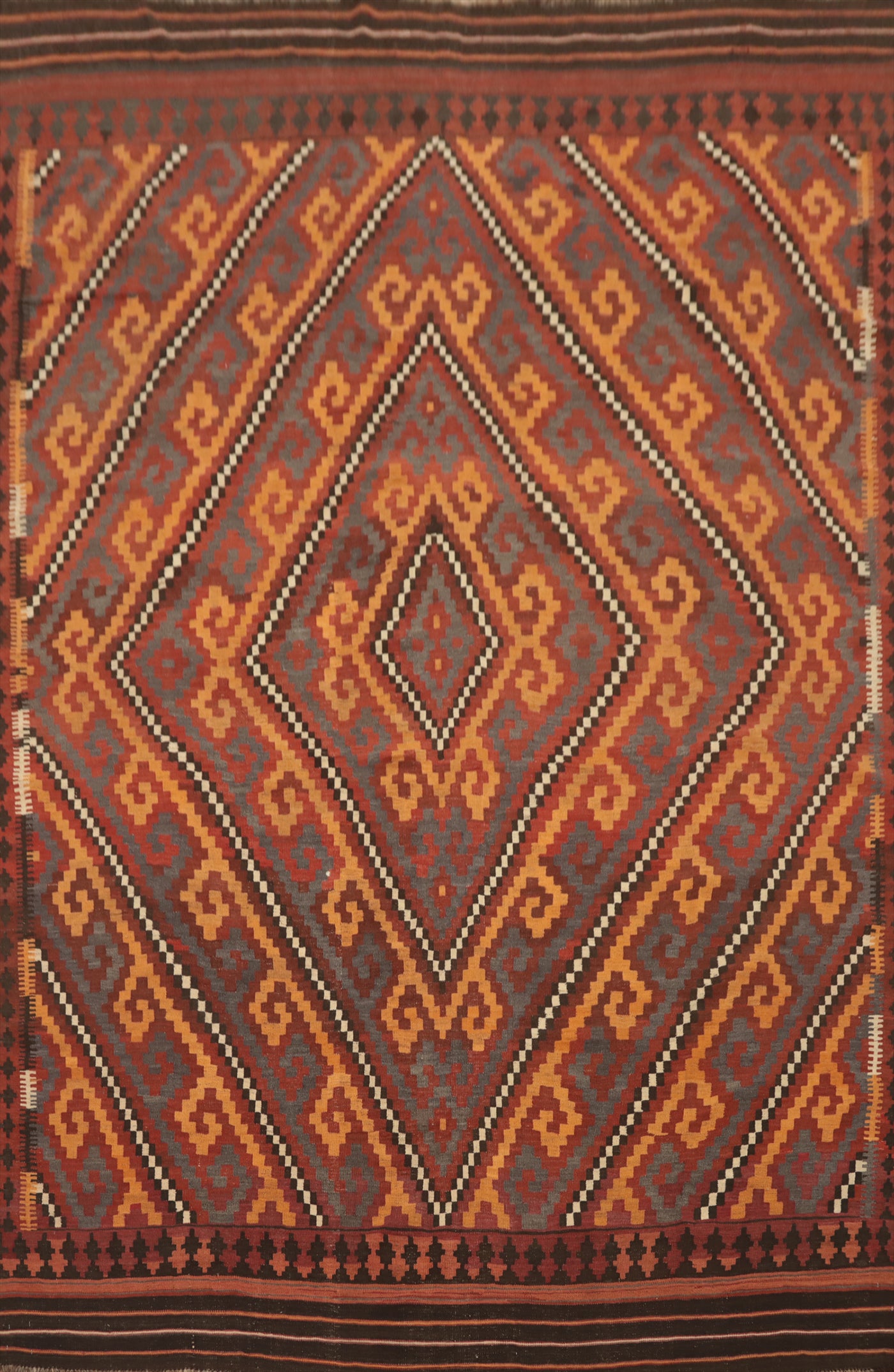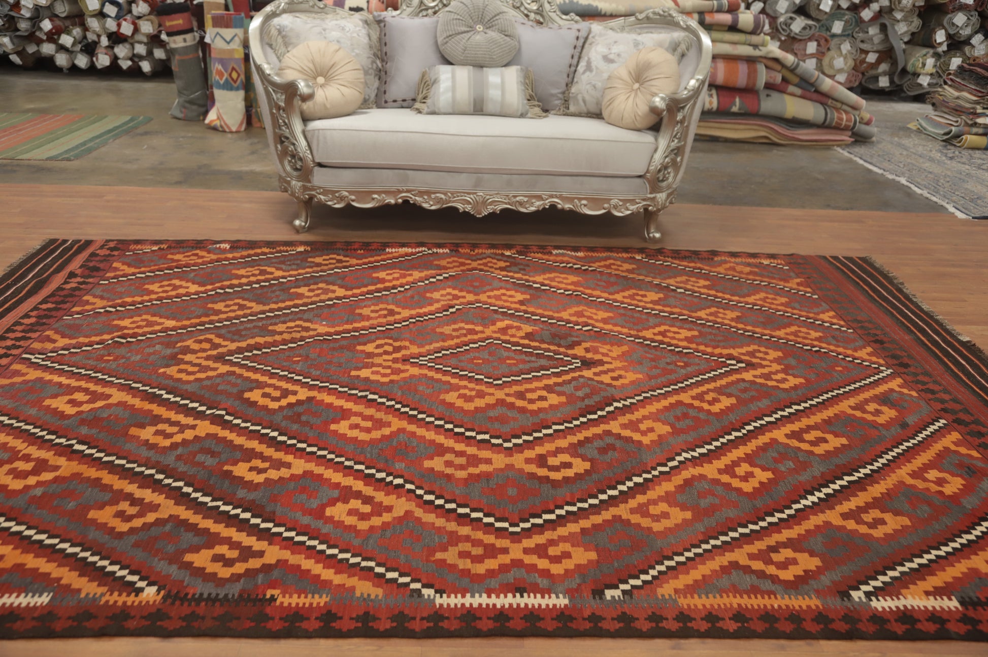 A Beautiful Genuine Pakistan Kilim rug is Hand Woven by skillful weavers in Pakistan with 100% Wool Material. This rug is in New, First Quality condition. dimensions are 12' 0'' X 8' 0'' in foot and  366 X 244 in centimeter. the primary color is Oranges & Rust.