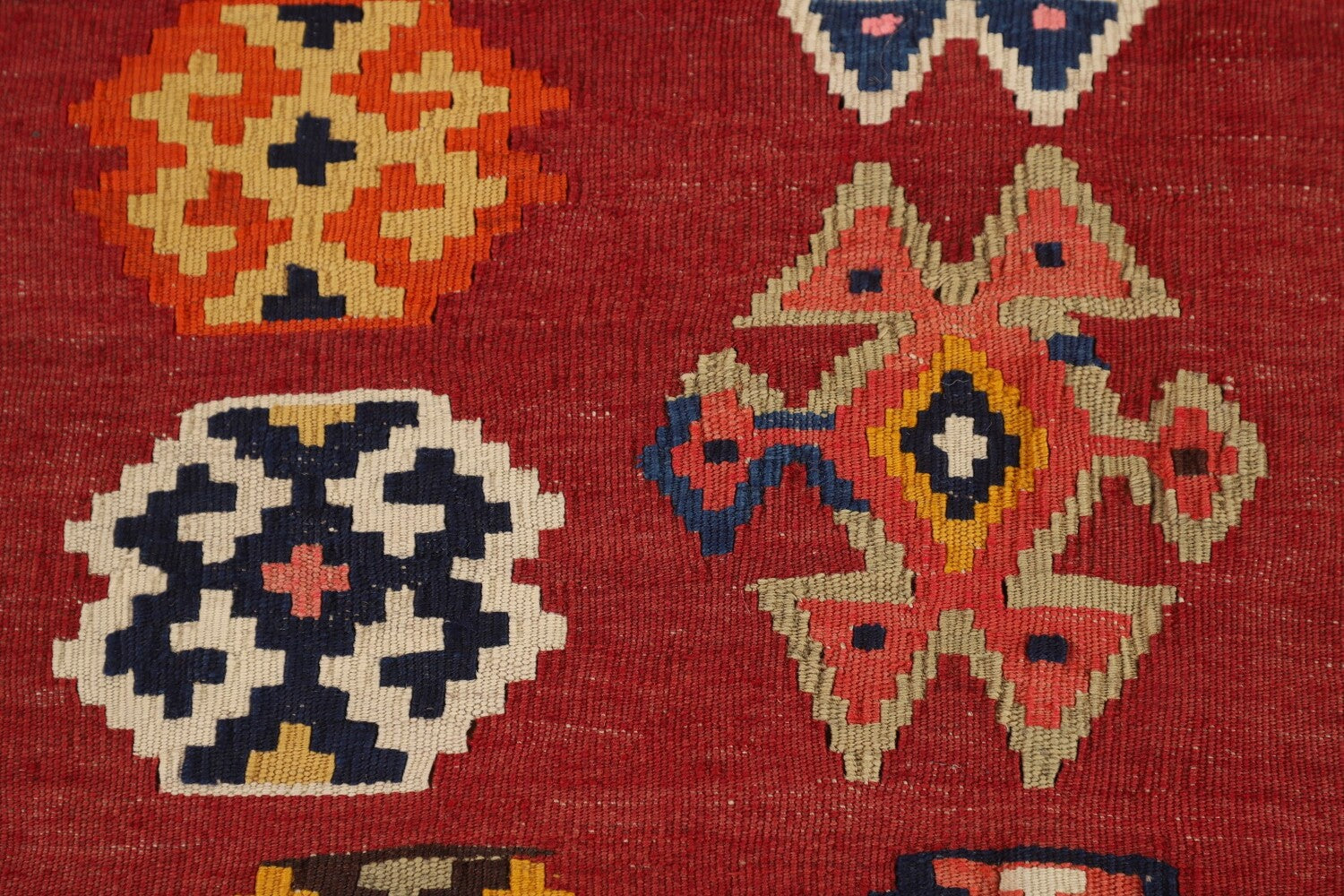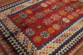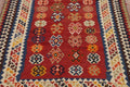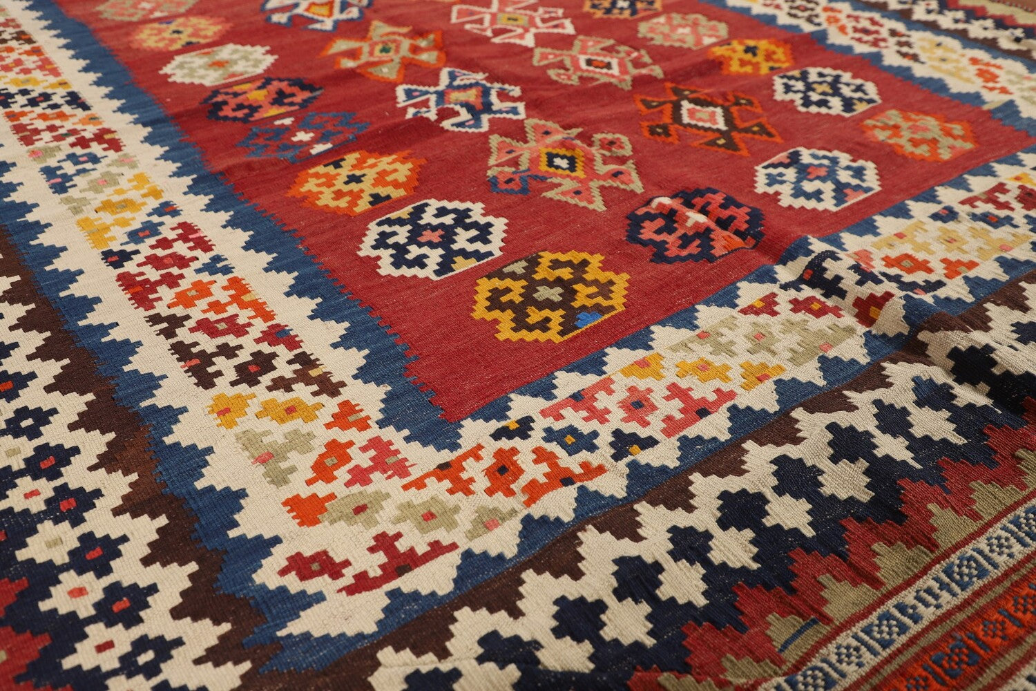 A Beautiful Genuine Persia ( Persia ) Kilim (Qashqai) rug is Hand Woven by skillful weavers in Persia ( Persia ) with 100% Wool Material. This rug is in Very Good (Abrash) condition. dimensions are 7' 7'' X 5' 4'' in foot and 231 X 163 in centimeter. the primary color is Red.