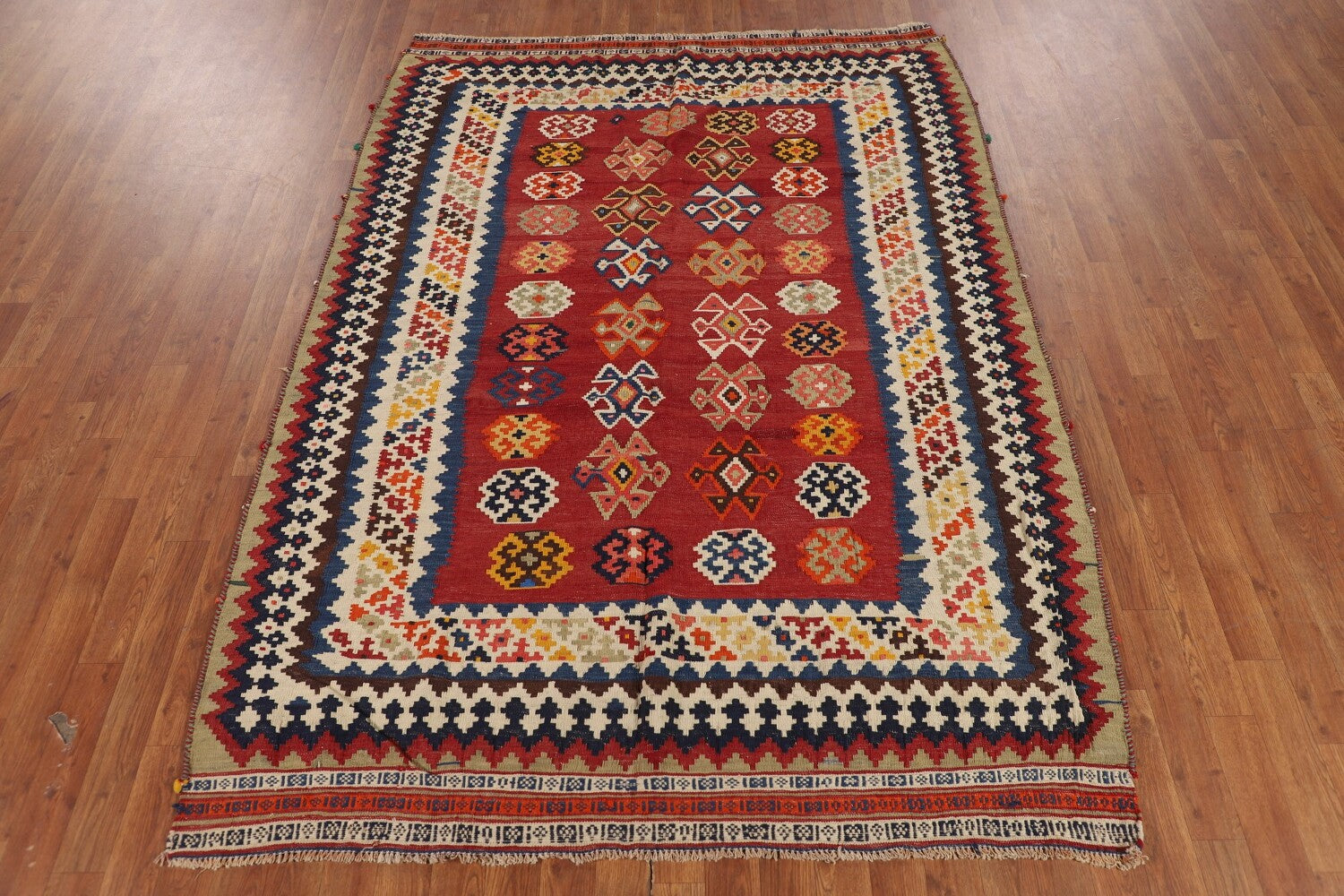 Vegetable Dye Wool Kilim Qashqai Persian Area Rug 5x8