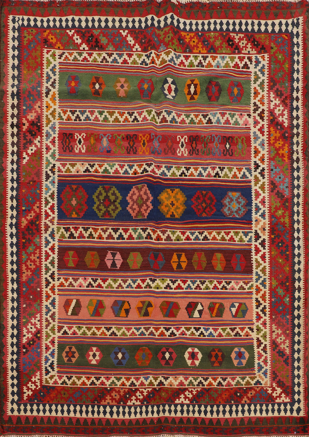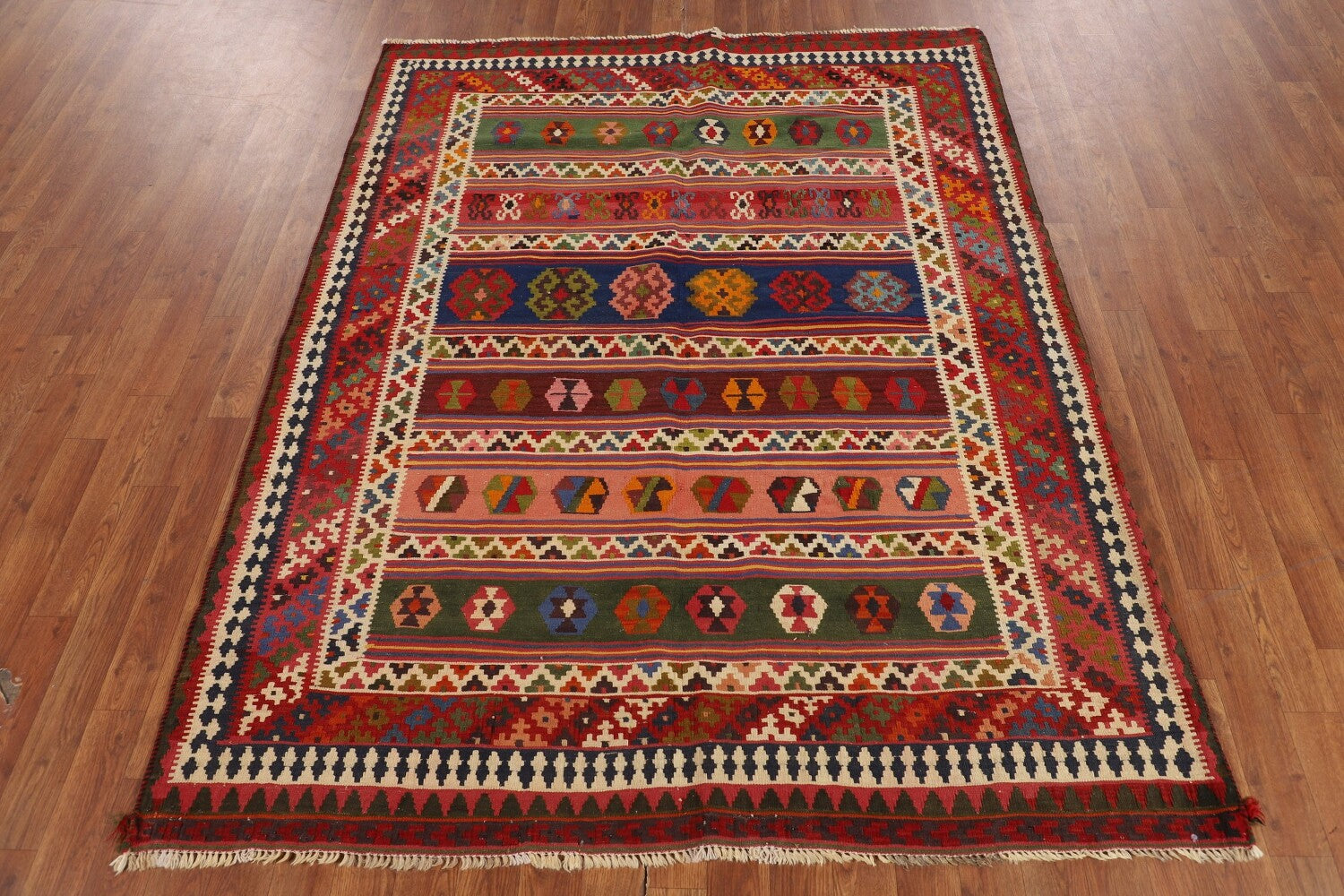 Vegetable Dye Wool Kilim Qashqai Persian Rug 5x6