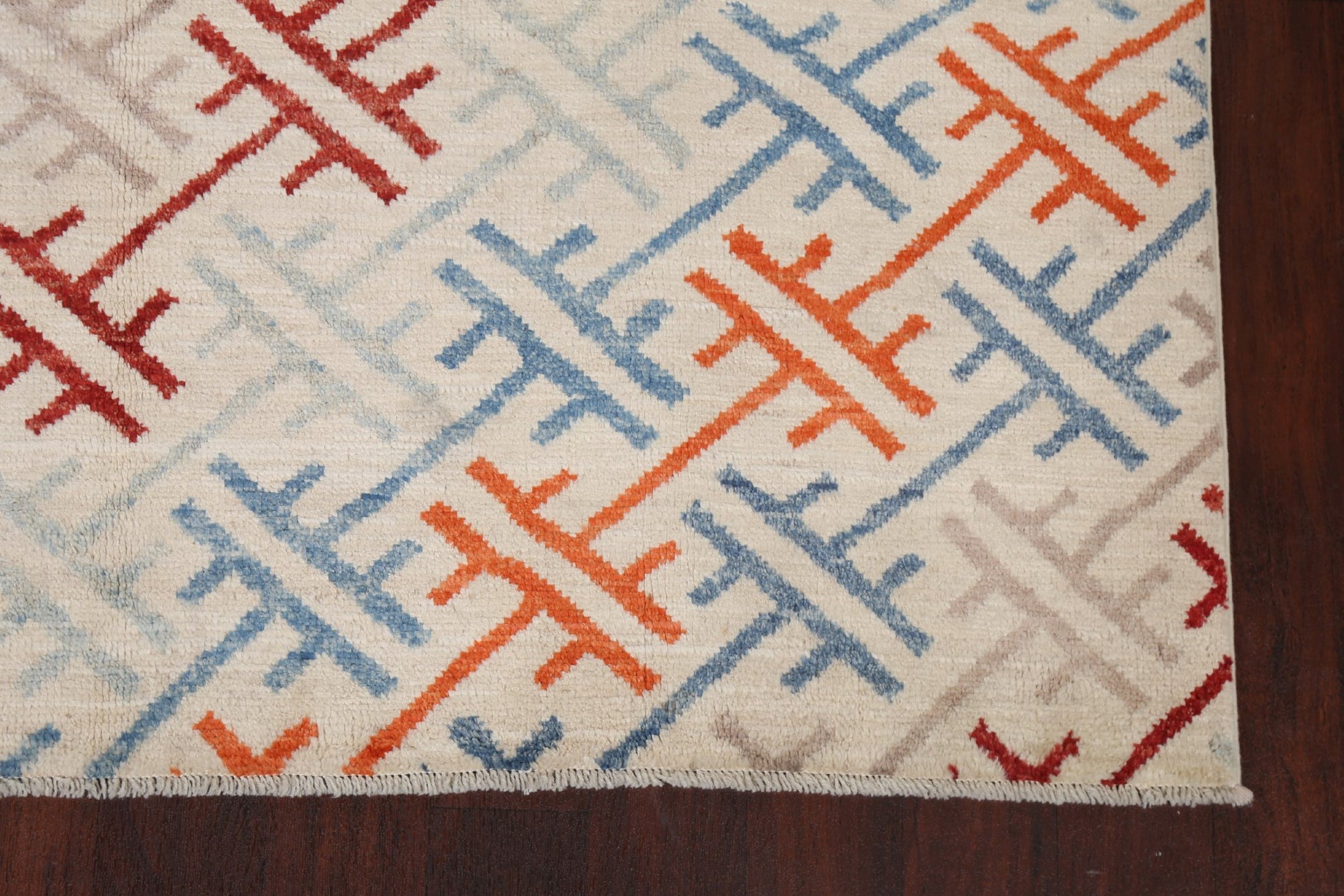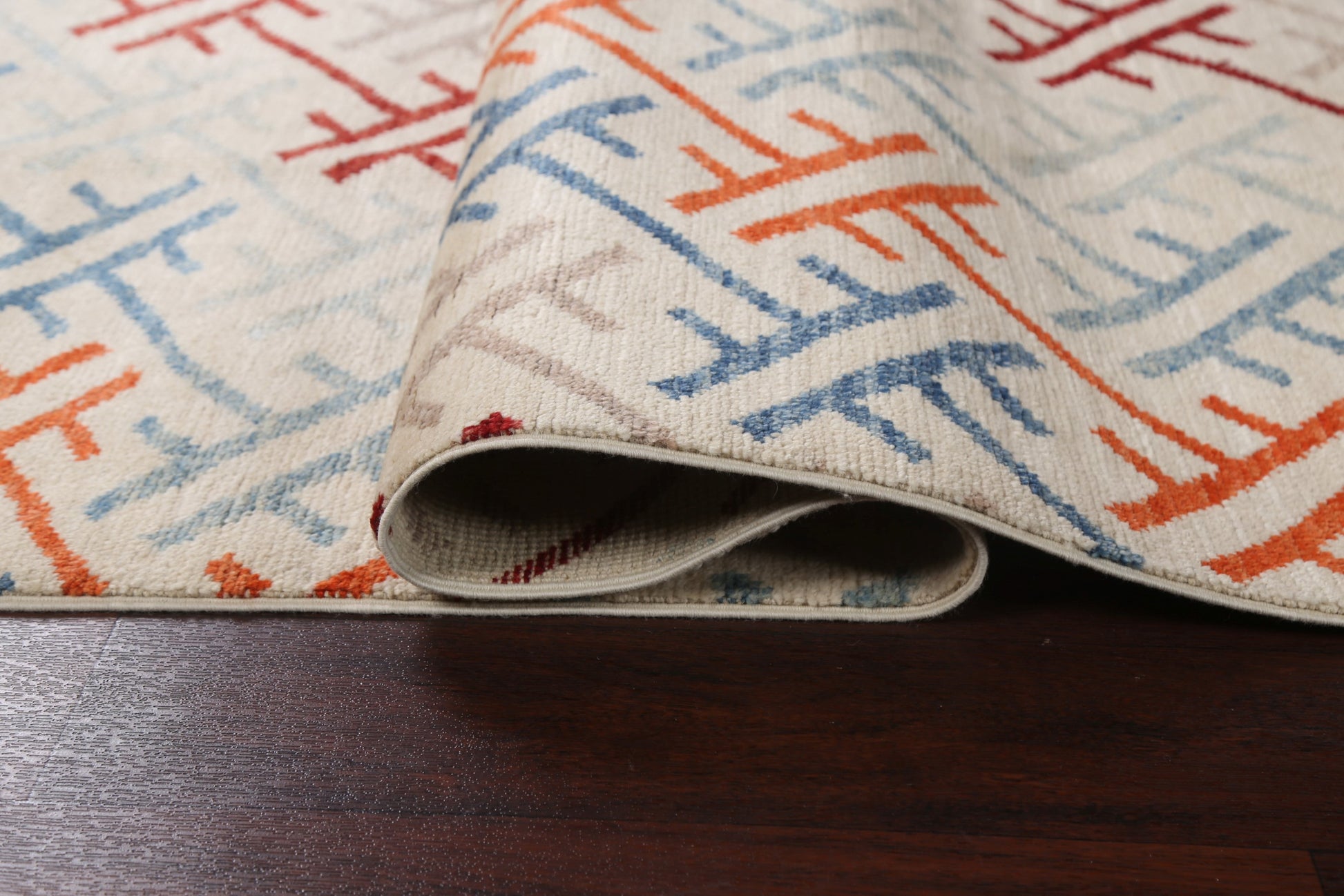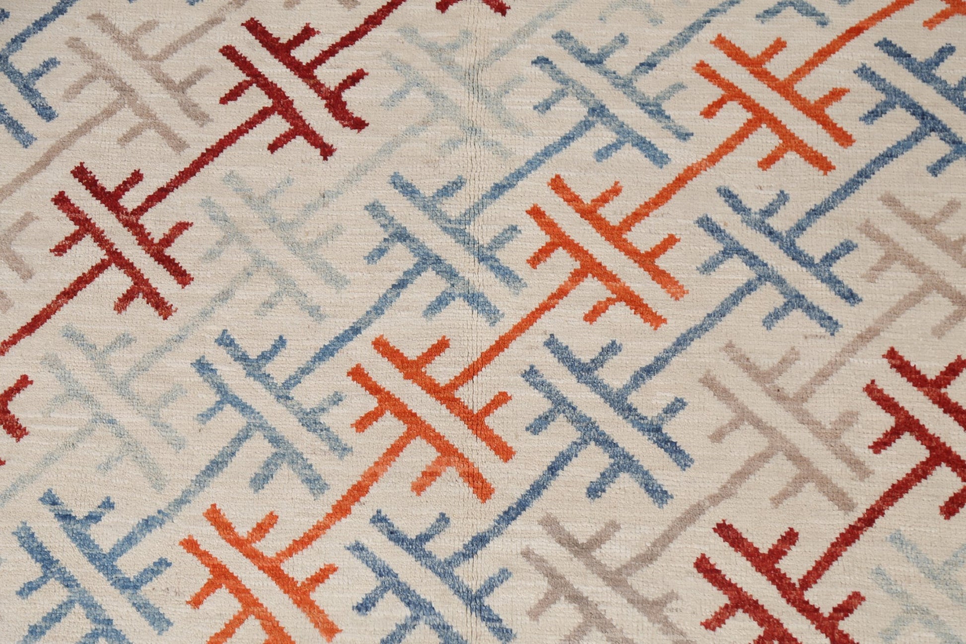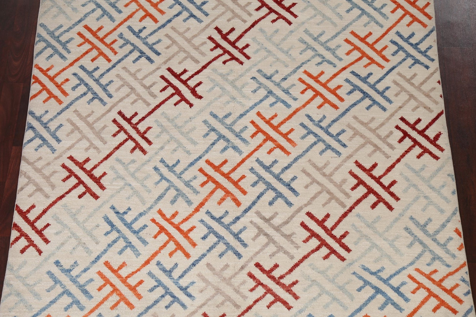 A Beautiful Genuine Pakistan Moroccan rug is Hand Knotted by skillful weavers in Pakistan with 100% Wool Material. This rug is in New, First Quality condition. dimensions are 8' 0'' X 5' 9'' in foot and 244 X 175 in centimeter. the primary color is Beige & Ivories.