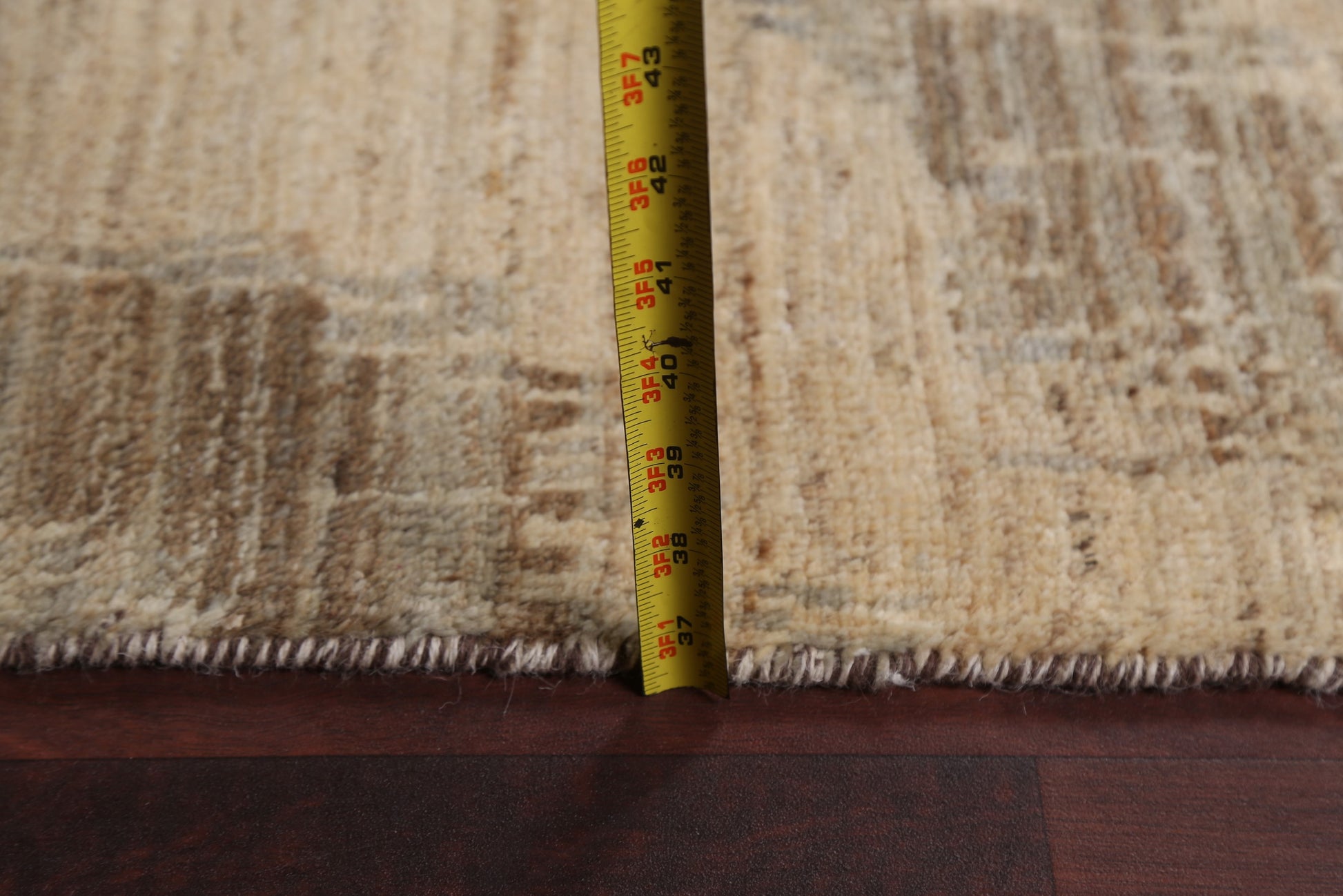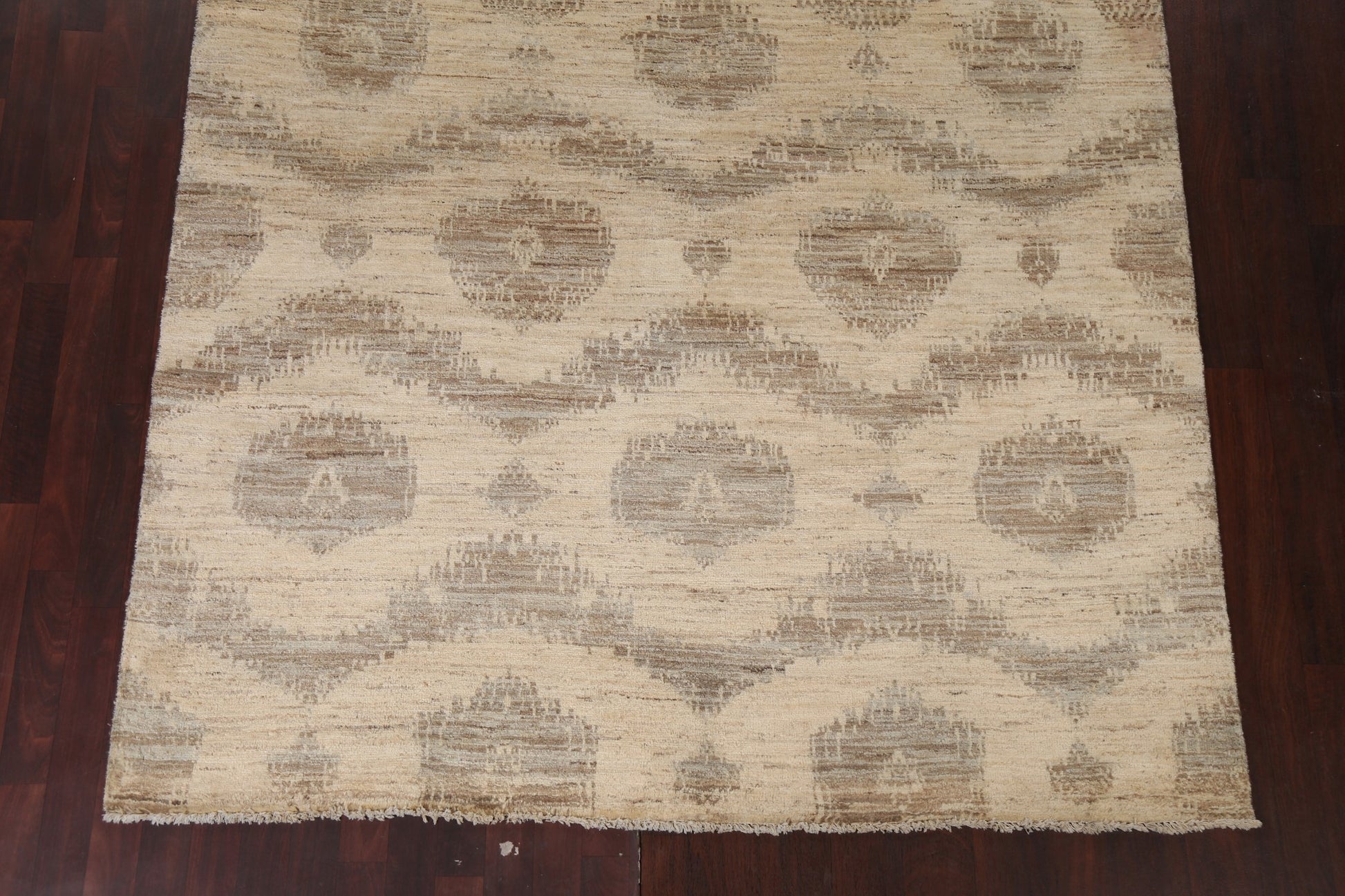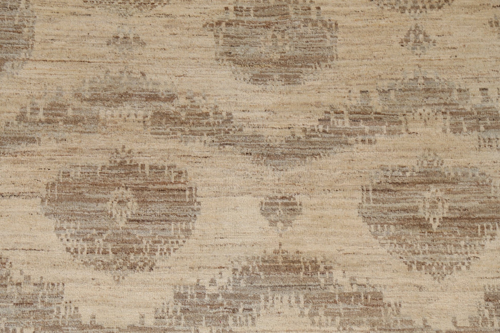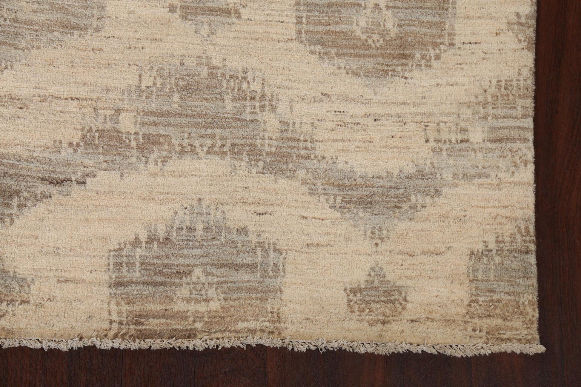 A Beautiful Genuine Pakistan Moroccan rug is Hand Knotted by skillful weavers in Pakistan with 100% Wool Material. This rug is in New, First Quality condition. dimensions are 9' 10'' X 6' 8'' in foot and 300 X 203 in centimeter. the primary color is Beige & Ivories.