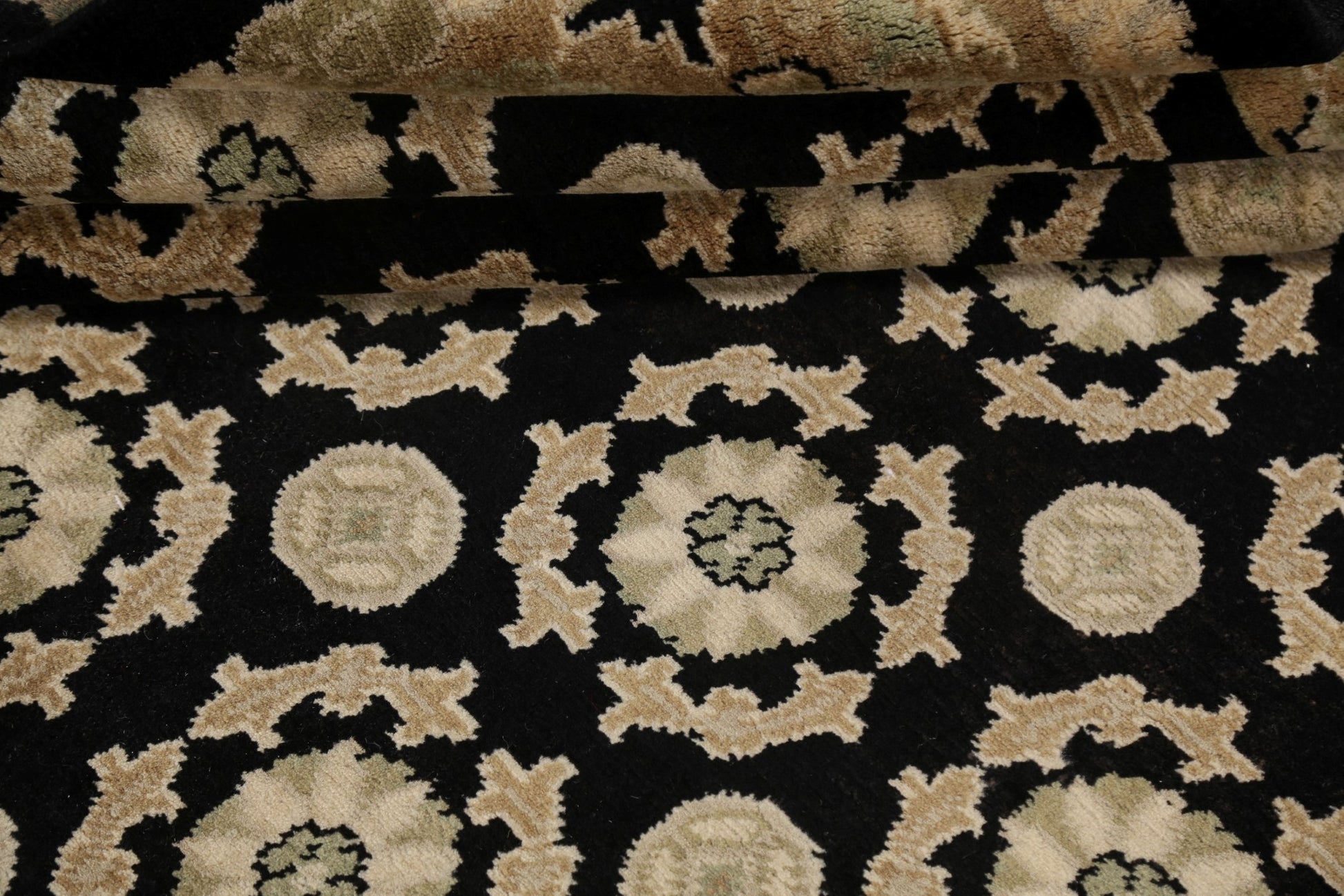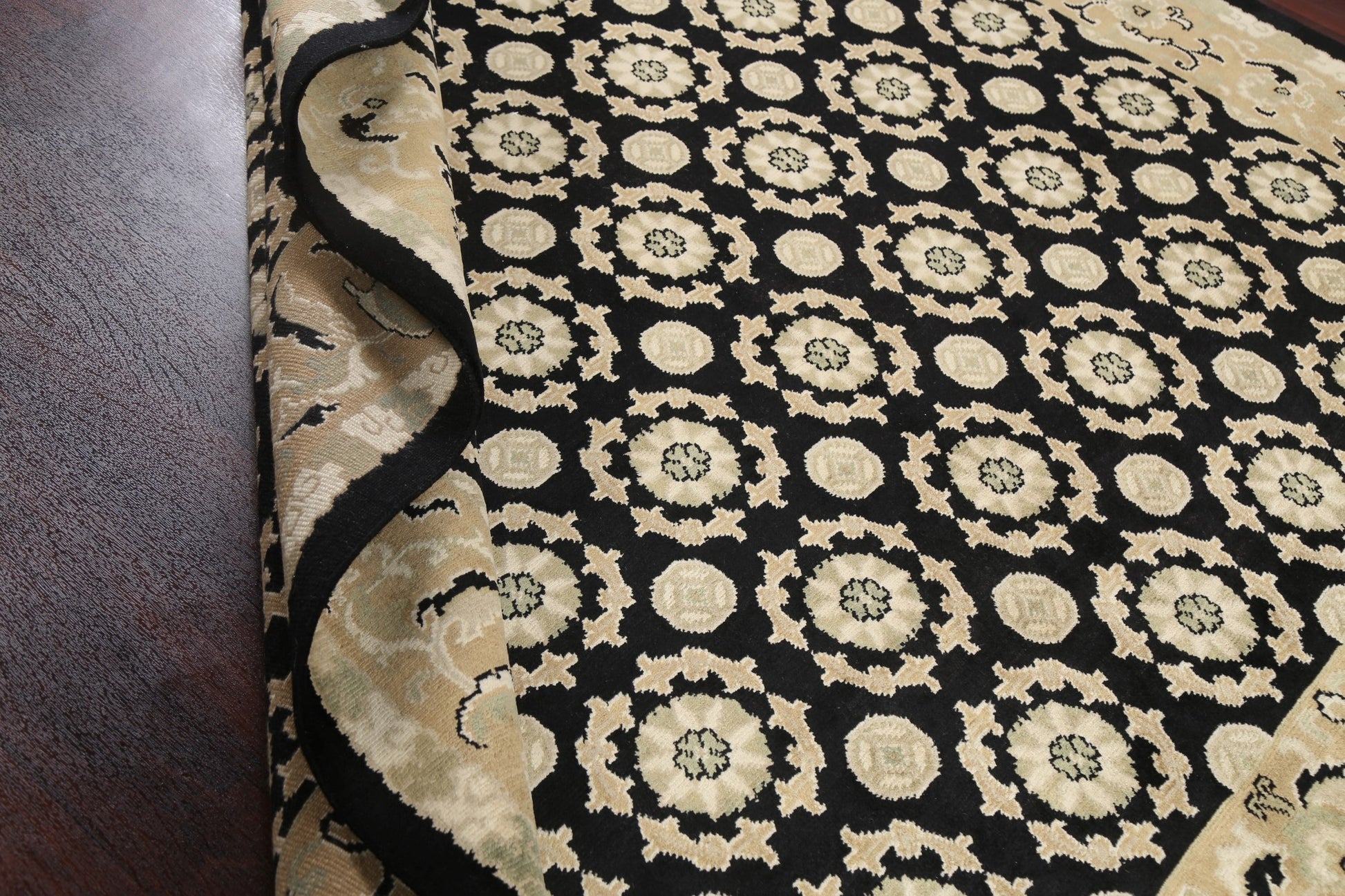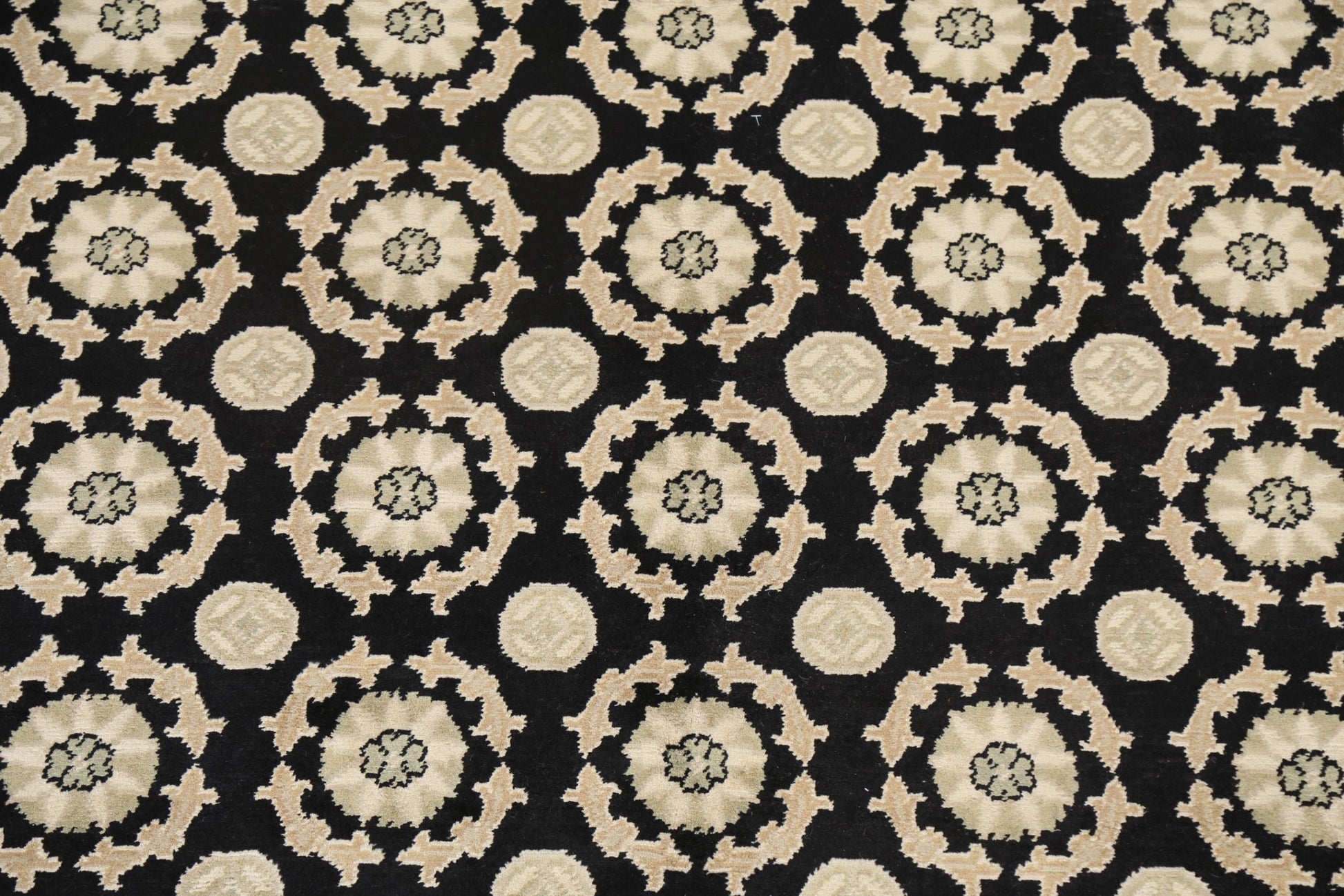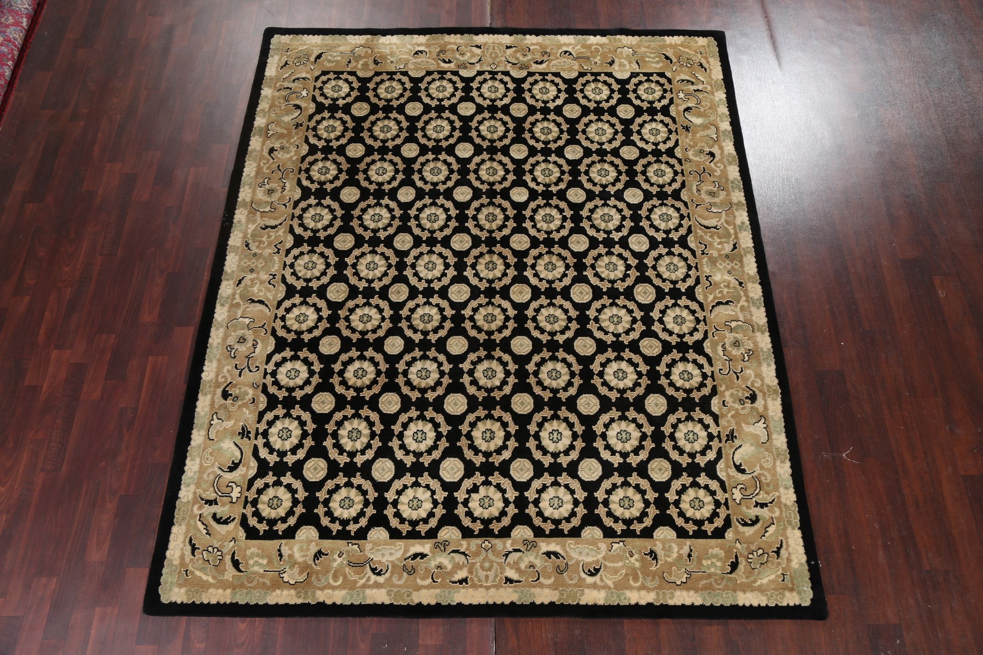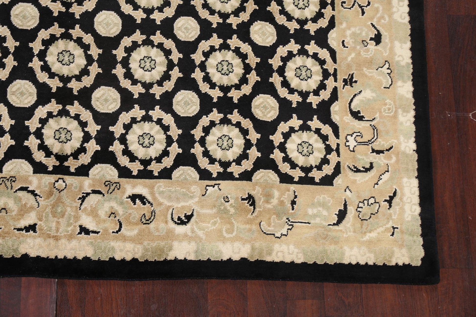 A Beautiful Genuine Nepal Nepalese rug is Hand Knotted by skillful weavers in Nepal with 100% Wool Material. This rug is in New, First Quality condition. dimensions are 9' 8'' X 8' 2'' in foot and 295 X 249 in centimeter. the primary color is Black.