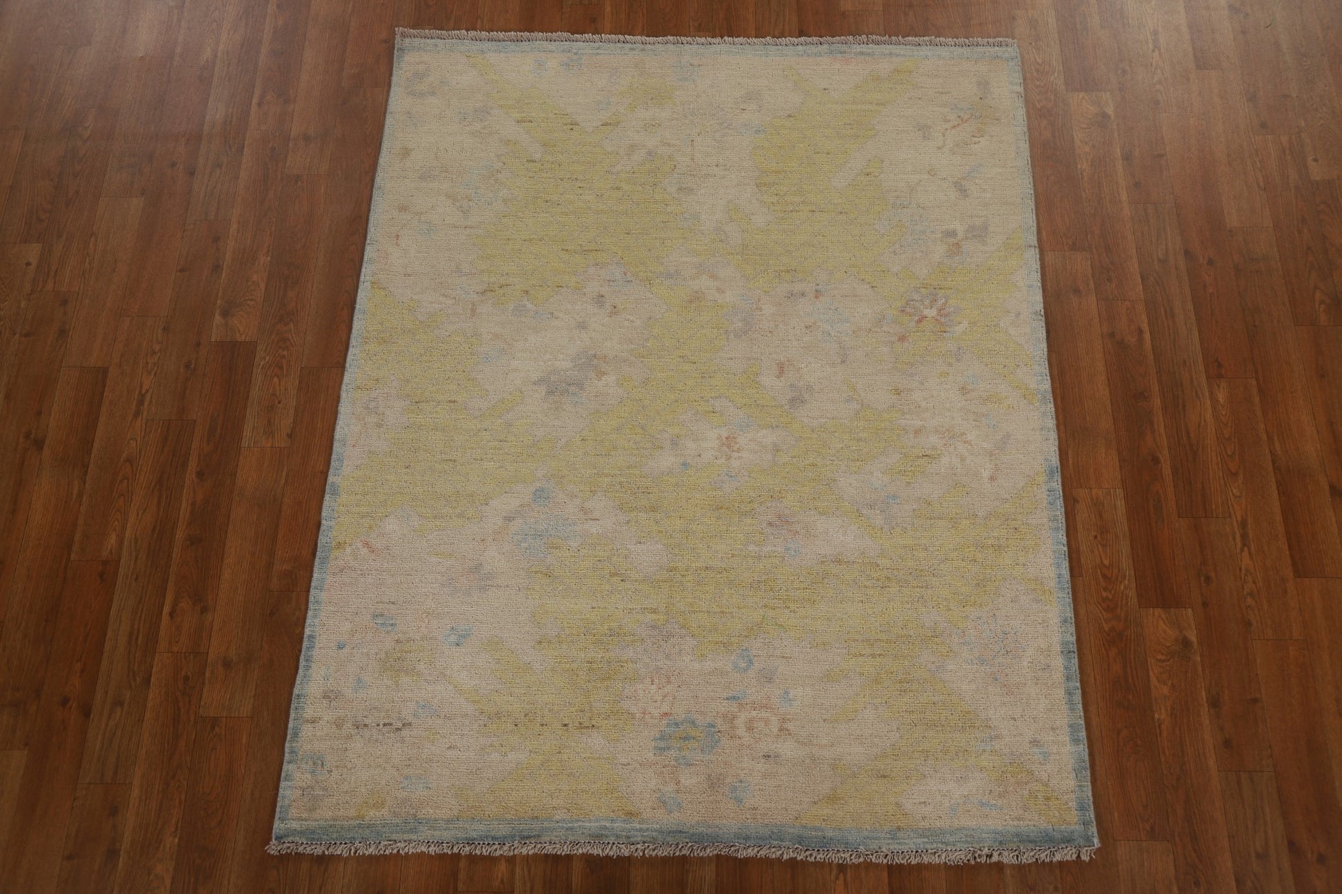 Vegetable Dye Wool Oushak Turkish Area Rug 4x5