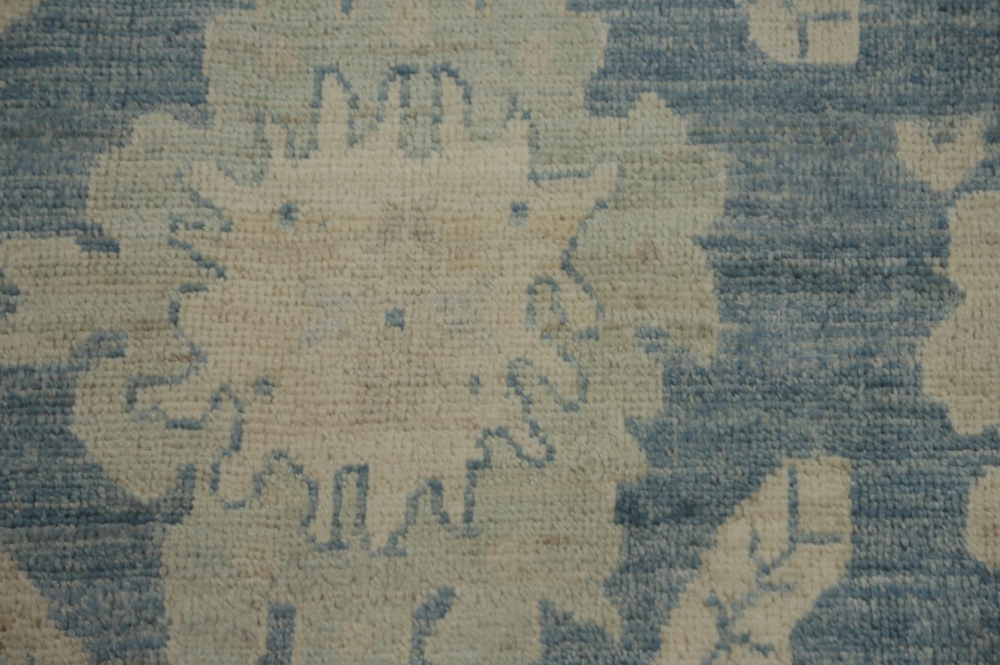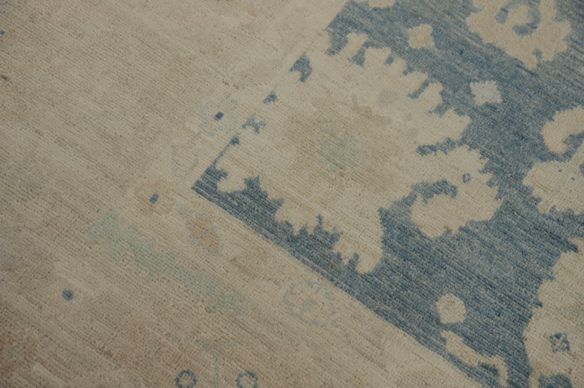 A Beautiful Genuine Turkey Oushak rug is Hand Knotted by skillful weavers in Turkey with 100% Wool Material. This rug is in New, First Quality condition. dimensions are 9' 0'' X 6' 2'' in foot and 274 X 188 in centimeter. the primary color is Navy Blue & Blues.