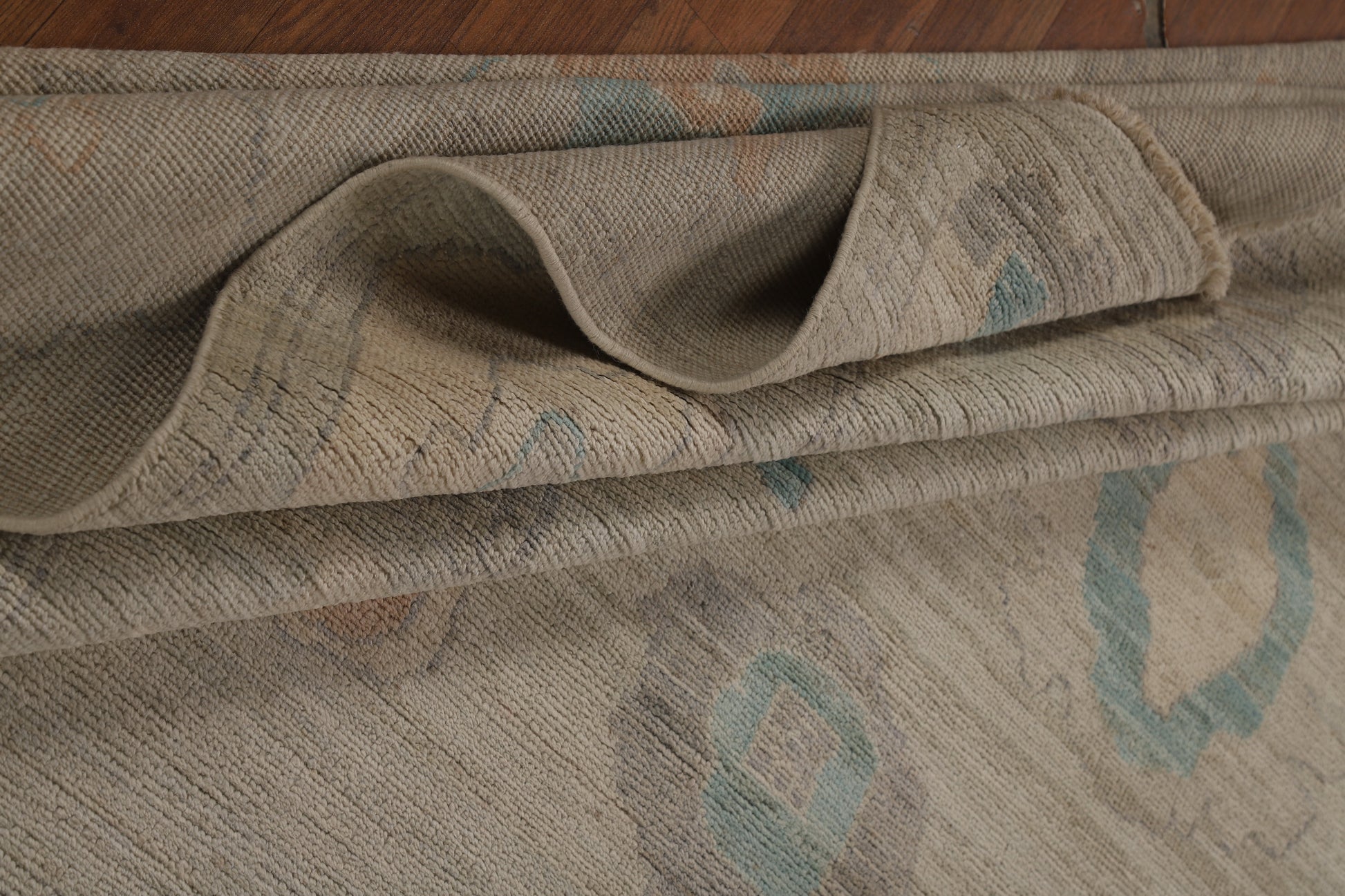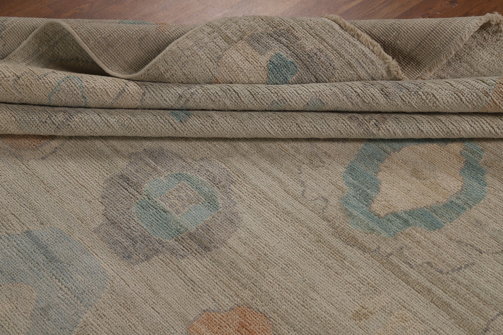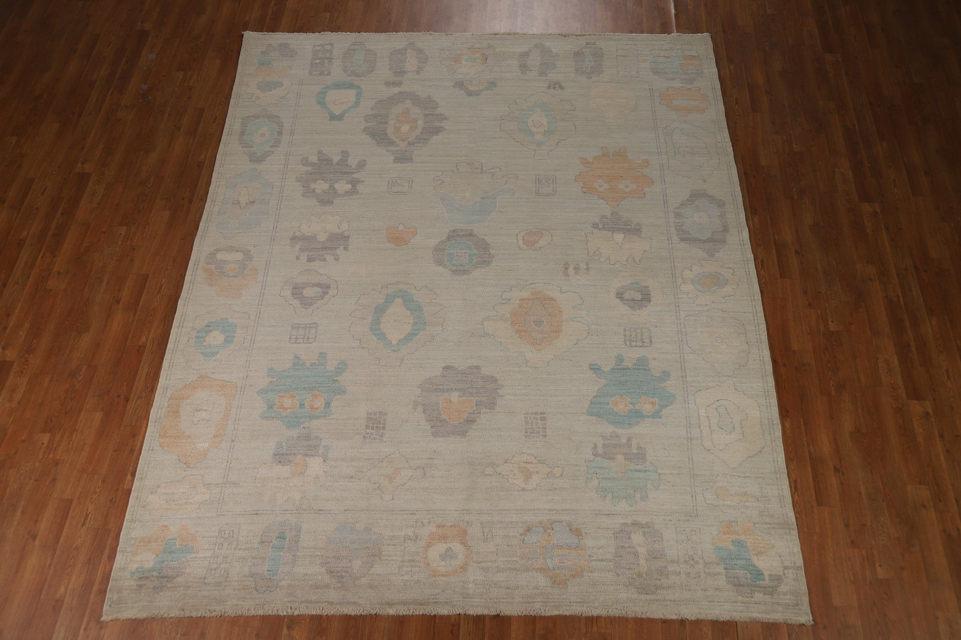 A Beautiful Genuine Turkey Oushak rug is Hand Knotted by skillful weavers in Turkey with 100% Wool Material. This rug is in New, First Quality condition. dimensions are 9' 9'' X 7' 11'' in foot and 297 X 241 in centimeter. the primary color is Beige & Ivories.
