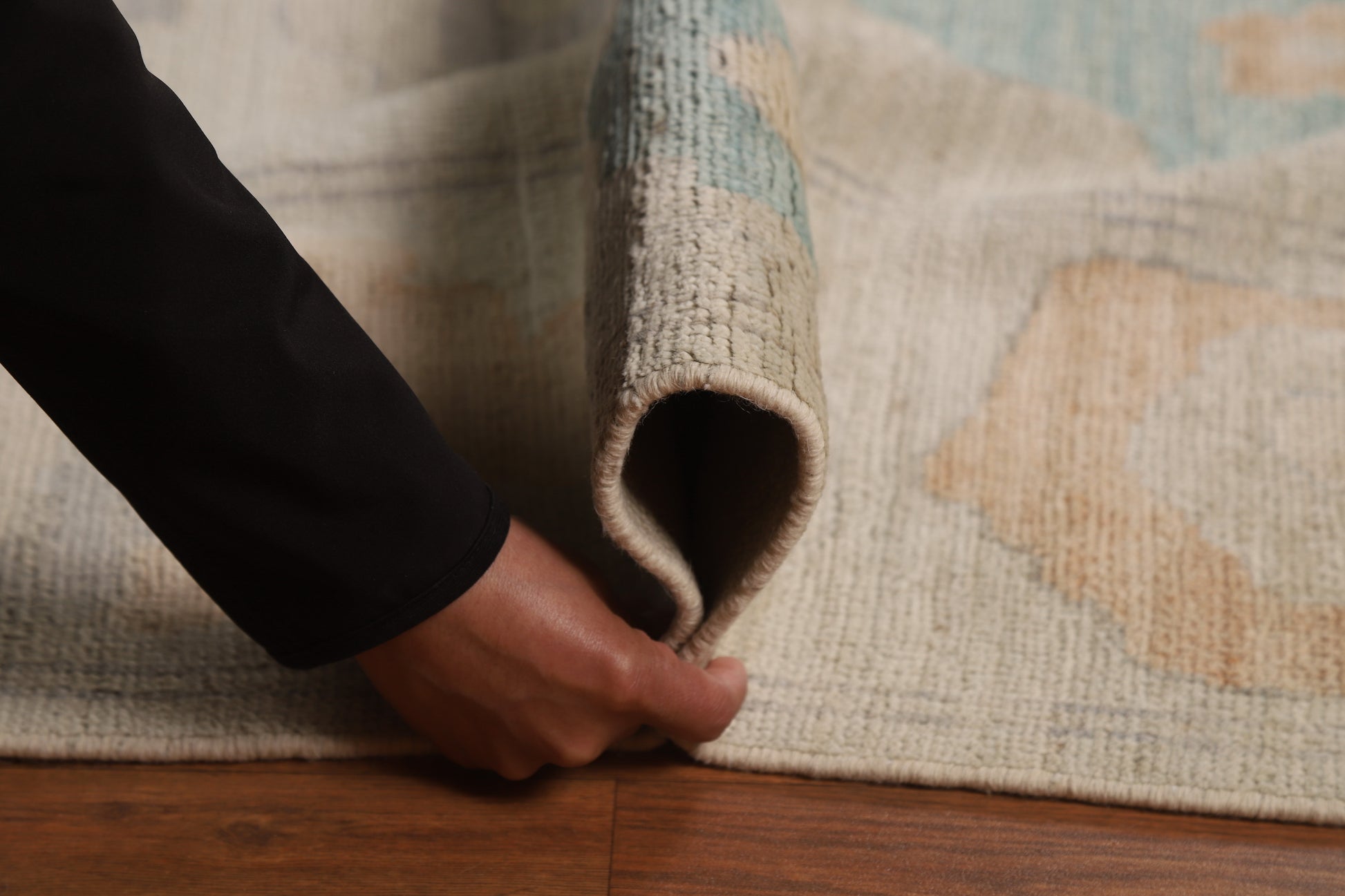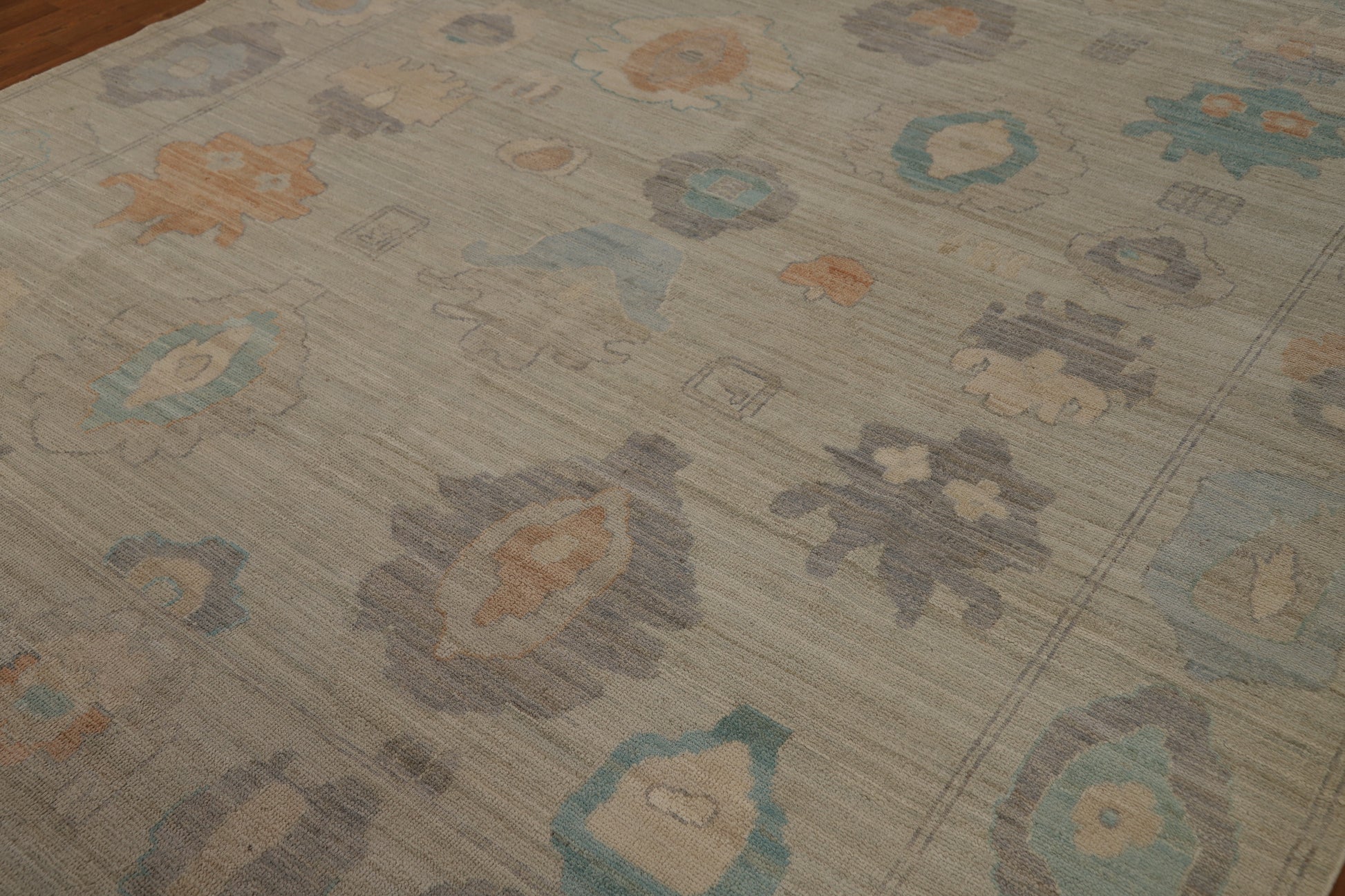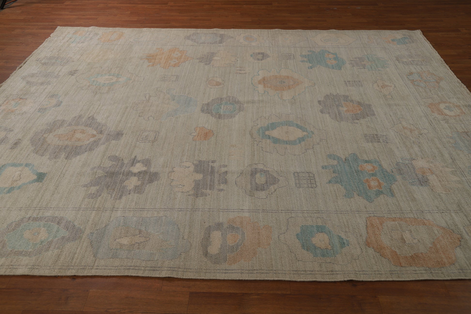 A Beautiful Genuine Turkey Oushak rug is Hand Knotted by skillful weavers in Turkey with 100% Wool Material. This rug is in New, First Quality condition. dimensions are 9' 9'' X 7' 11'' in foot and 297 X 241 in centimeter. the primary color is Beige & Ivories.