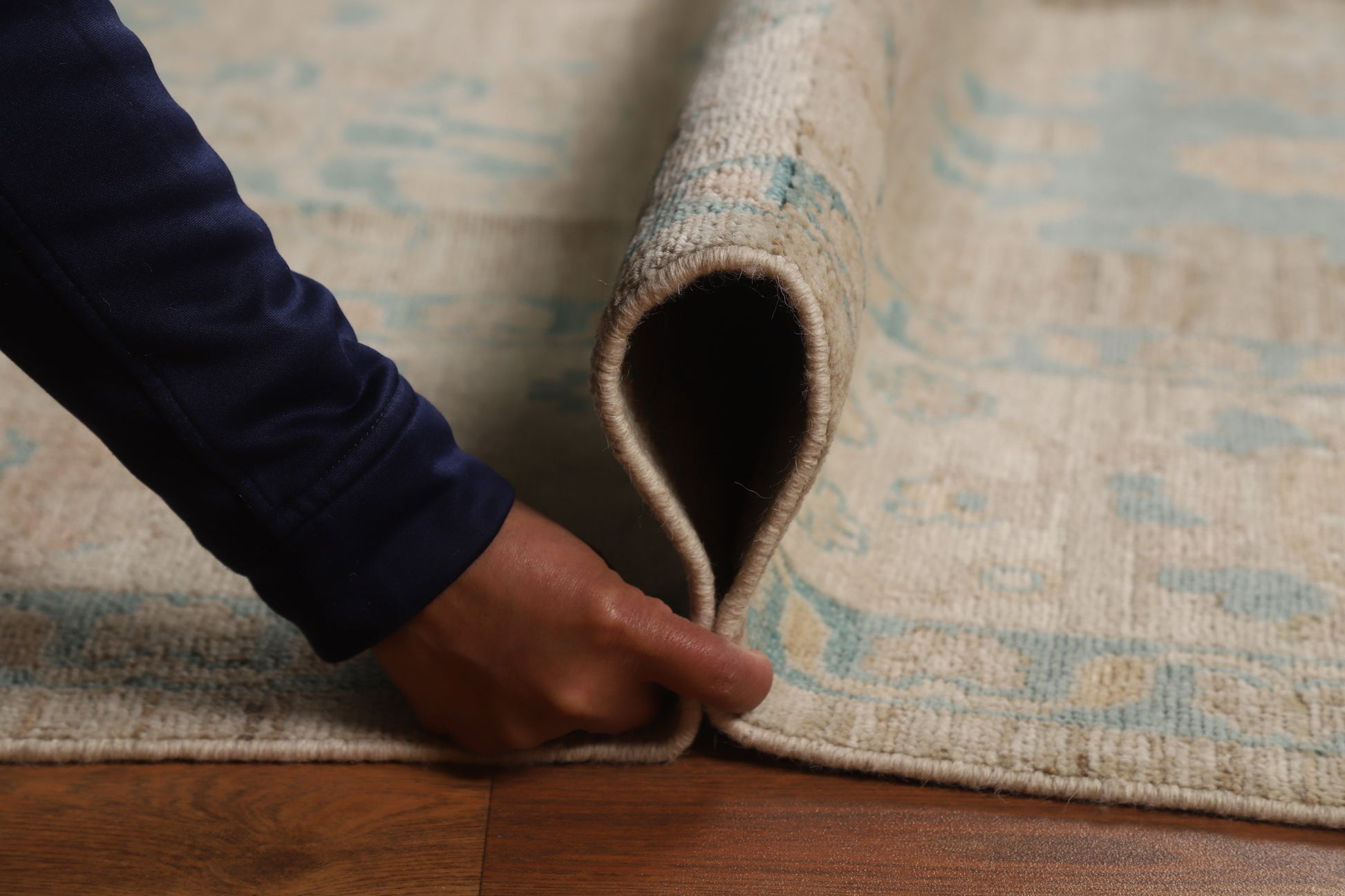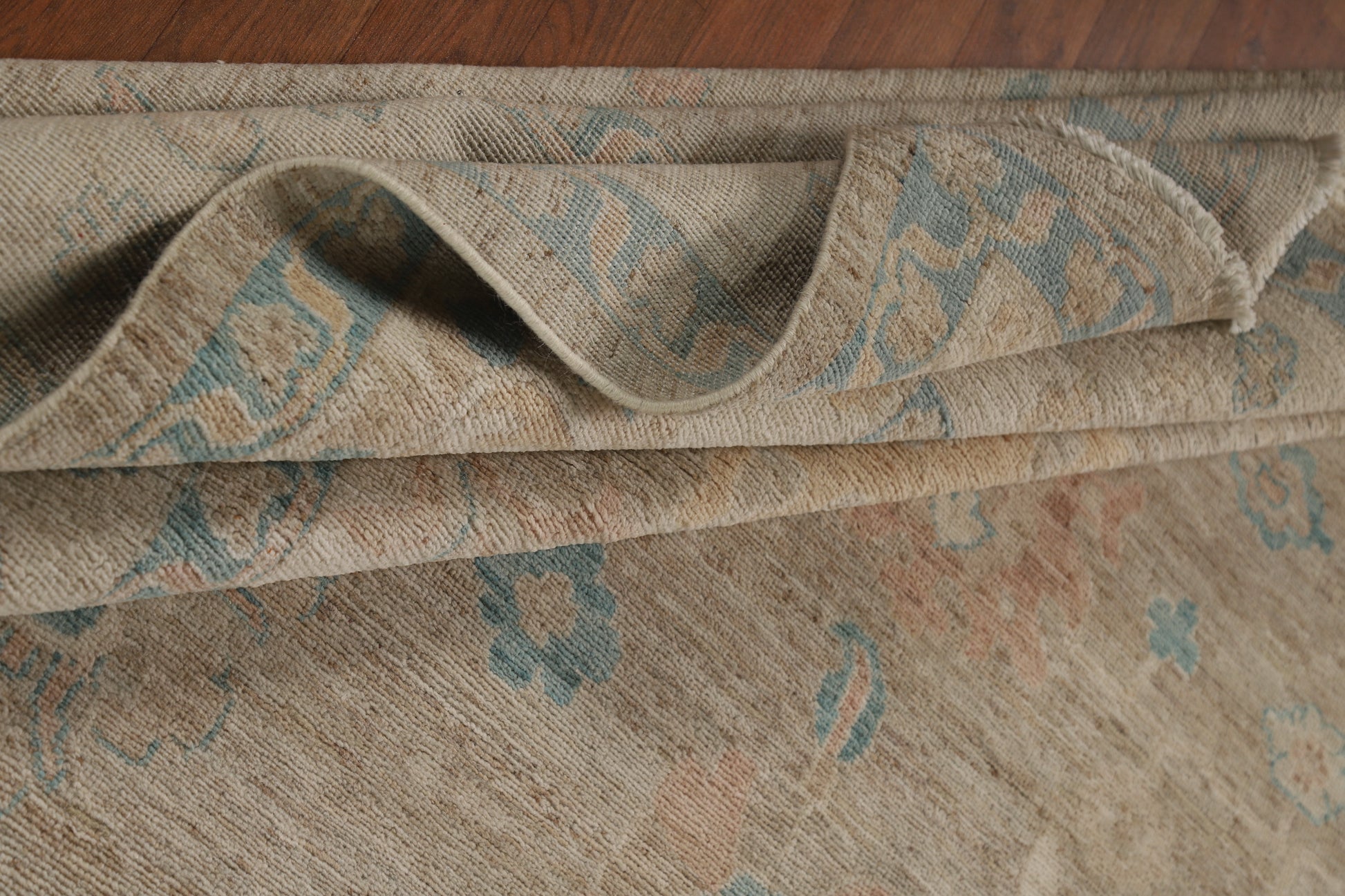 A Beautiful Genuine Turkey Oushak rug is Hand Knotted by skillful weavers in Turkey with 100% Wool Material. This rug is in New, First Quality condition. dimensions are 9' 7'' X 7' 11'' in foot and 292 X 241 in centimeter. the primary color is Beige & Ivories.