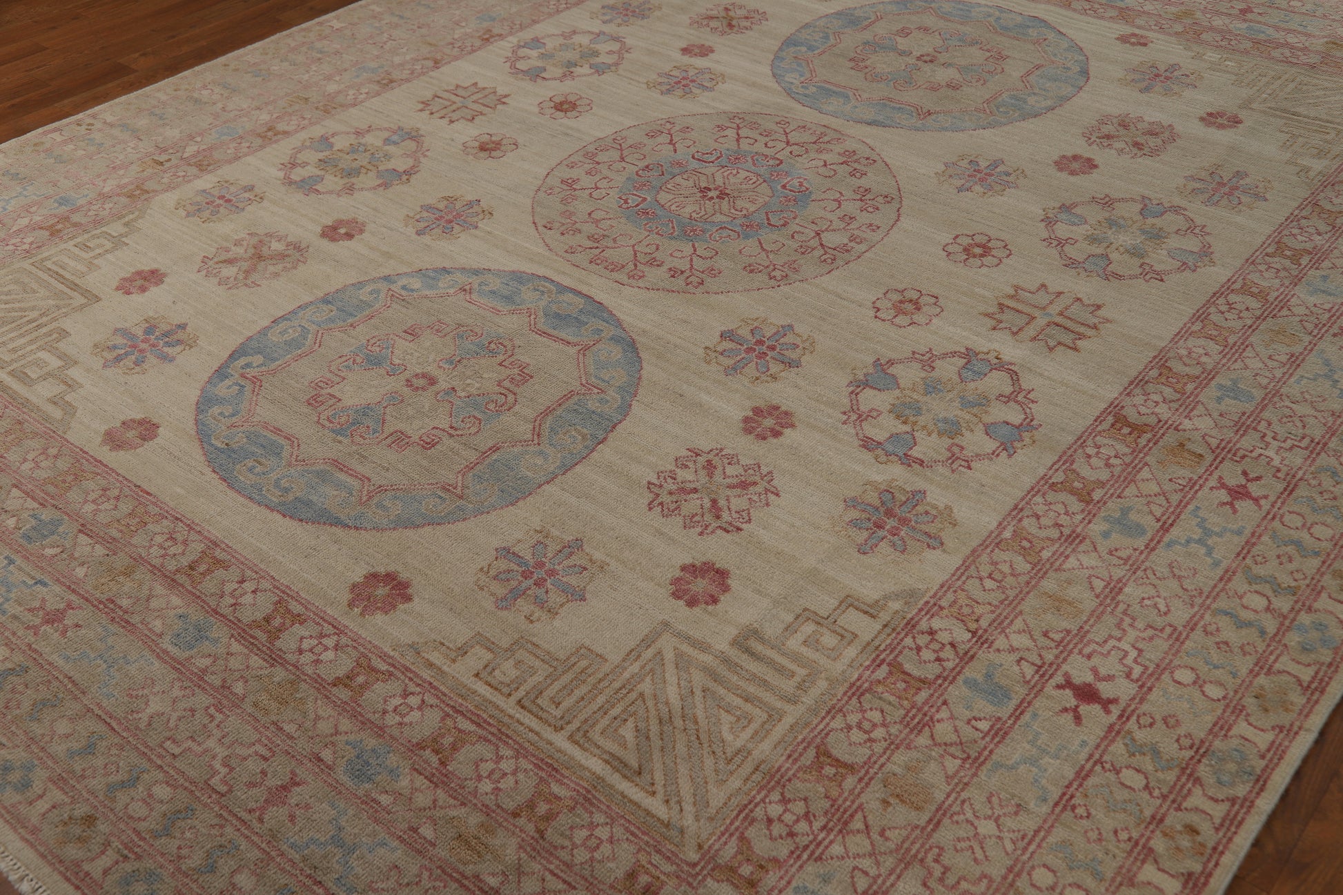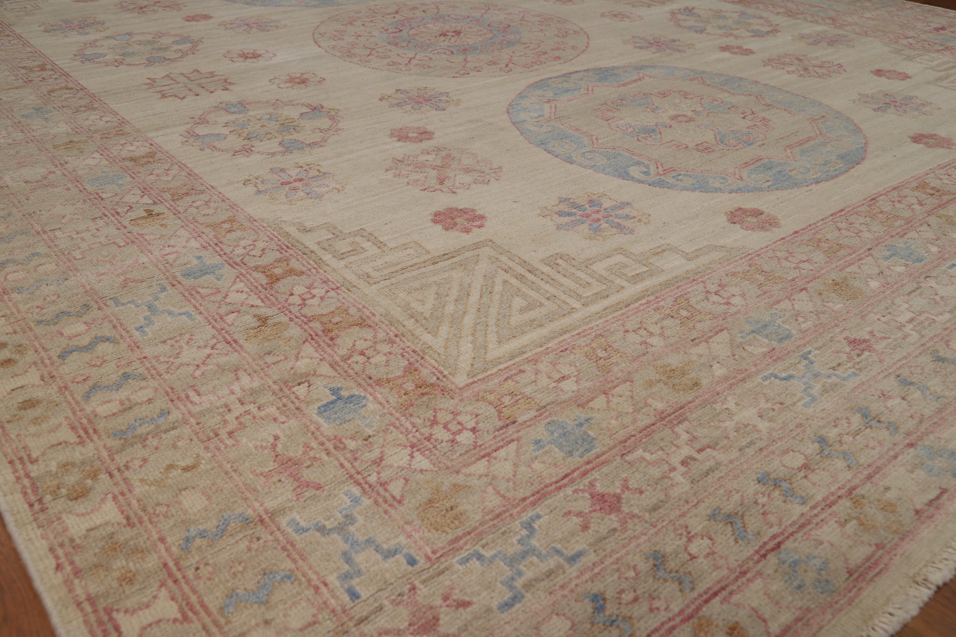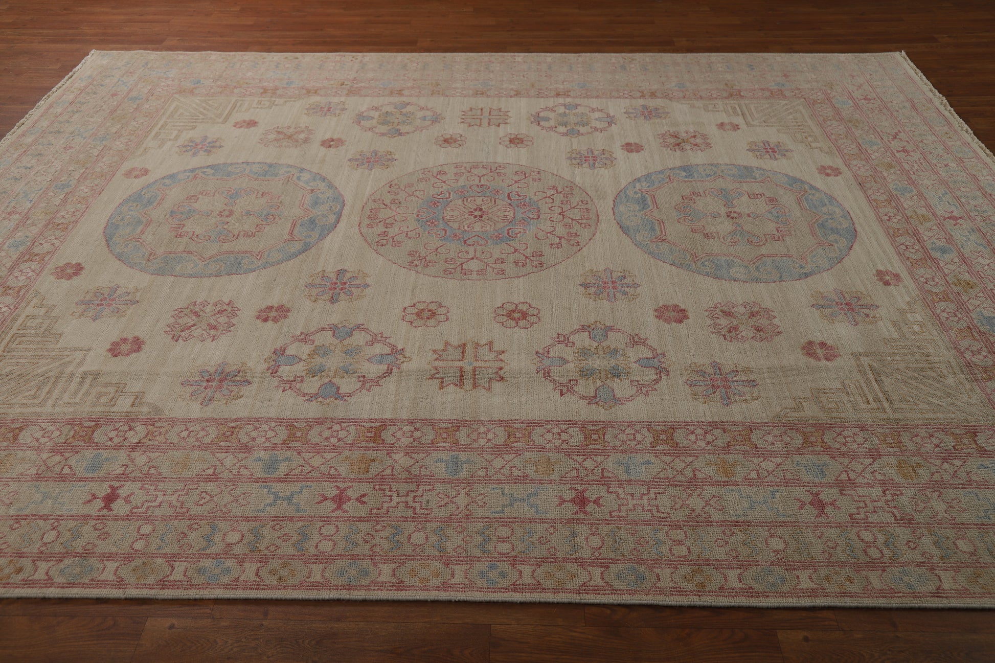 A Beautiful Genuine Turkey Oushak rug is Hand Knotted by skillful weavers in Turkey with 100% Wool Material. This rug is in New, First Quality condition. dimensions are 9' 9'' X 8' 1'' in foot and 297 X 246 in centimeter. the primary color is Beige & Ivories.