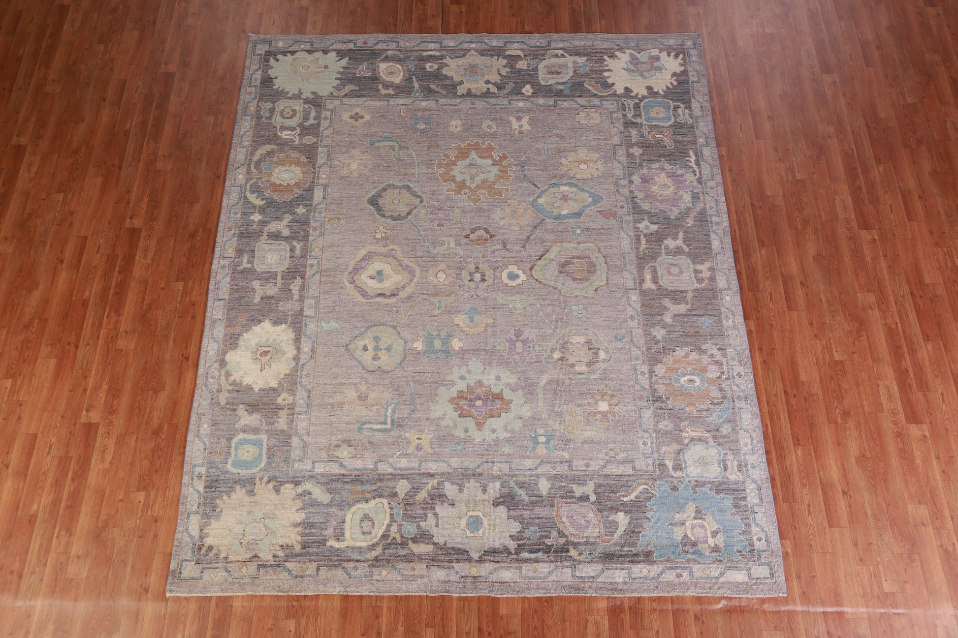A Beautiful Genuine Turkey Oushak rug is Hand Knotted by skillful weavers in Turkey with 100% Wool Material. This rug is in New, First Quality condition. dimensions are 9' 9'' X 8' 1'' in foot and 297 X 246 in centimeter. the primary color is Greys & Charcoal.