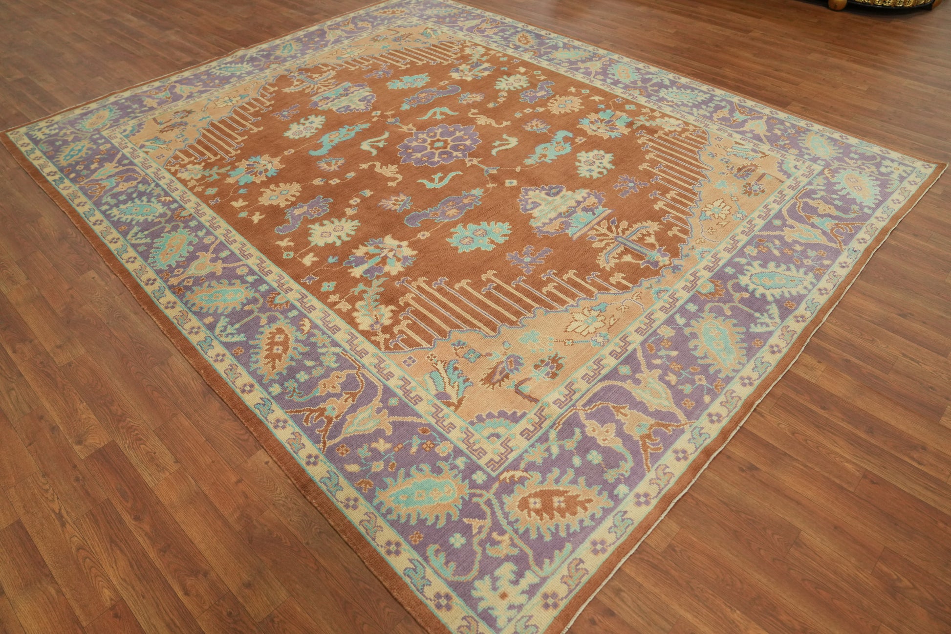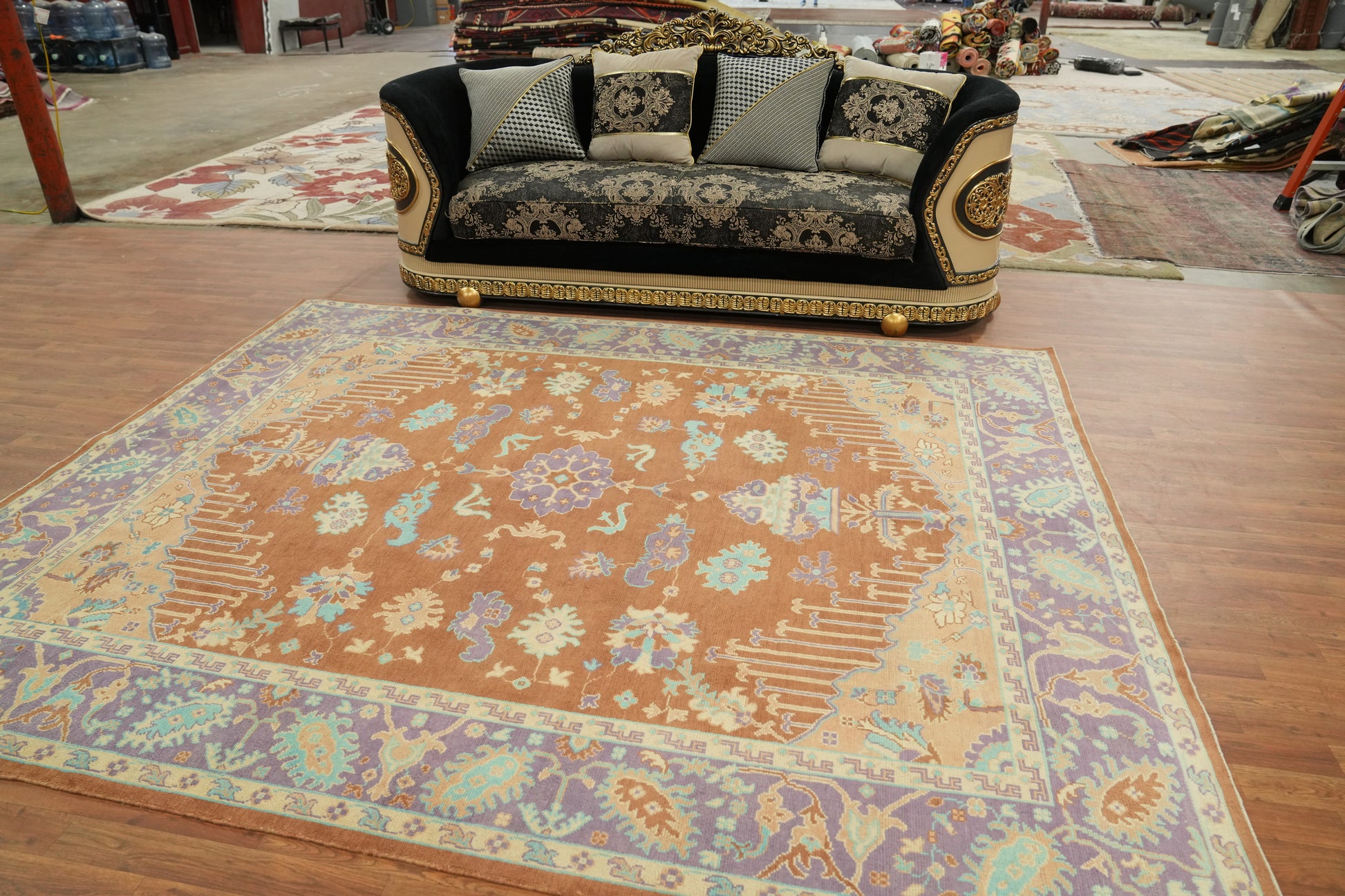 A Beautiful Genuine Turkey Oushak rug is Hand Knotted by skillful weavers in Turkey with 100% Wool Material. This rug is in New, First Quality condition. dimensions are 9' 10'' X 8' 1'' in foot and 300 X 246 in centimeter. the primary color is Oranges & Rust.