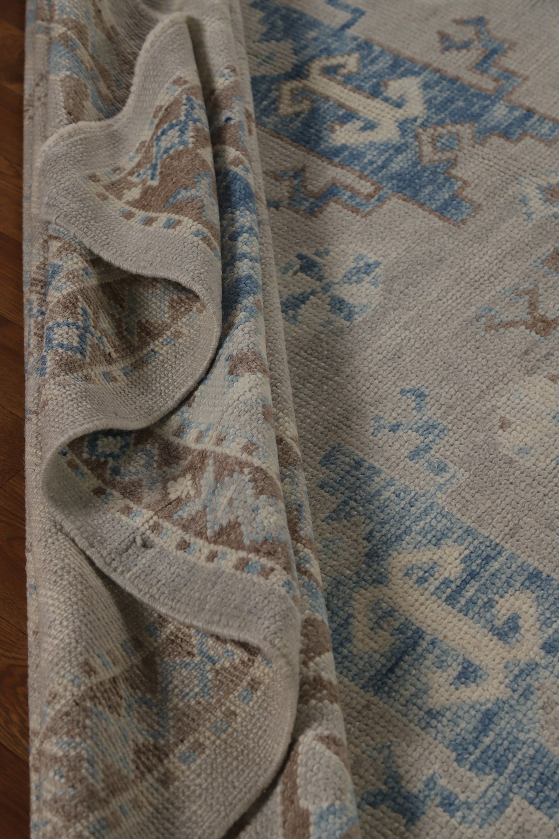 A Beautiful Genuine Turkey Oushak rug is Hand Knotted by skillful weavers in Turkey with 100% Wool Material. This rug is in New, First Quality condition. dimensions are 10' 3'' X 8' 9'' in foot and 312 X 267 in centimeter. the primary color is Greys & Charcoal.