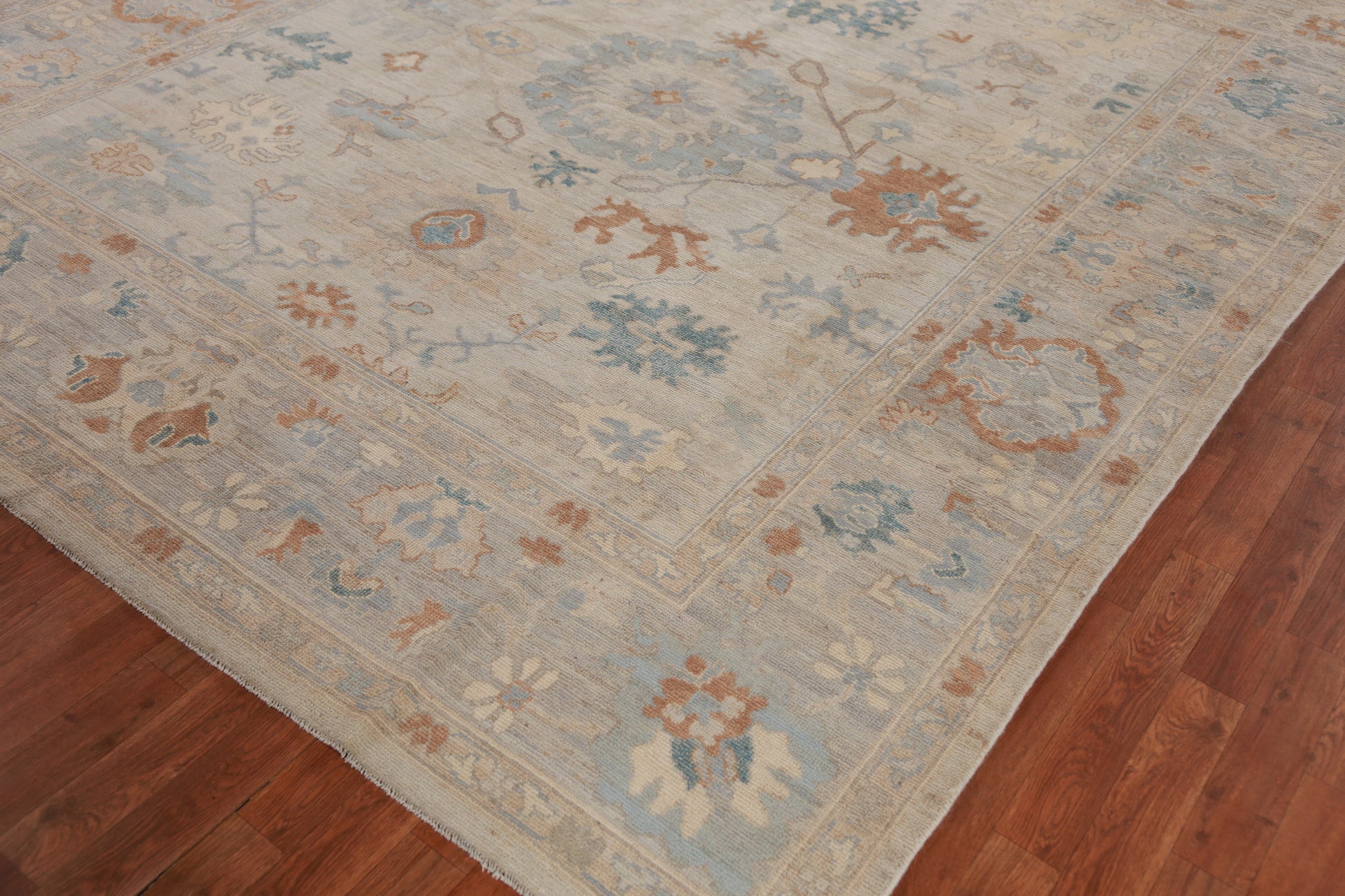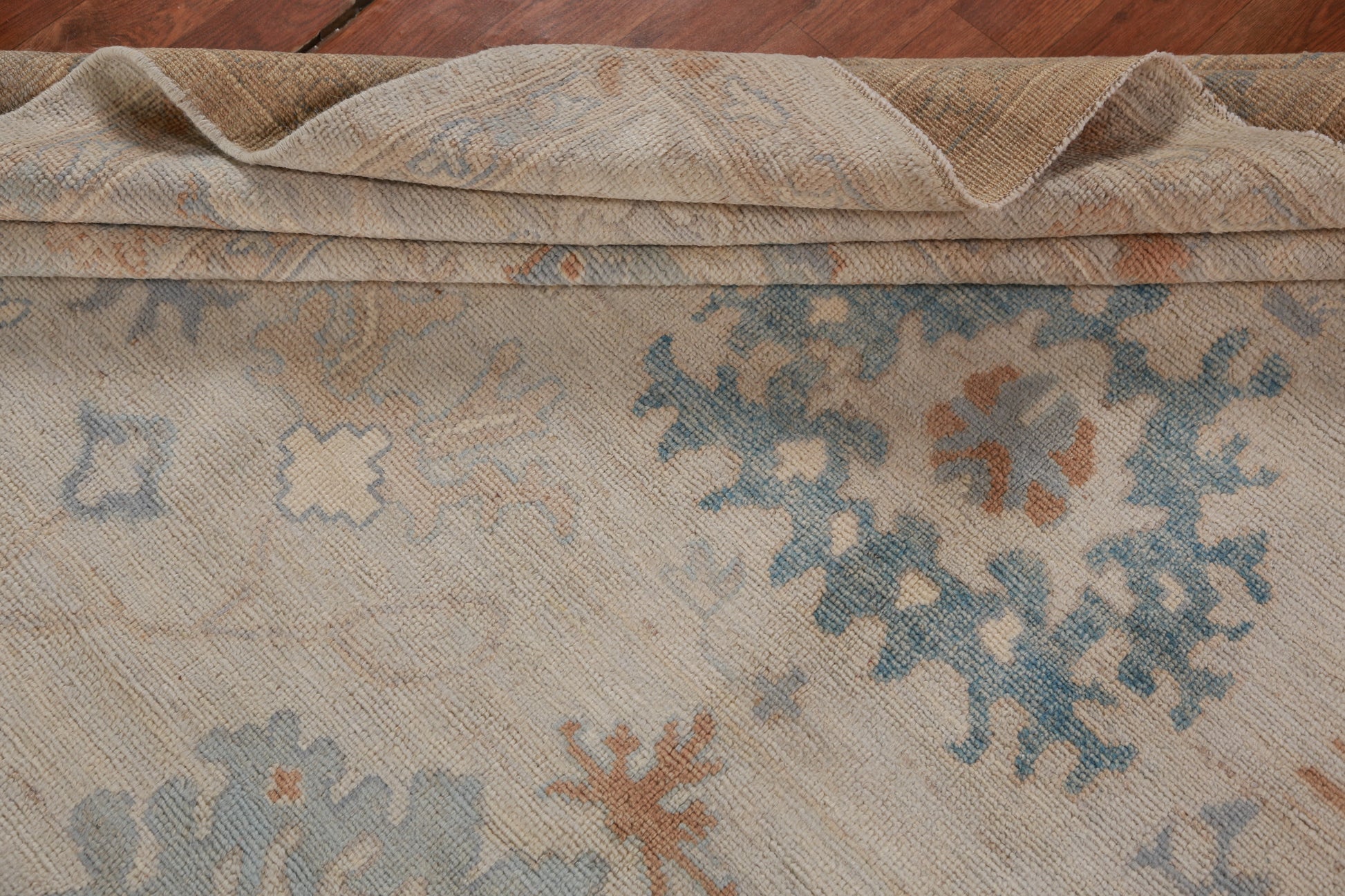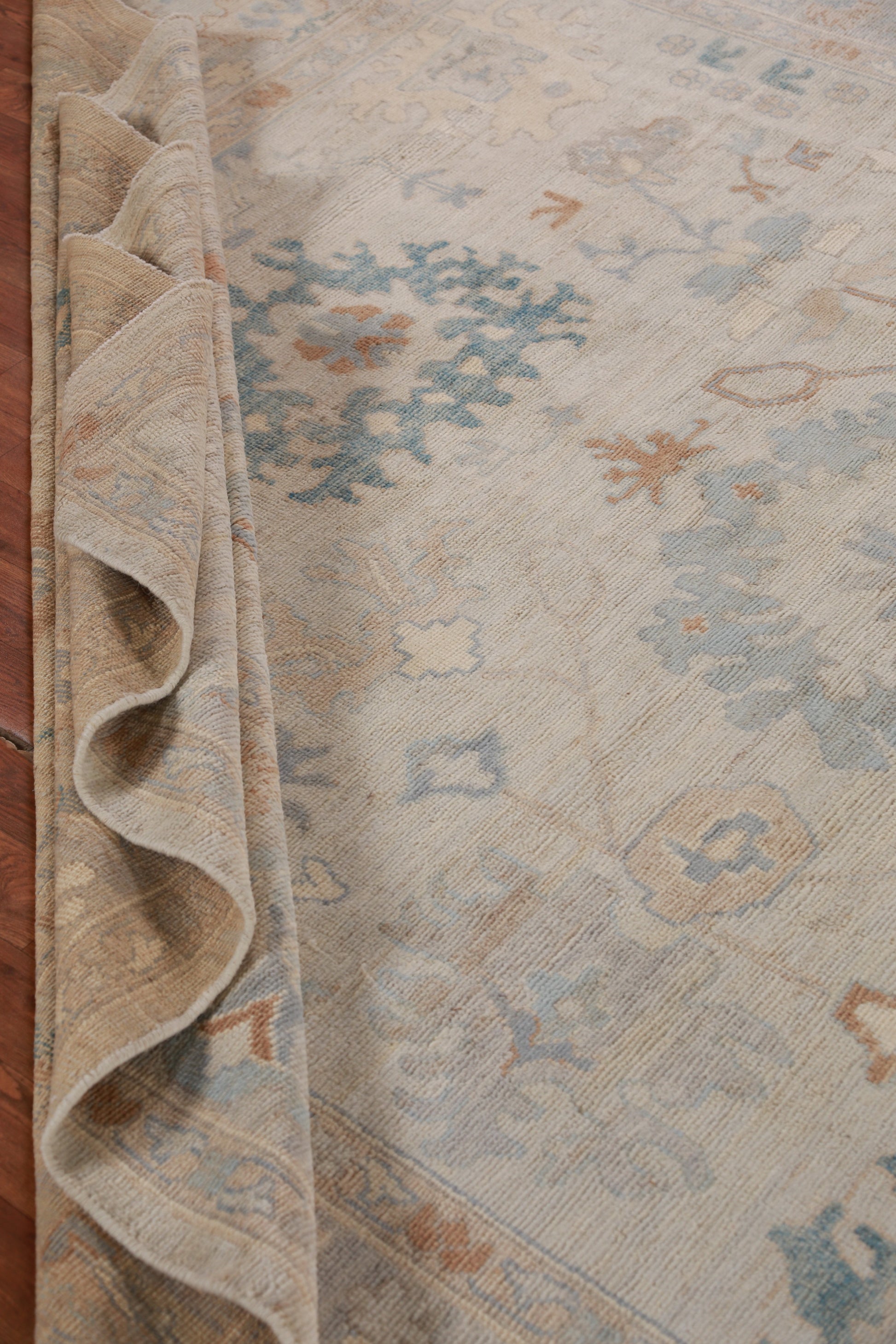 A Beautiful Genuine Turkey Oushak rug is Hand Knotted by skillful weavers in Turkey with 100% Wool Material. This rug is in New, First Quality condition. dimensions are 9' 10'' X 8' 1'' in foot and 300 X 246 in centimeter. the primary color is Beige & Ivories.