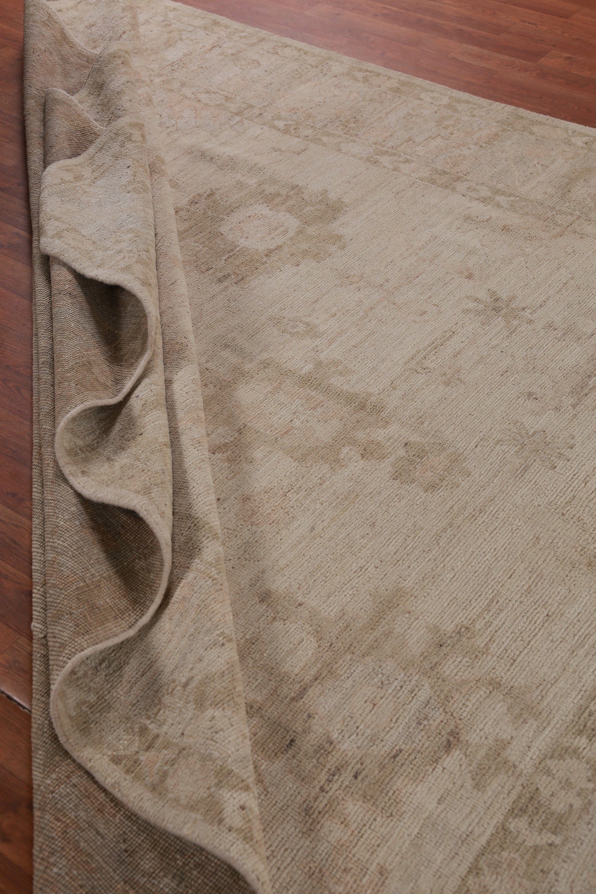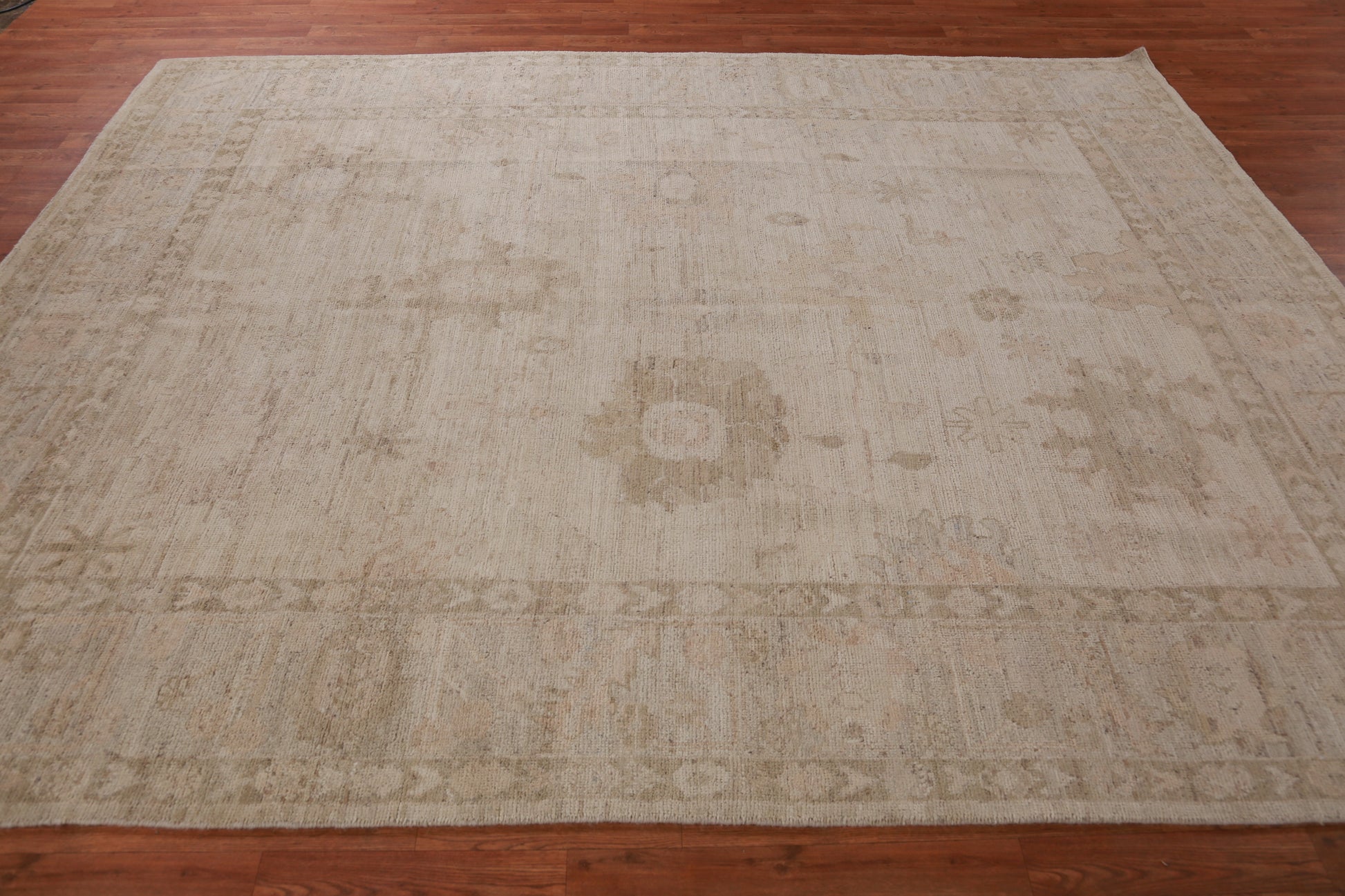 A Beautiful Genuine Turkey Oushak rug is Hand Knotted by skillful weavers in Turkey with 100% Wool Material. This rug is in New, First Quality condition. dimensions are 9' 10'' X 7' 8'' in foot and 300 X 234 in centimeter. the primary color is Beige & Ivories.