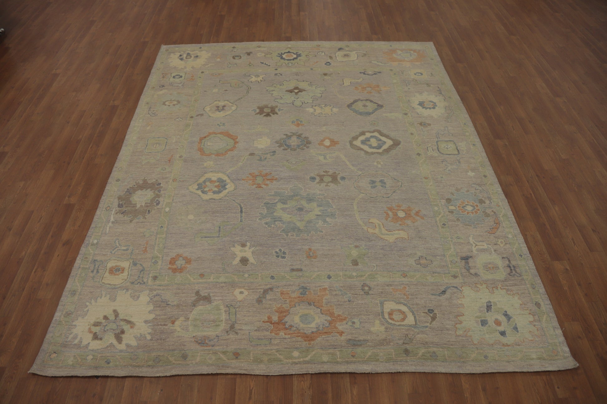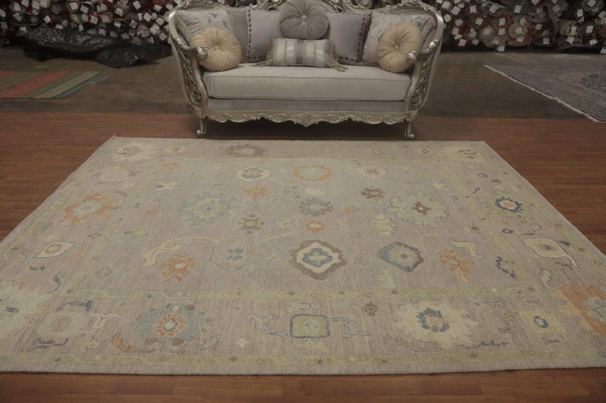A Beautiful Genuine Turkey Oushak rug is Hand Knotted by skillful weavers in Turkey with 100% Wool Material. This rug is in New, First Quality condition. dimensions are 9' 6'' X 8' 1'' in foot and 290 X 246 in centimeter. the primary color is Purples.