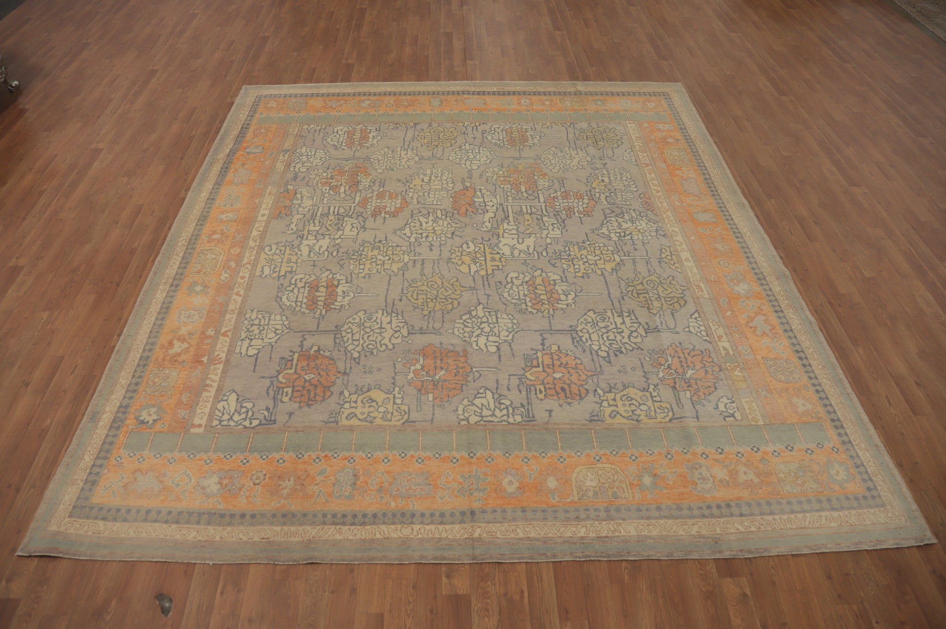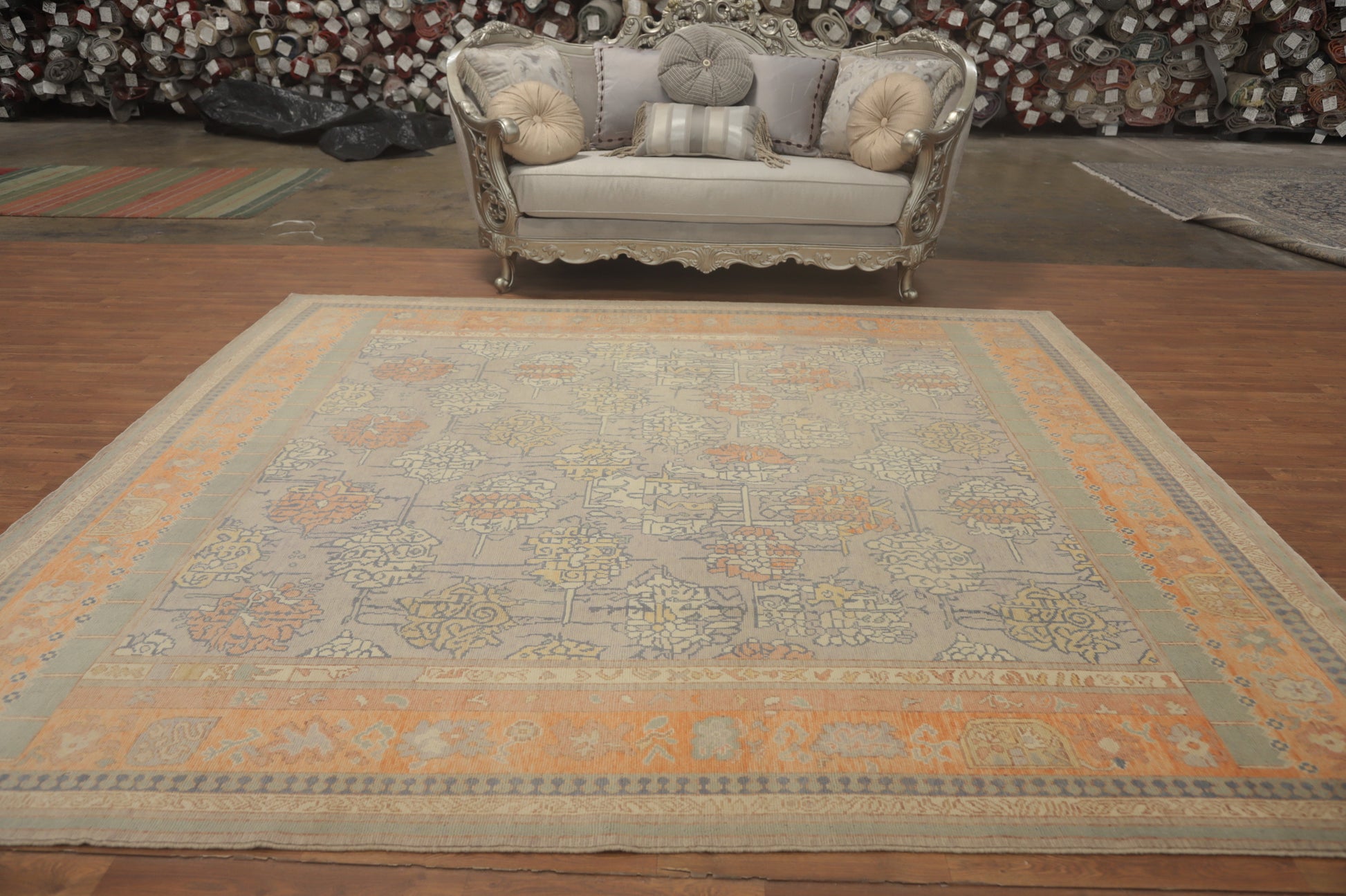 A Beautiful Genuine Turkey Oushak rug is Hand Knotted by skillful weavers in Turkey with 100% Wool Material. This rug is in New, First Quality condition. dimensions are 10' 2'' X 9' 4'' in foot and 310 X 284 in centimeter. the primary color is Greys & Charcoal.