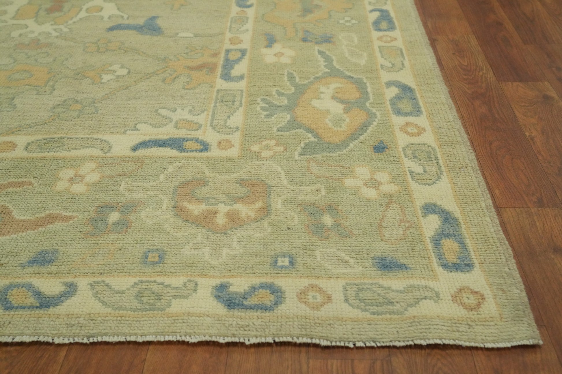 A Beautiful Genuine Turkey Oushak rug is Hand Knotted by skillful weavers in Turkey with 100% Wool Material. This rug is in New, First Quality condition. dimensions are 10' 3'' X 8' 4'' in foot and 312 X 254 in centimeter. the primary color is Green.