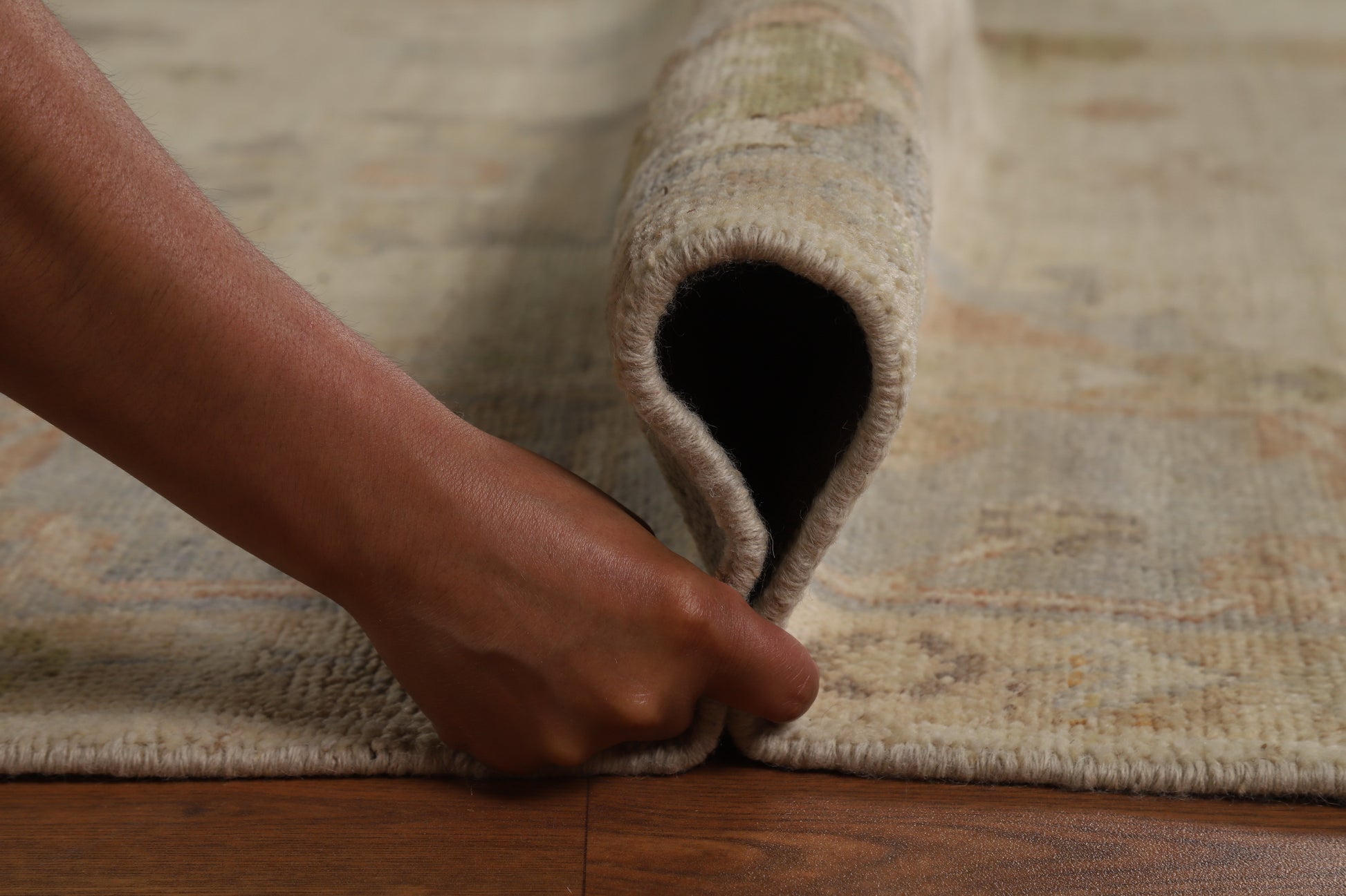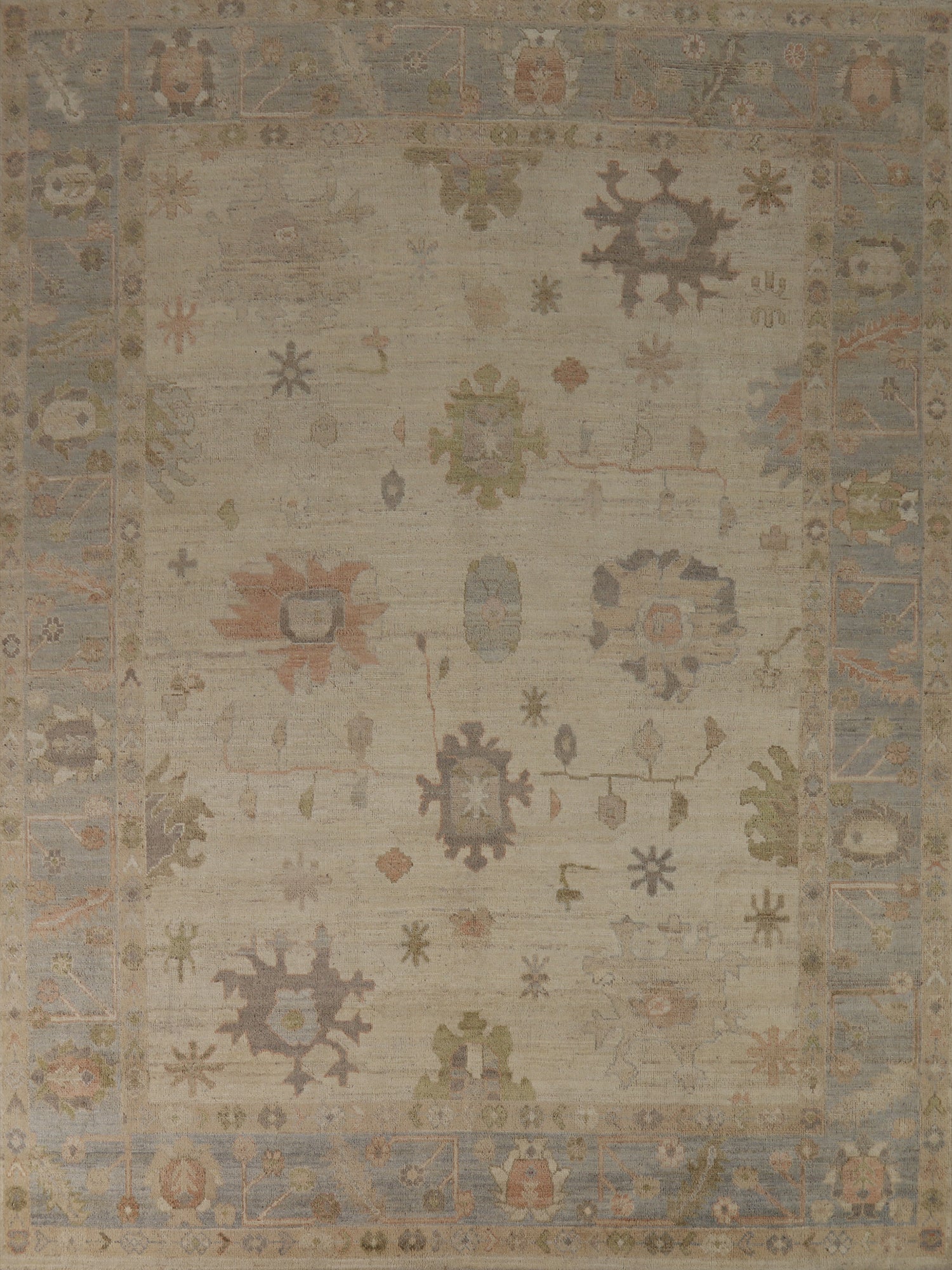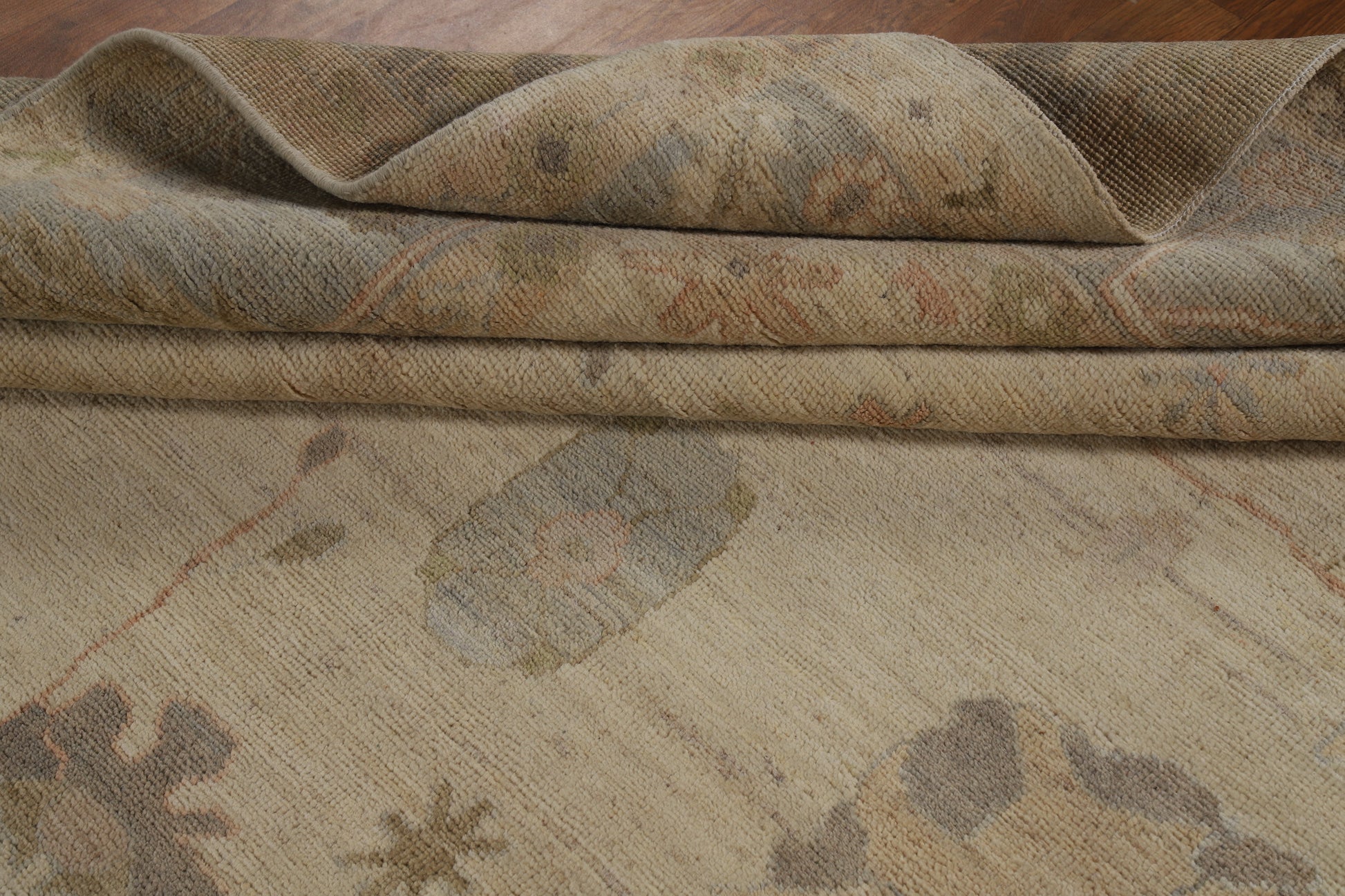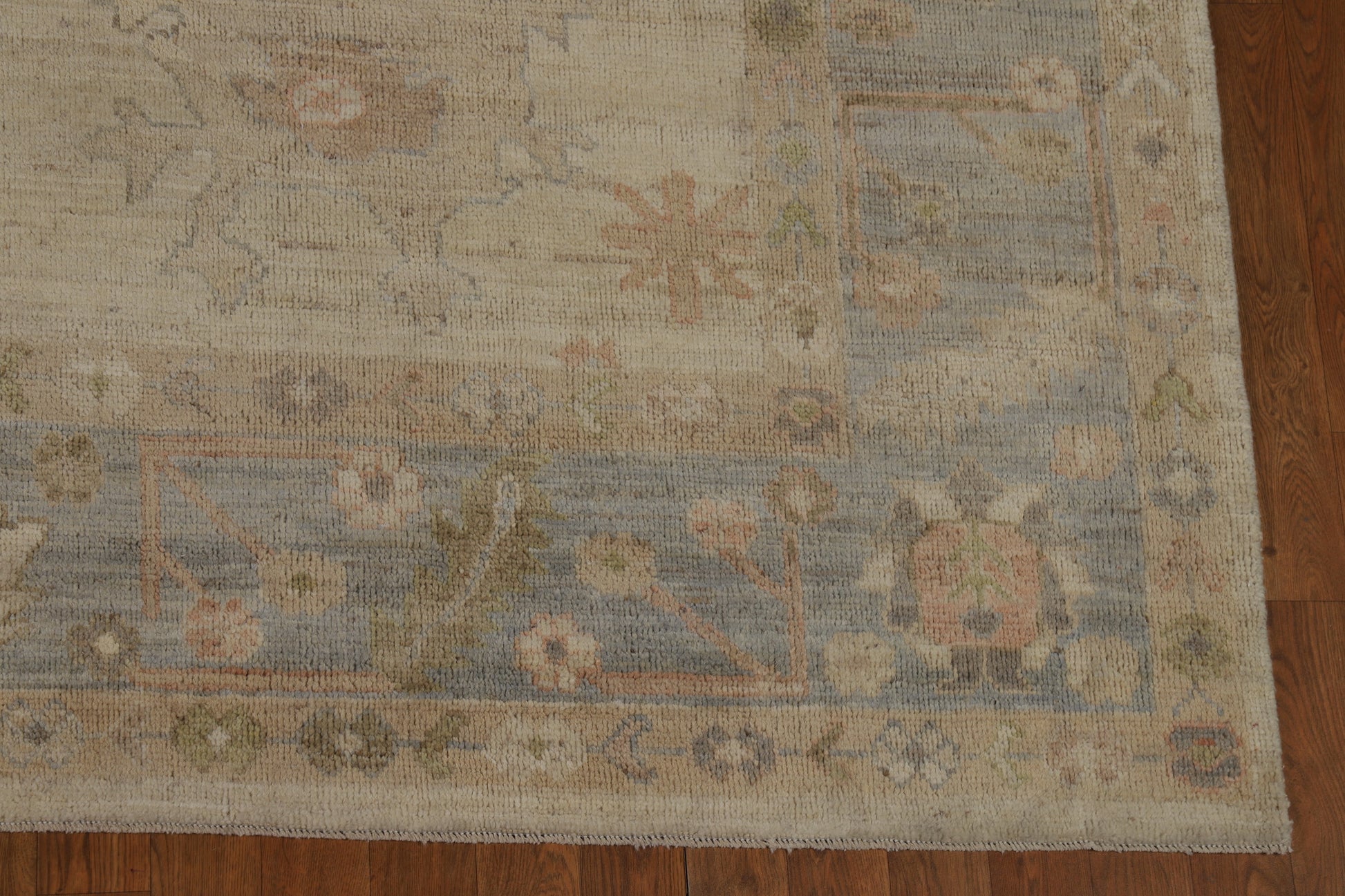 A Beautiful Genuine Turkey Oushak rug is Hand Knotted by skillful weavers in Turkey with 100% Wool Material. This rug is in New, First Quality condition. dimensions are 9' 9'' X 8' 2'' in foot and 297 X 249 in centimeter. the primary color is Beige & Ivories.