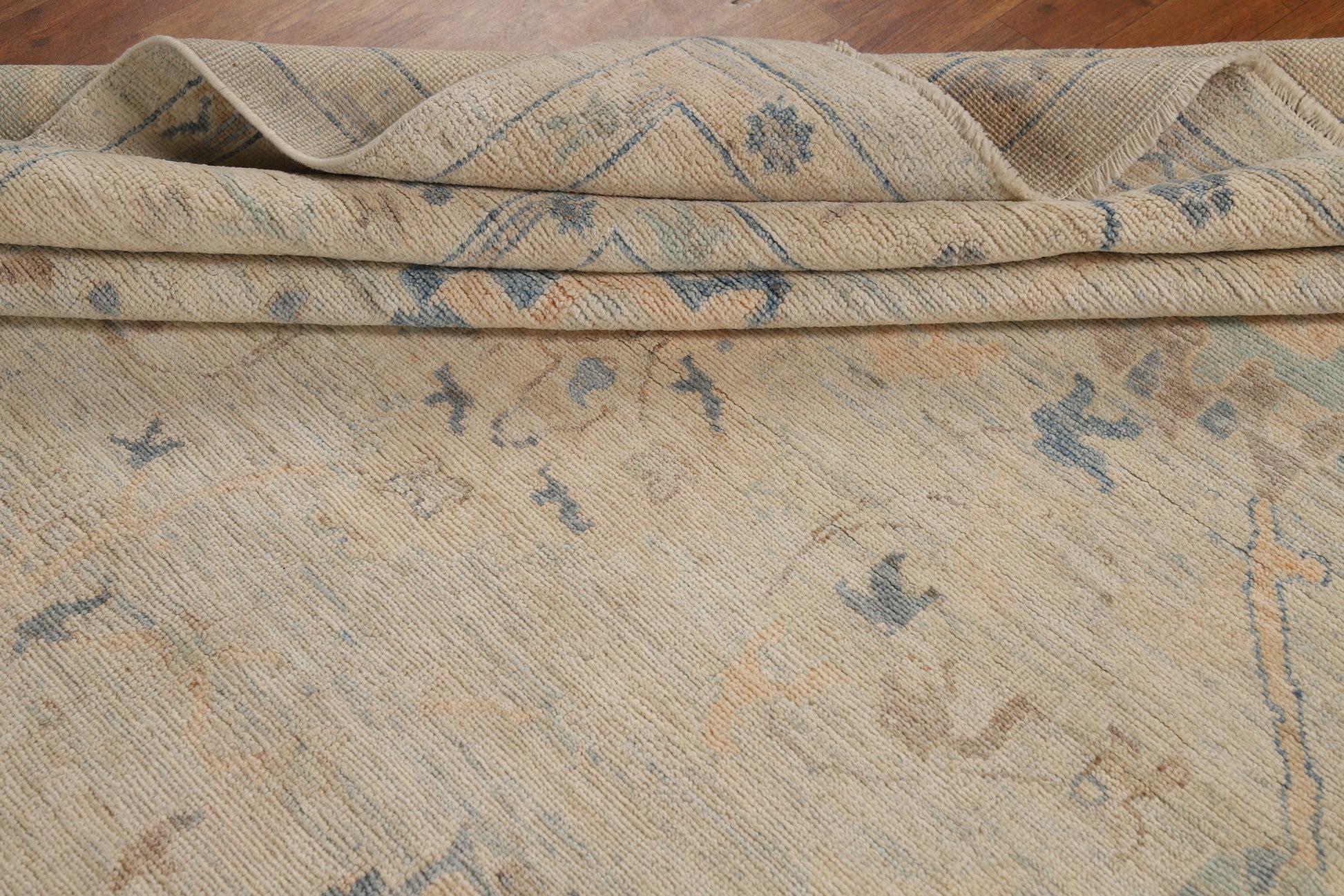 A Beautiful Genuine Turkey Oushak rug is Hand Knotted by skillful weavers in Turkey with 100% Wool Material. This rug is in New, First Quality condition. dimensions are 10' 2'' X 8' 1'' in foot and 310 X 246 in centimeter. the primary color is Beige & Ivories.
