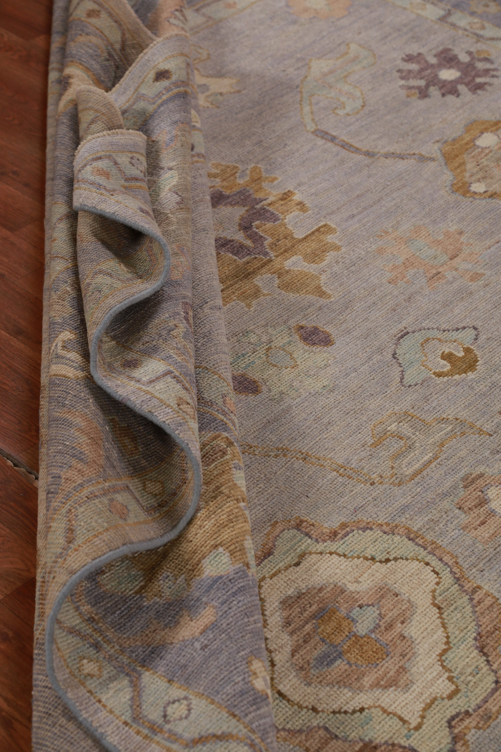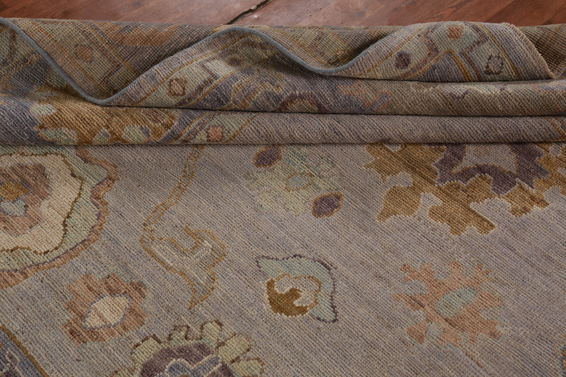 A Beautiful Genuine Turkey Oushak rug is Hand Knotted by skillful weavers in Turkey with 100% Wool Material. This rug is in New, First Quality condition. dimensions are 10' 7'' X 7' 11'' in foot and 323 X 241 in centimeter. the primary color is Greys & Charcoal.