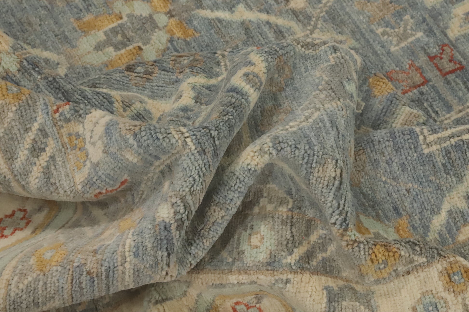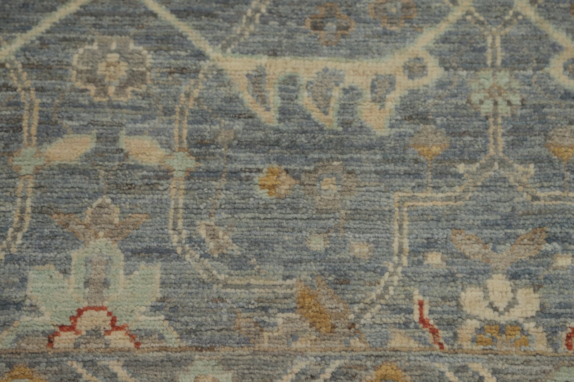 A Beautiful Genuine Turkey Oushak rug is Hand Knotted by skillful weavers in Turkey with 100% Wool Material. This rug is in New, First Quality condition. dimensions are 10' 11'' X 8' 6'' in foot and 333 X 259 in centimeter. the primary color is Navy Blue & Blues.