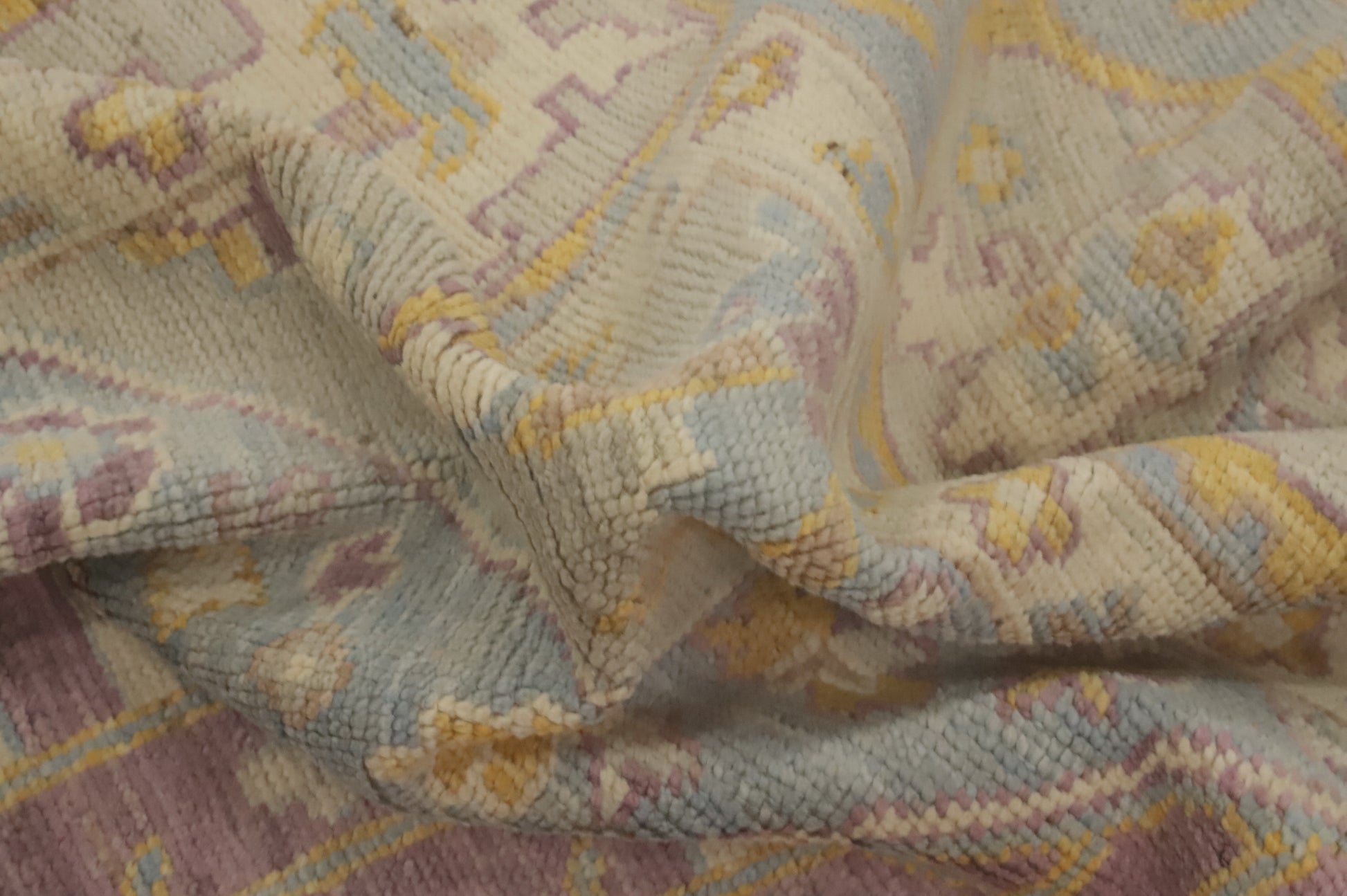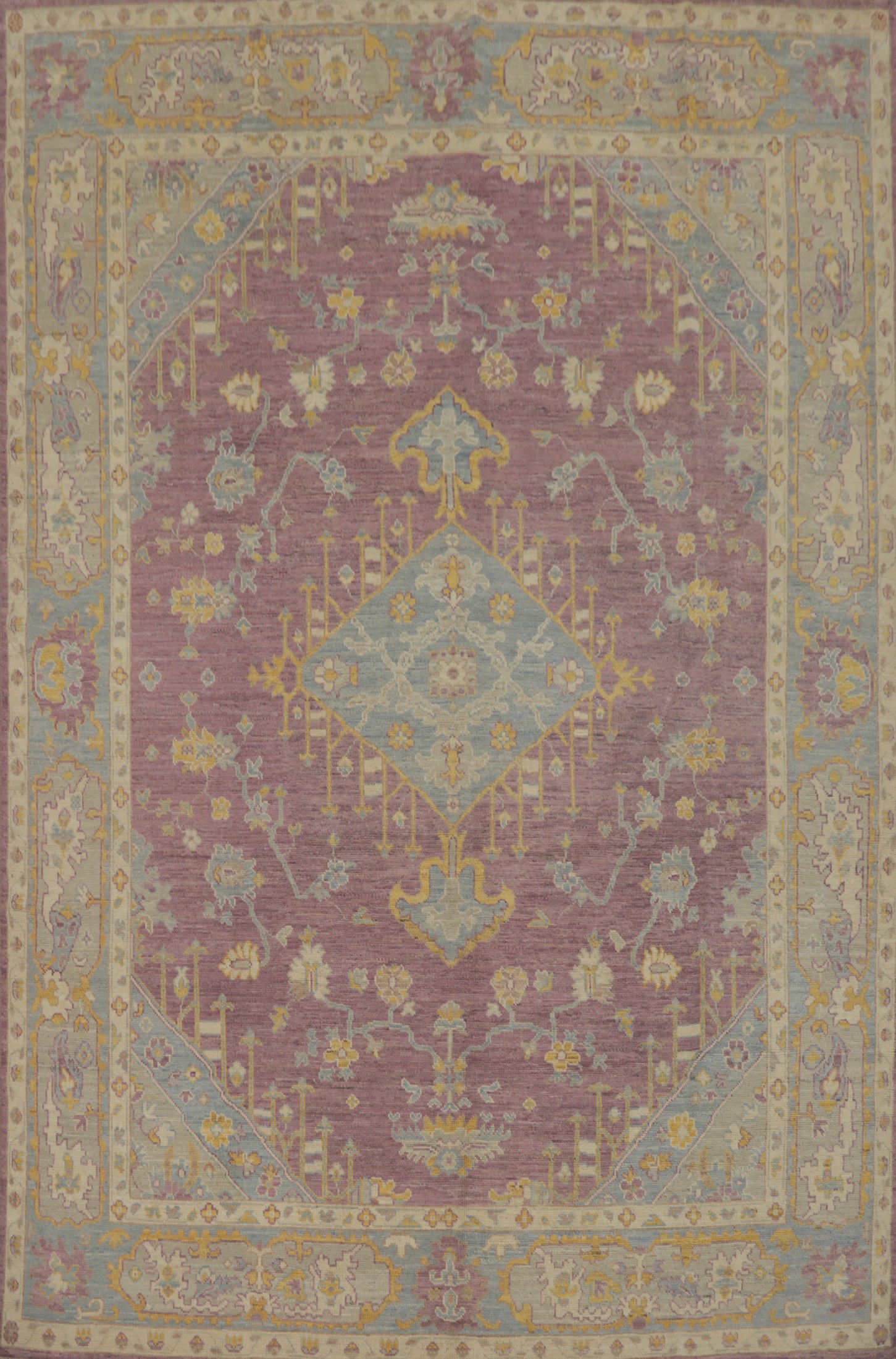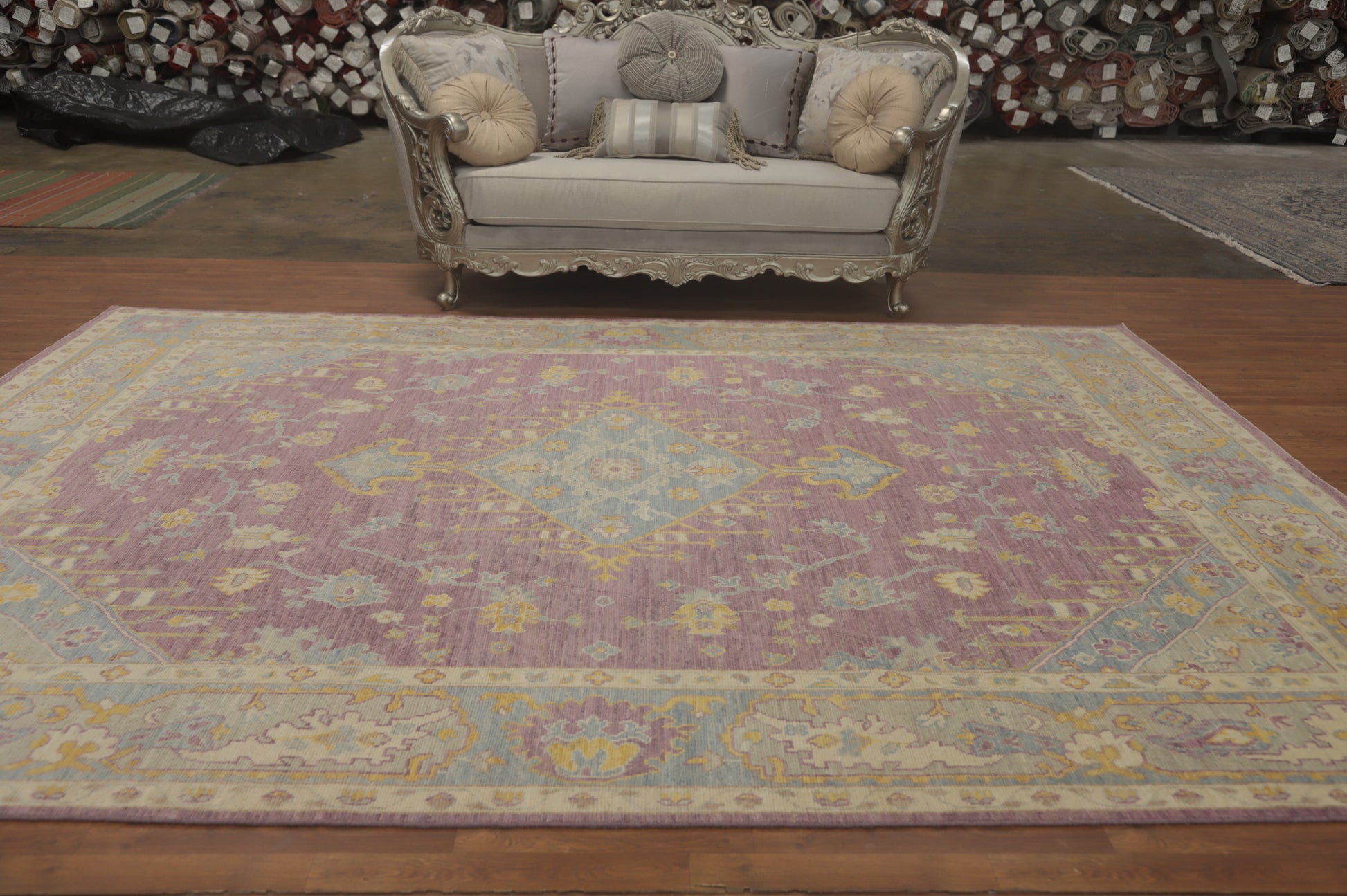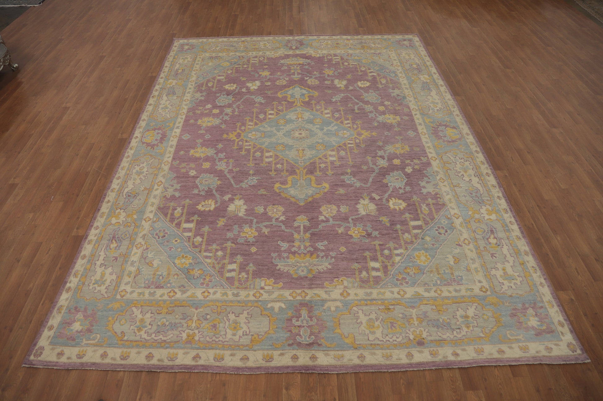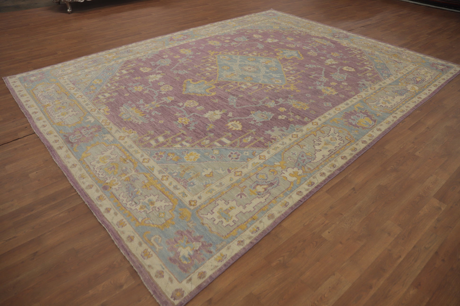 A Beautiful Genuine Turkey Oushak rug is Hand Knotted by skillful weavers in Turkey with 100% Wool Material. This rug is in New, First Quality condition. dimensions are 12' 1'' X 8' 11'' in foot and 368 X 272 in centimeter. the primary color is Purples.
