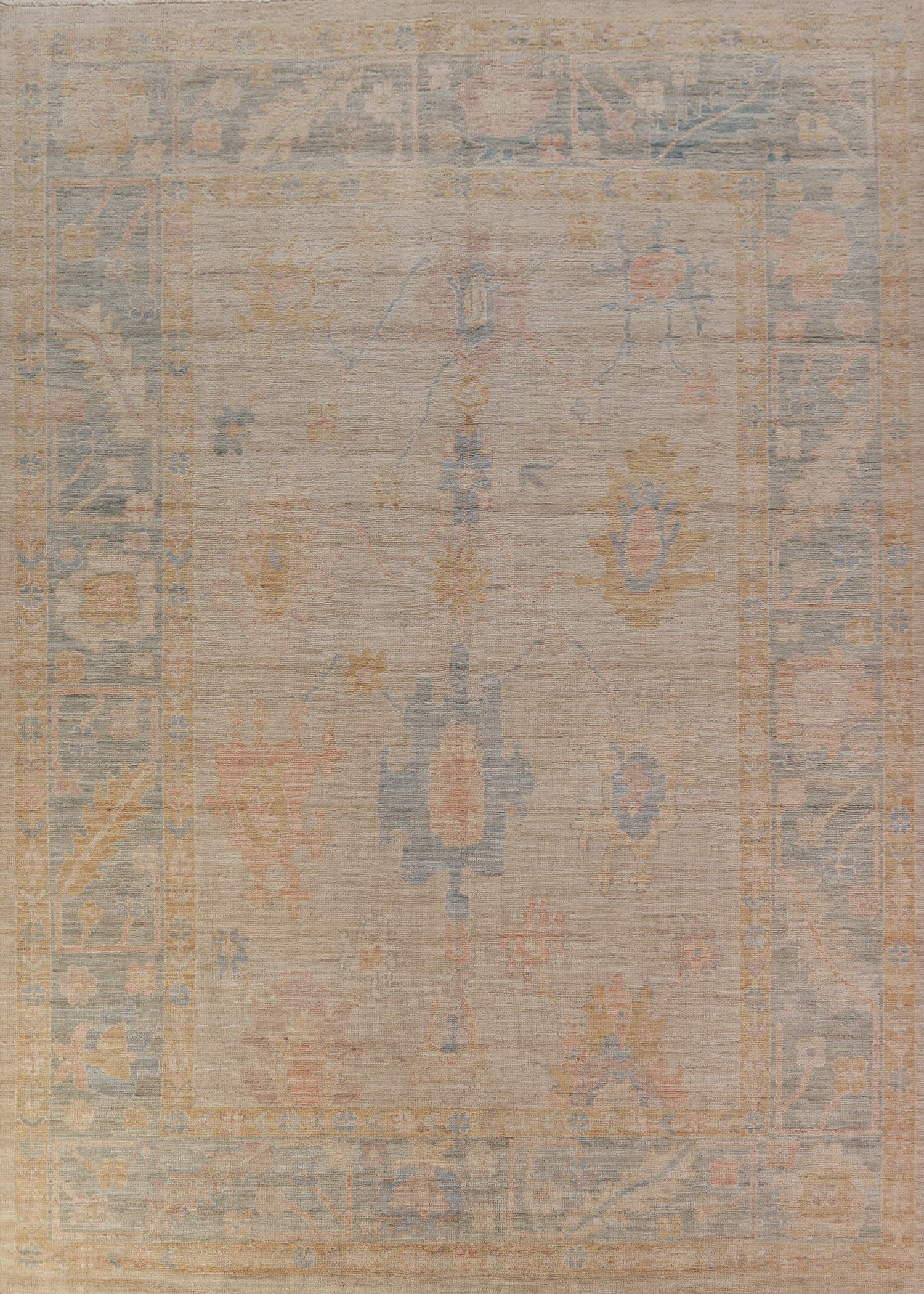 Vegetable Dye Wool Oushak Turkish Area Rug 9x12